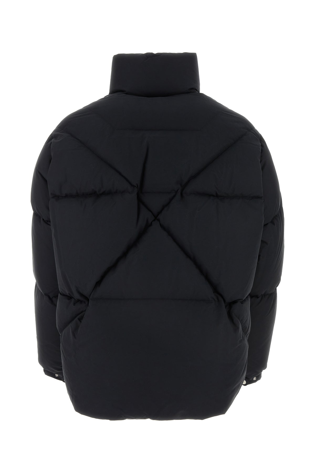 Oversize down jacket realized in quilted cotton blend characterized by tonal printed logo on the chest.