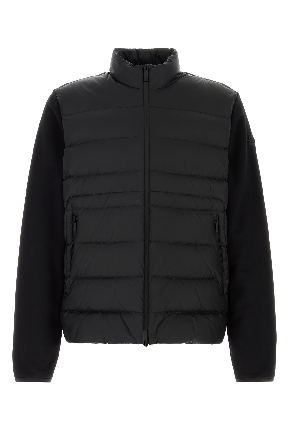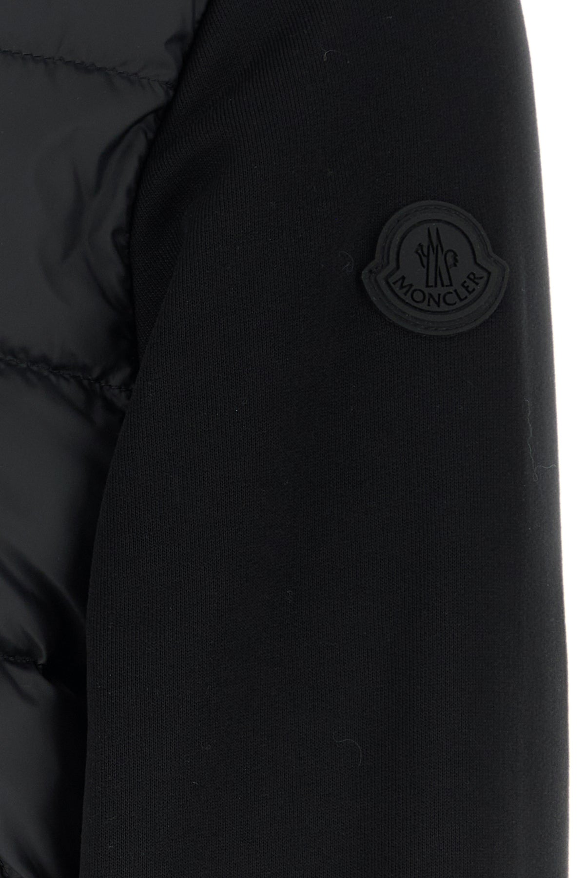 Cardigan realized in pure cotton with quilted nylon insert at the front enriched by rubberized logoed patch on the sleeve.