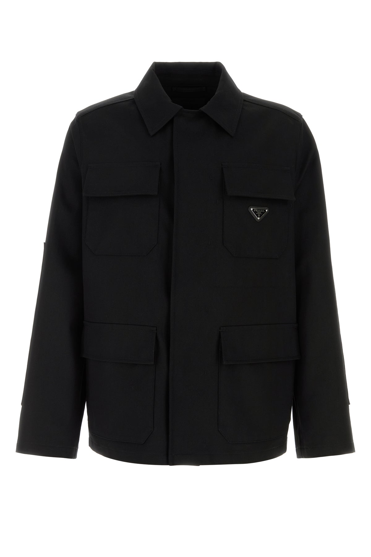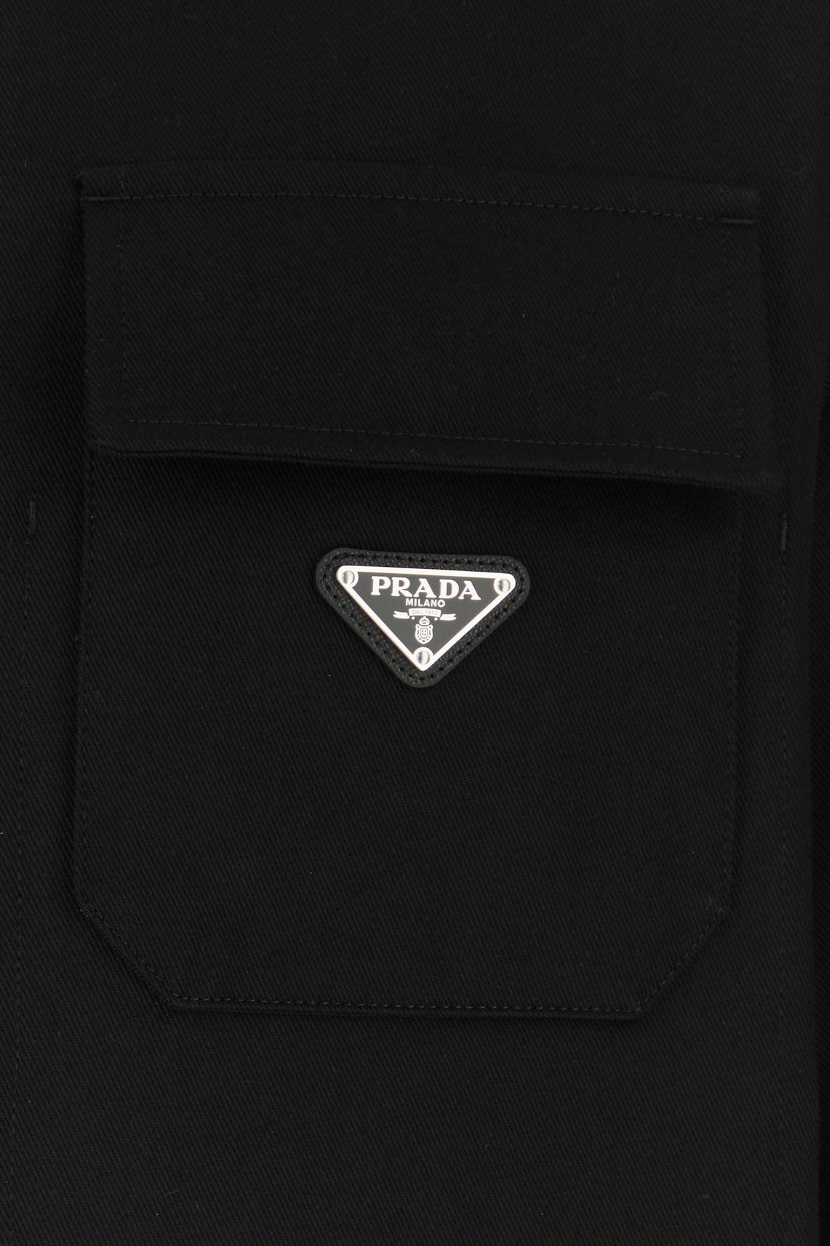 Jacket realized in pure cotton enriched by iconic logoed metal triangle on the chest.