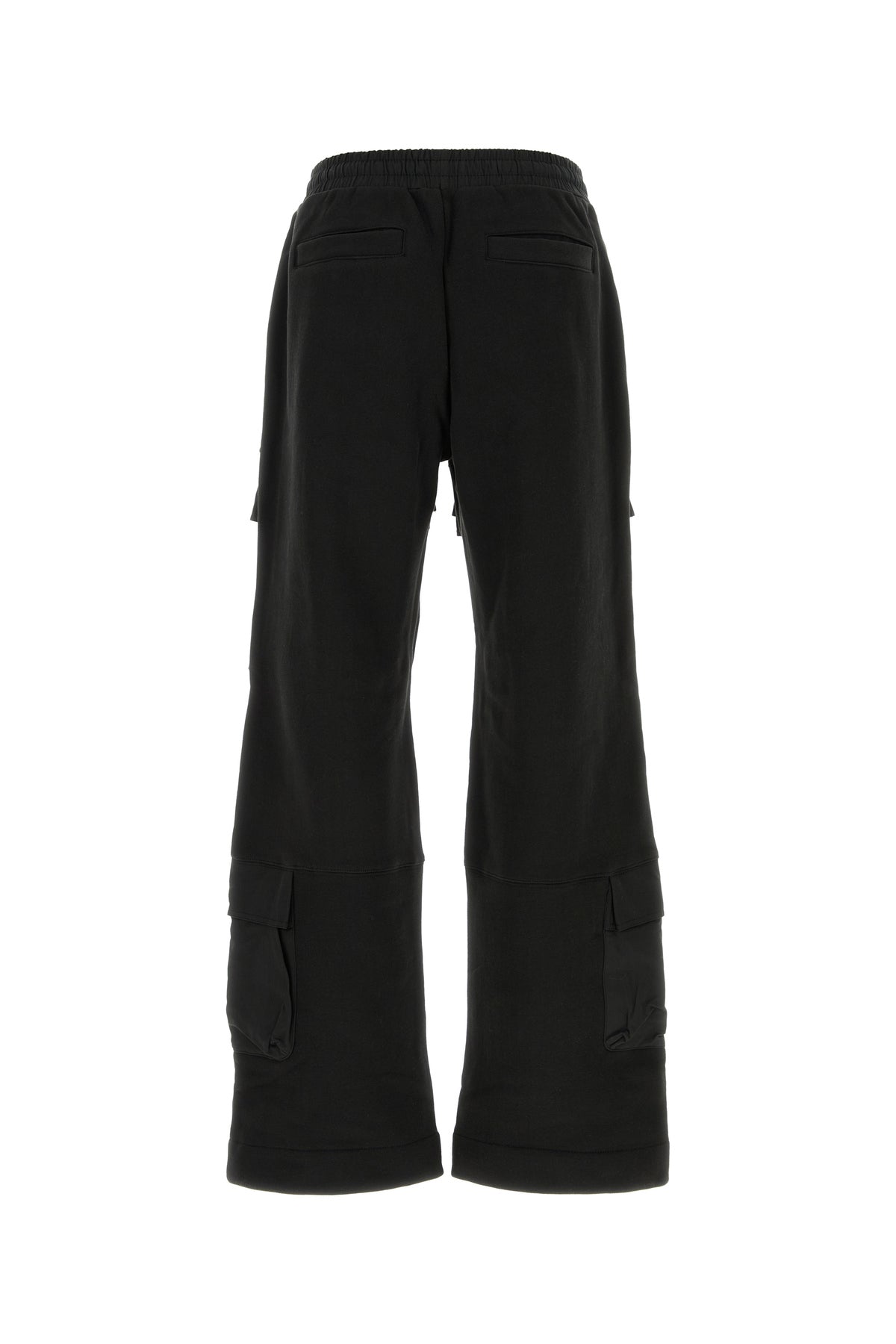 Joggers realized in pure organic cotton characterized by seam pockets, two flap pockets at the front, two flap pockets on the sides and two slit pockets at the back.