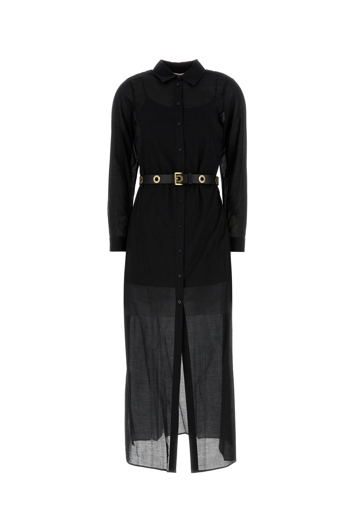 Shirt dress realized in pure cotton enriched by tonal leather belt at the waist.