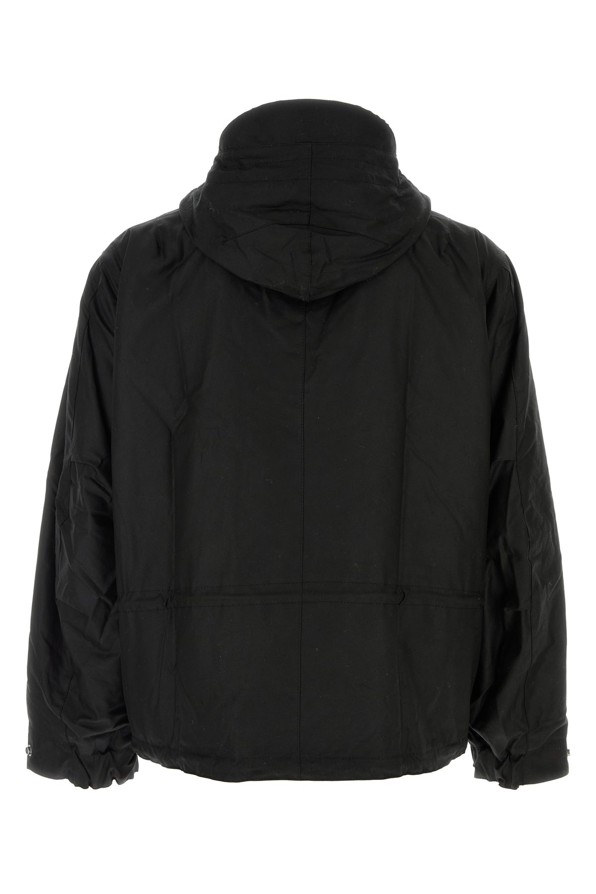 Jacket realized in coated pure cotton characterized by detachable hood and tonal embroidered logo at the front.