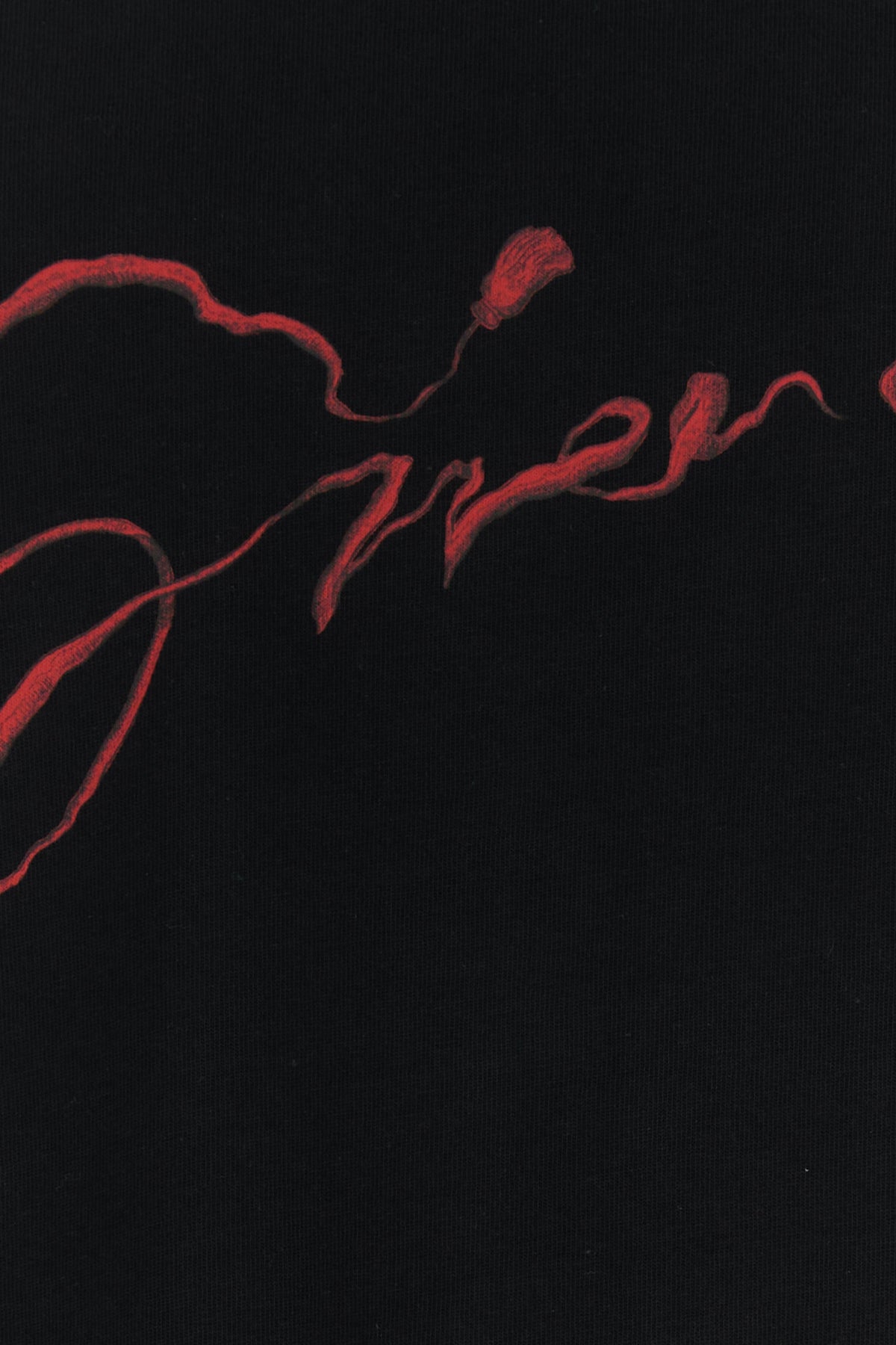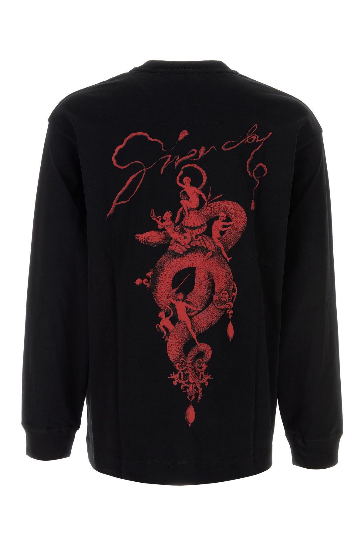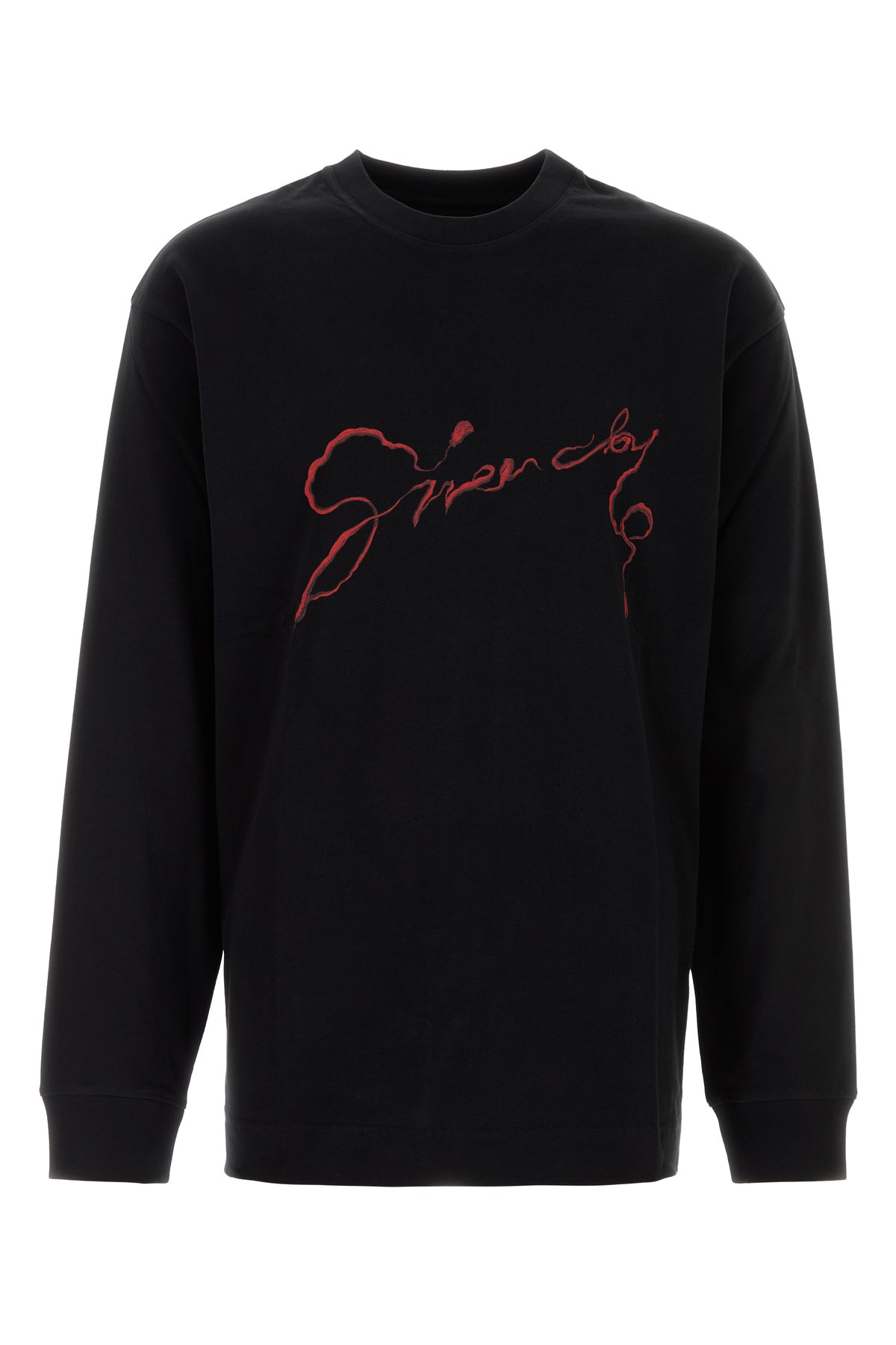 Long-sleeves t-shirt realized in pure cotton characterized by contrasting logoed print at the front and at the back.