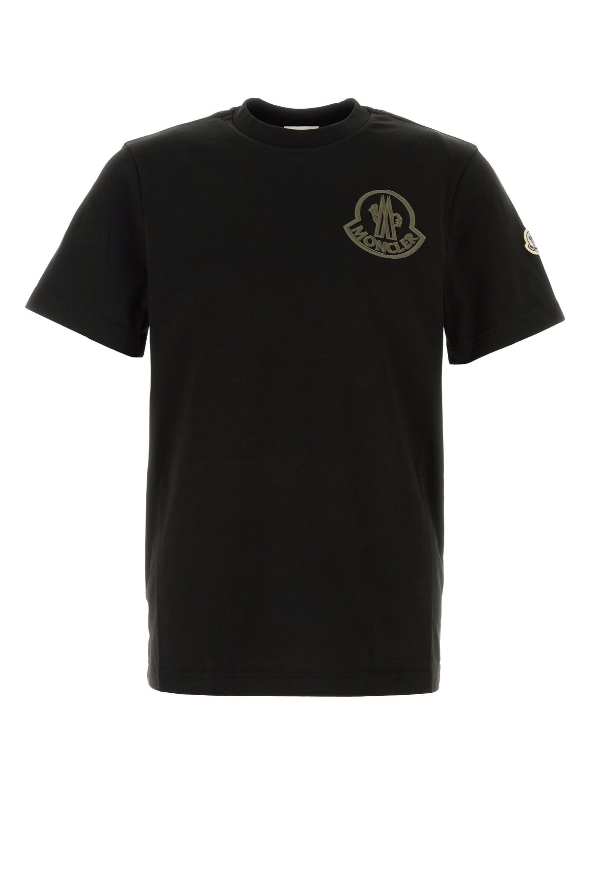 T-shirt realized in pure cotton characterized by contrasting printed logo on the chest enriched by logoed patch on the sleeve.