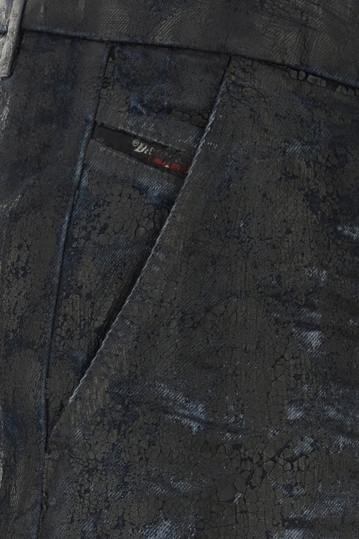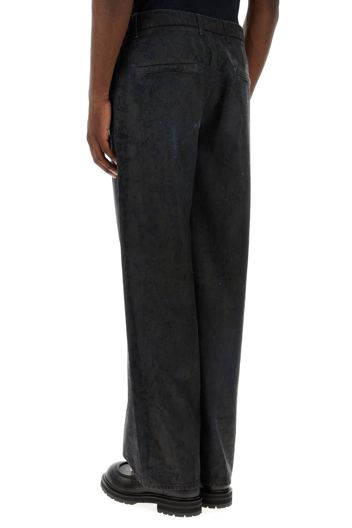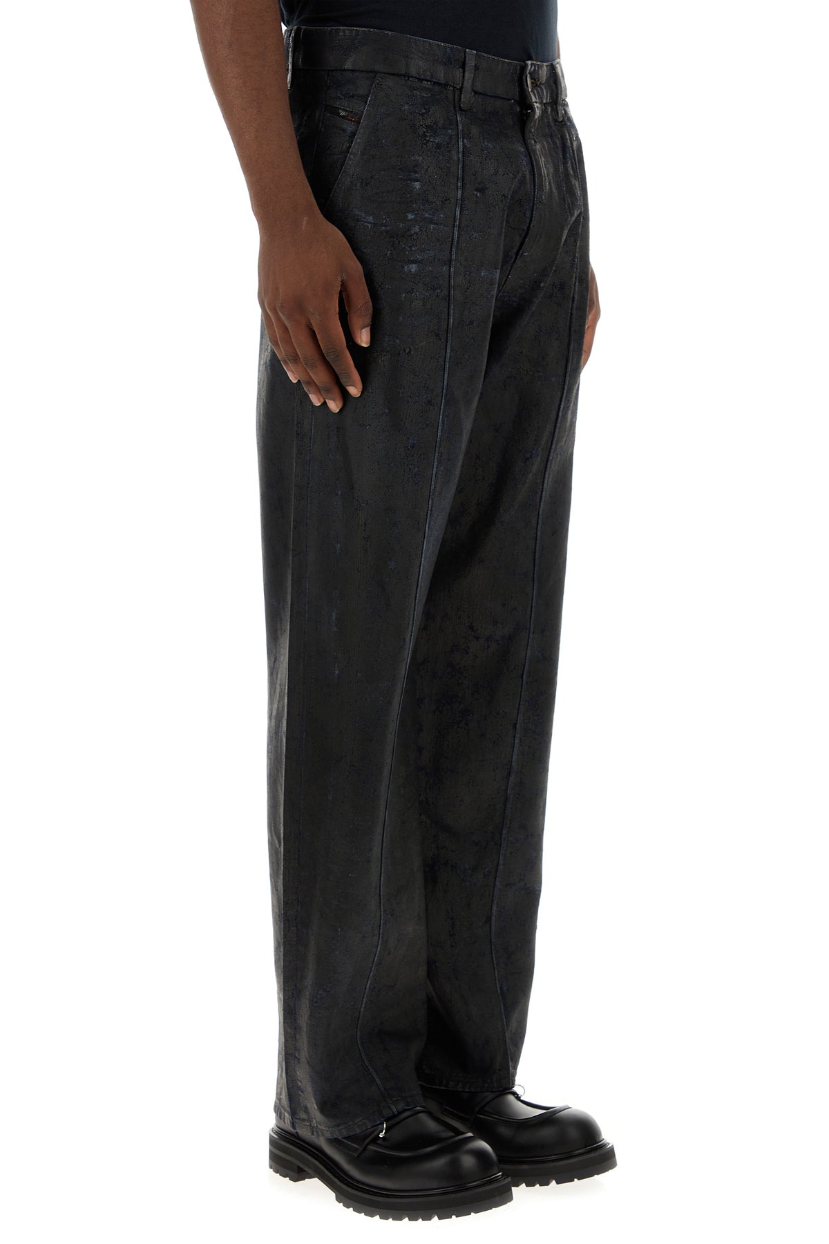 Jeans realized in craquelé effect cotton blend denim characterized by central seam pleats.