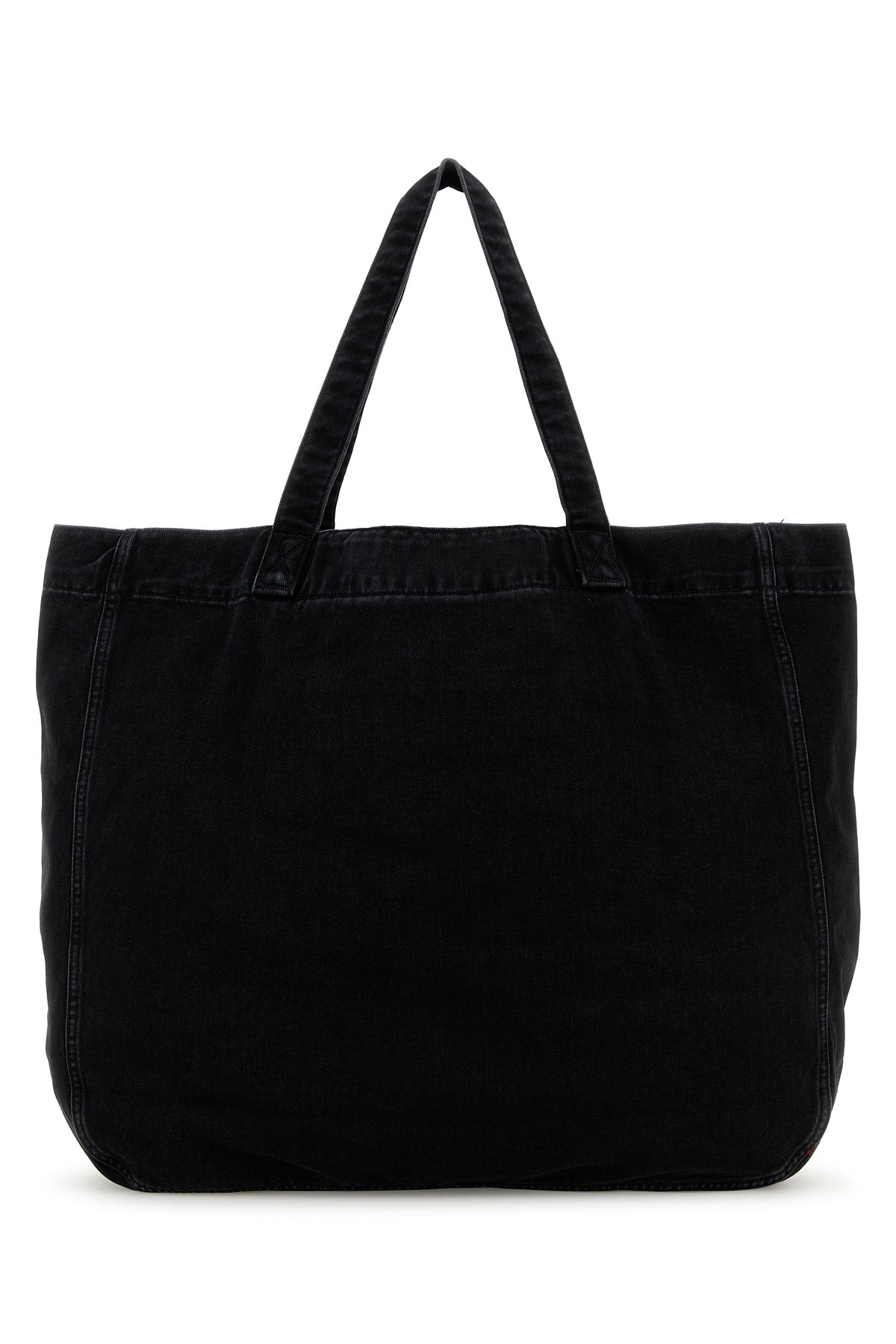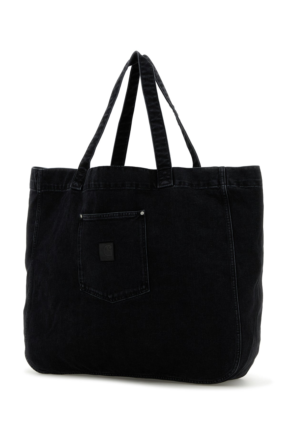 Shopping bag realized in stonewashed pure cotton denim enriched by tonal logoed label at the front.
