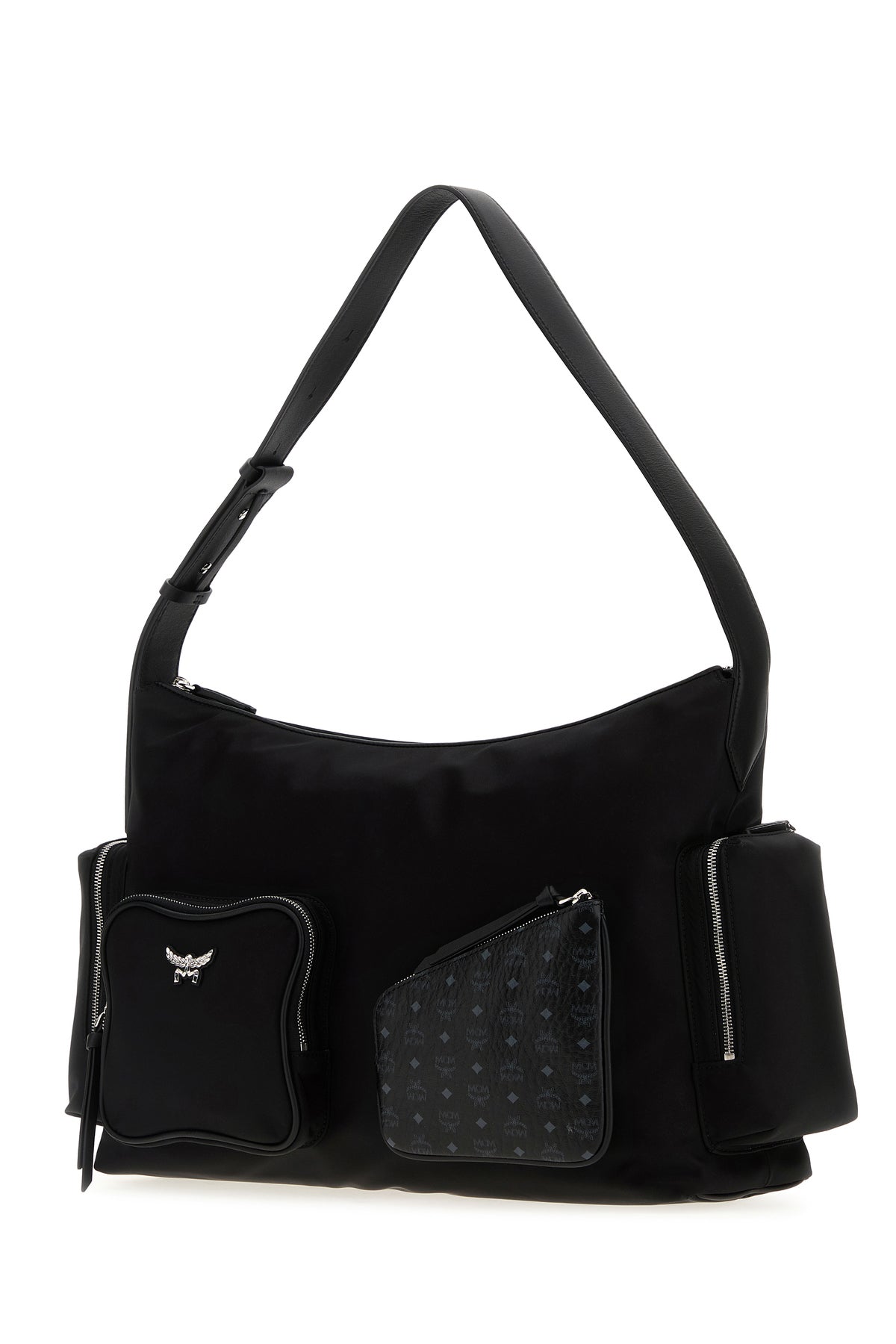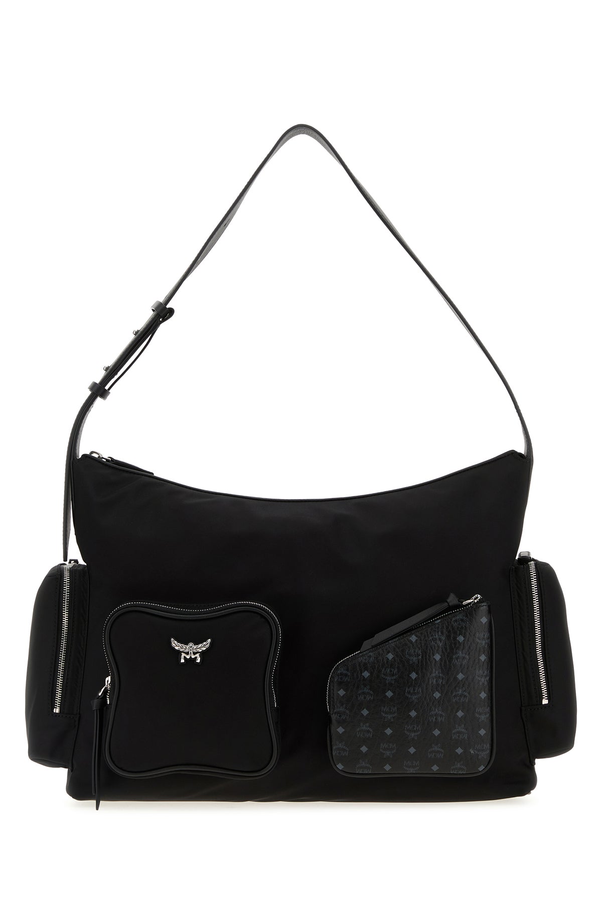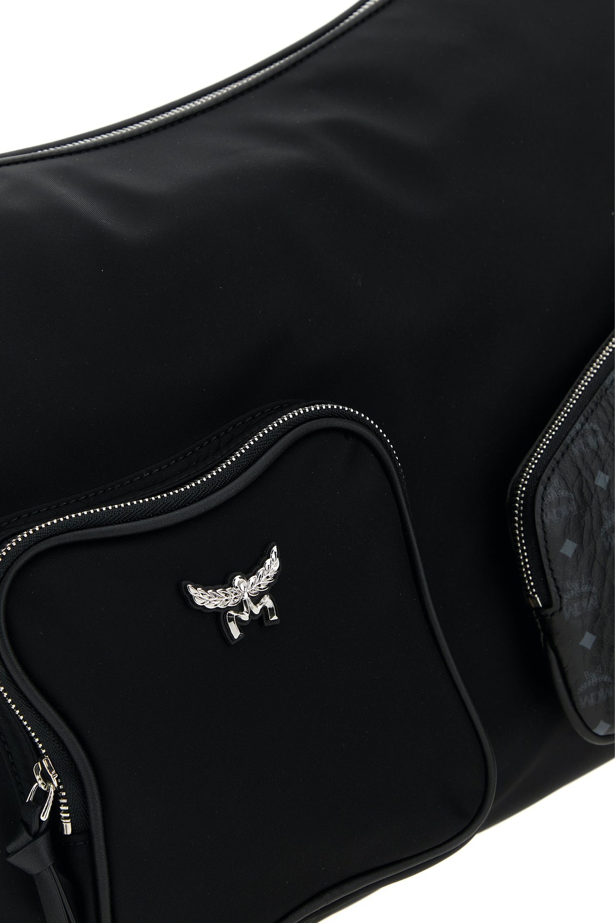 Shoulder bag realized in fabric enriched by metal Laurel detail and printed Visetos motif canvas insert at the front.