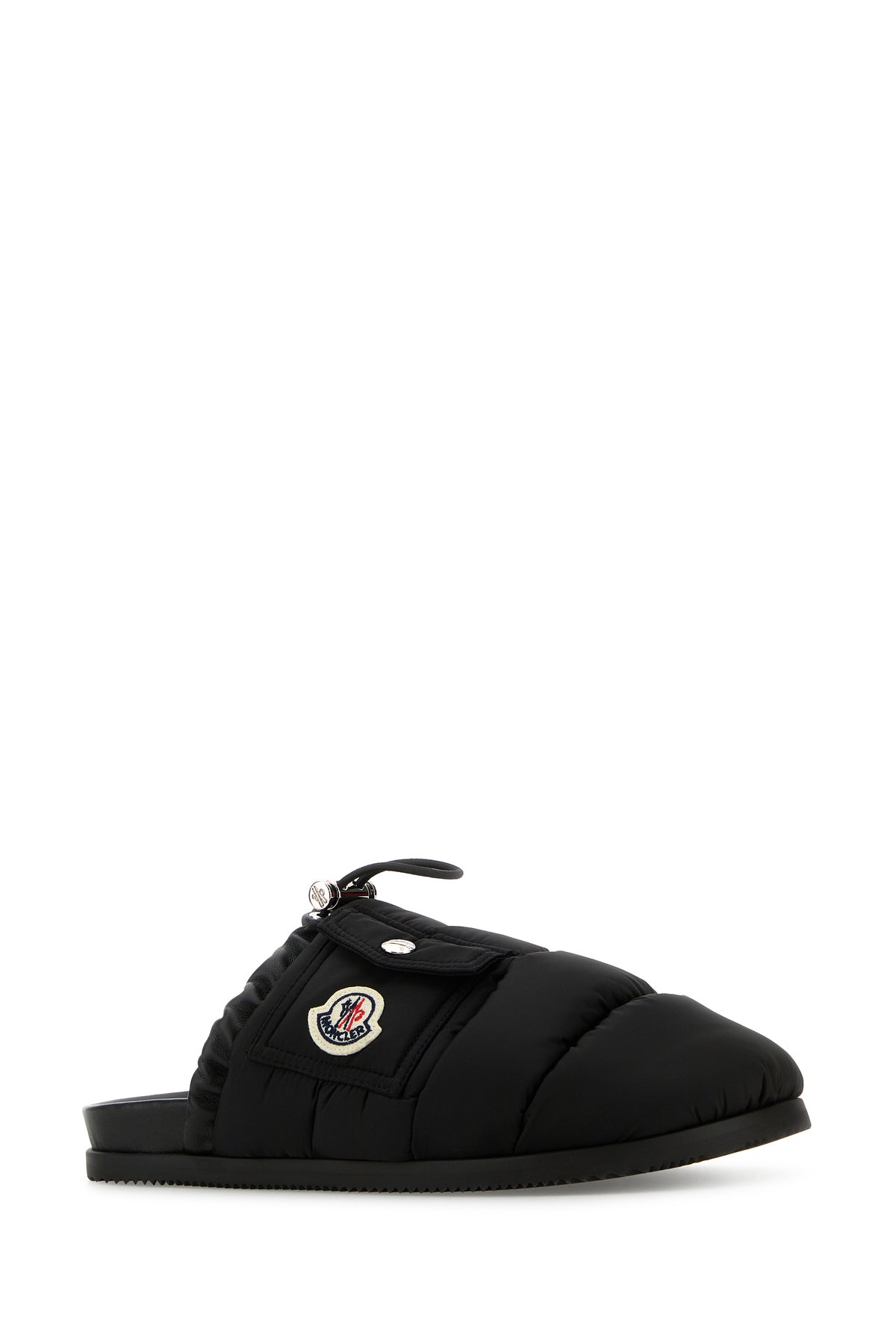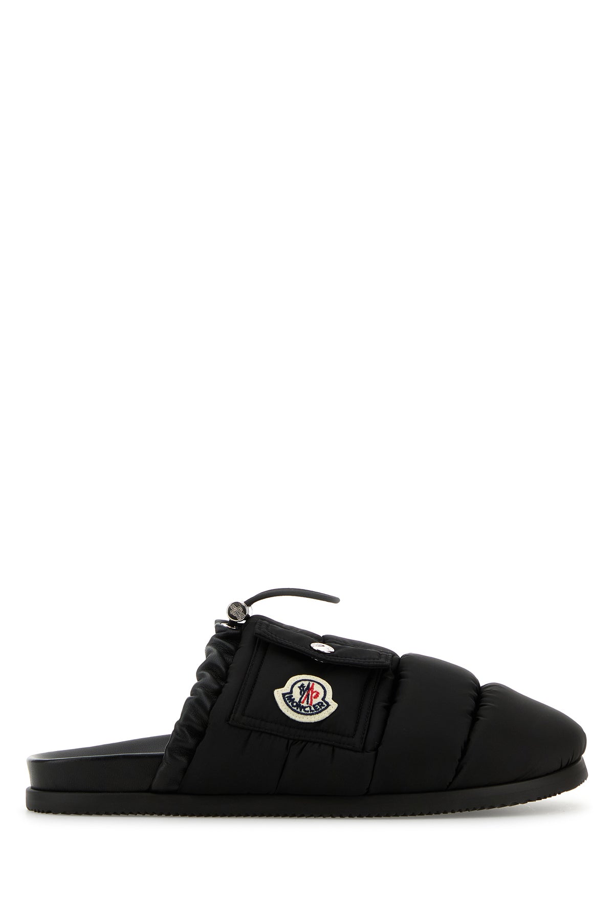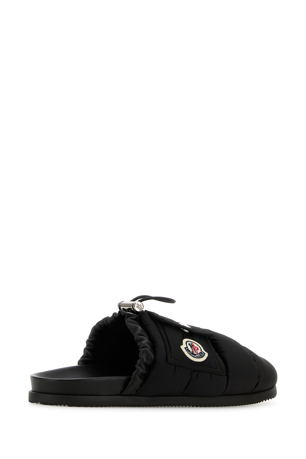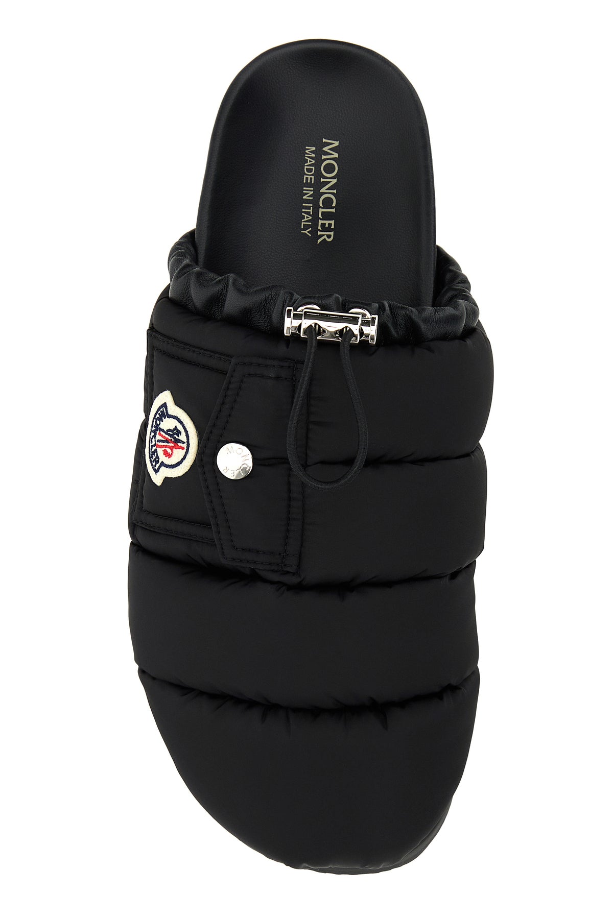 Slippers related in quilted fabric enriched by contrasting logoed patch on the side.