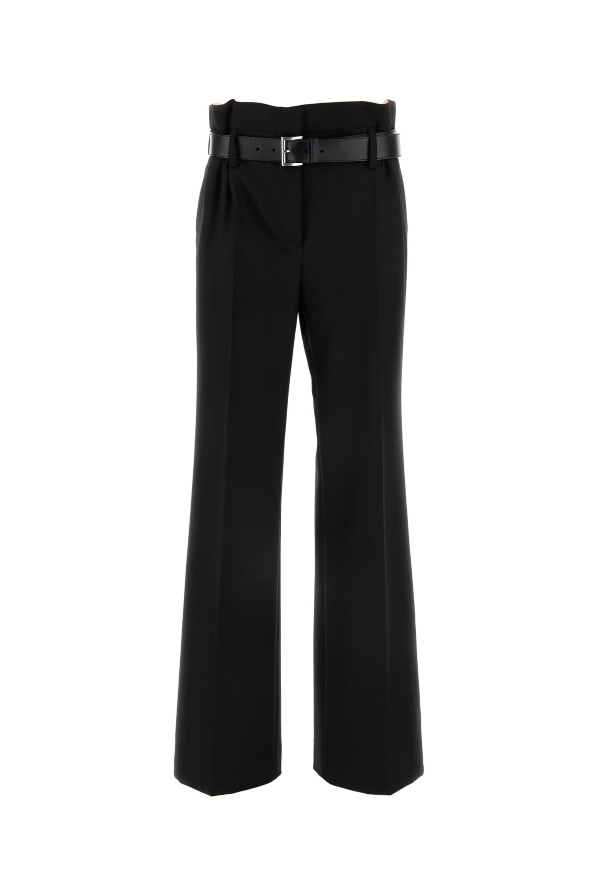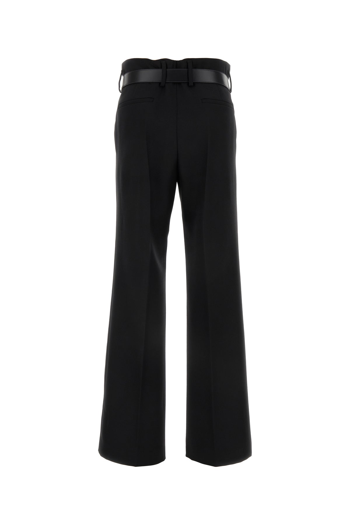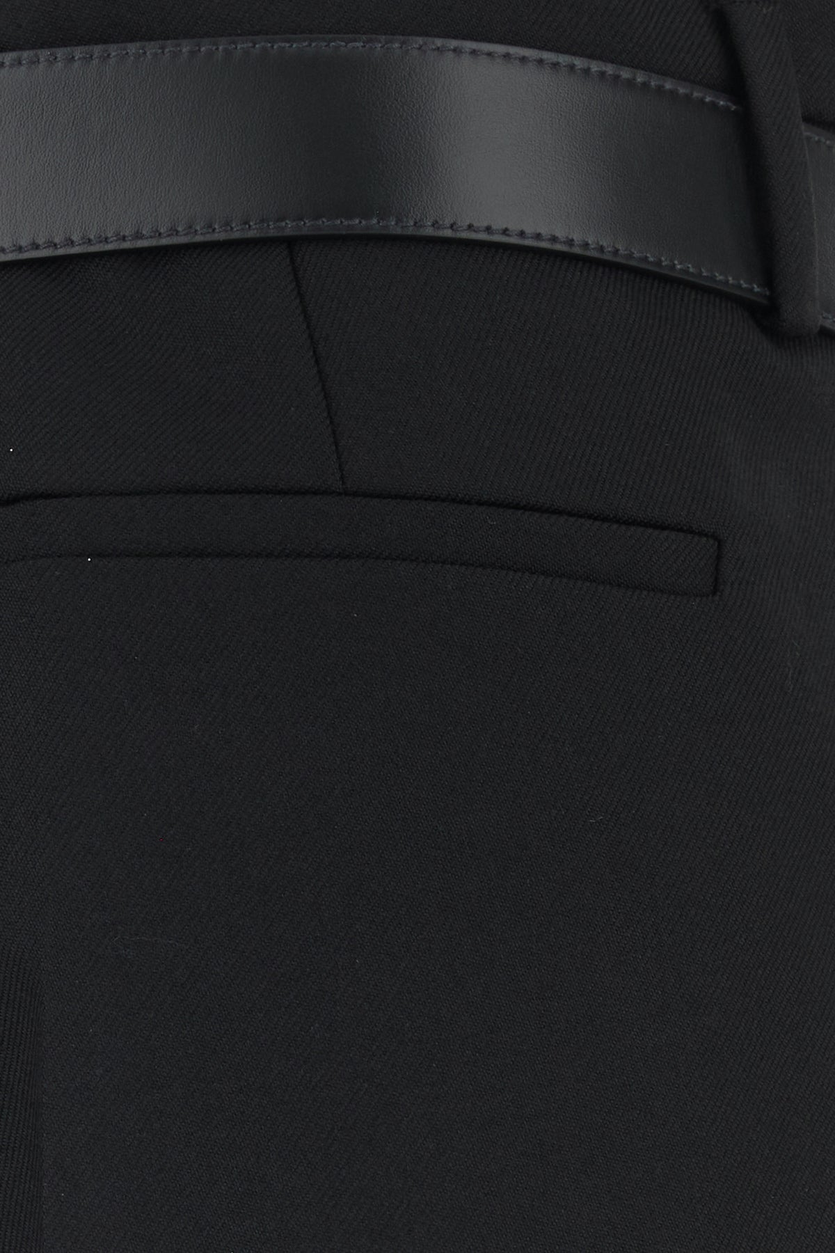 Pant realized in pure virgin wool gabardine enriched by tonal leather belt at the waist.