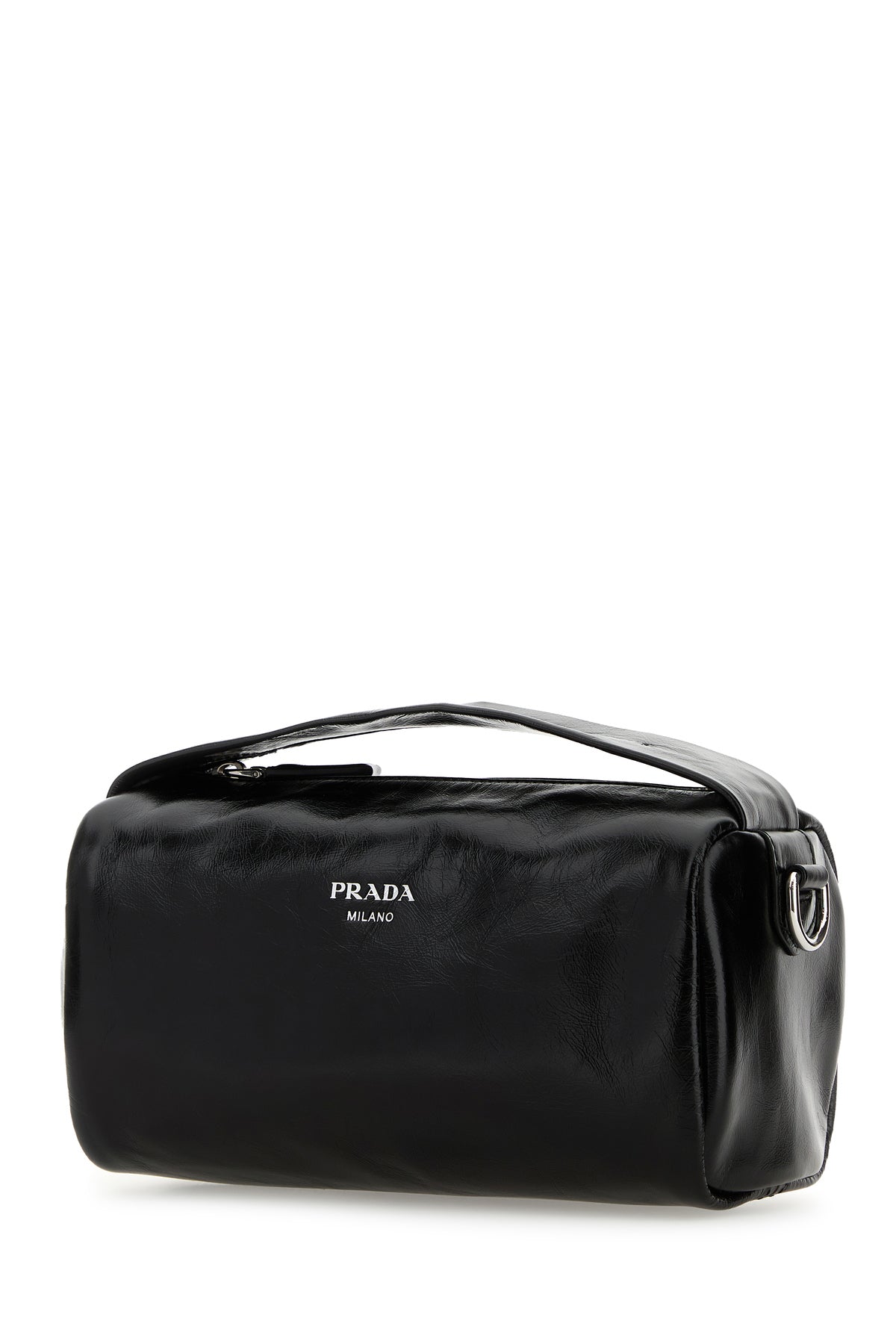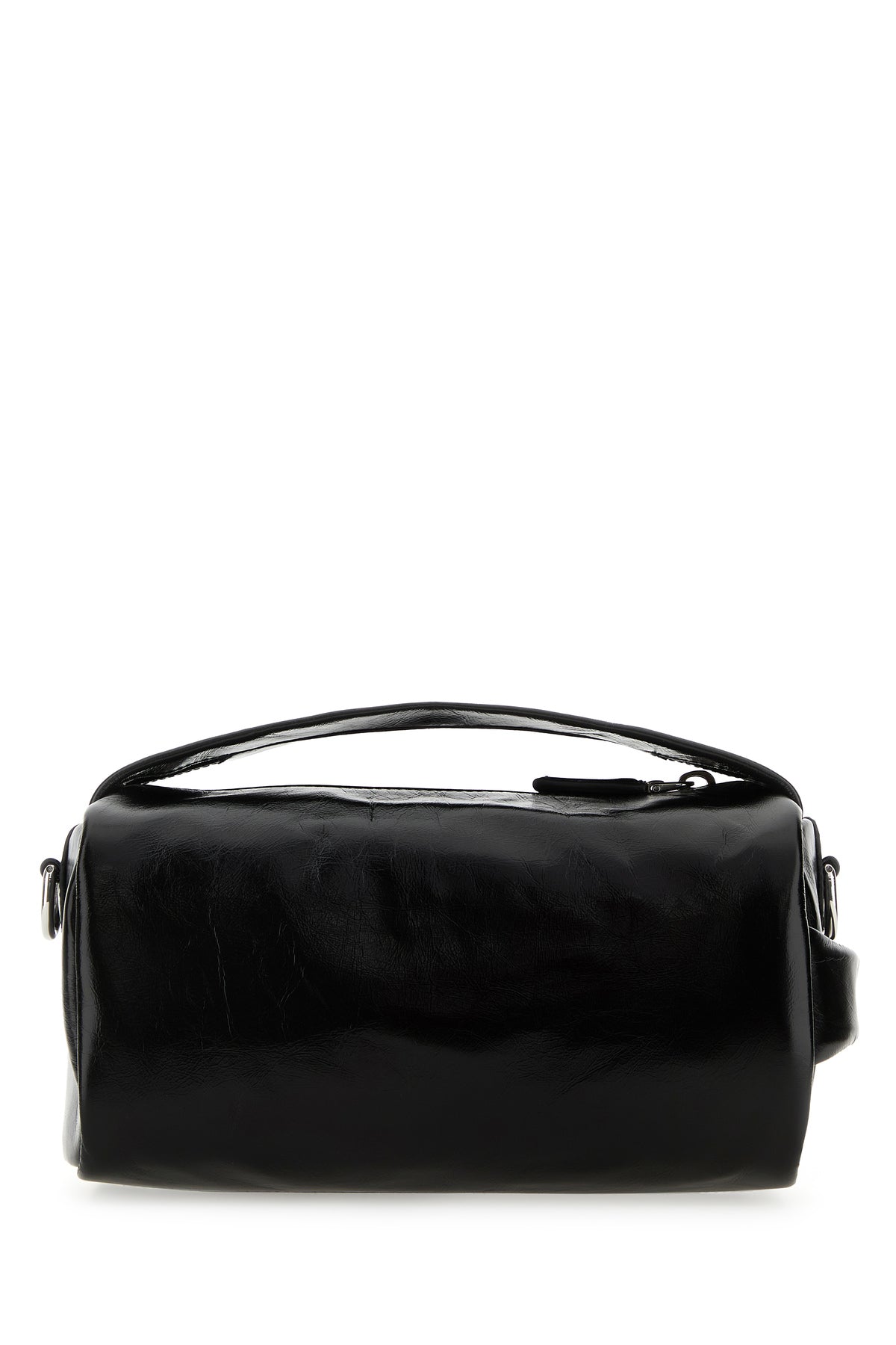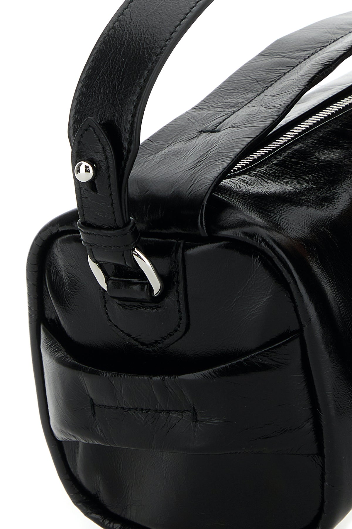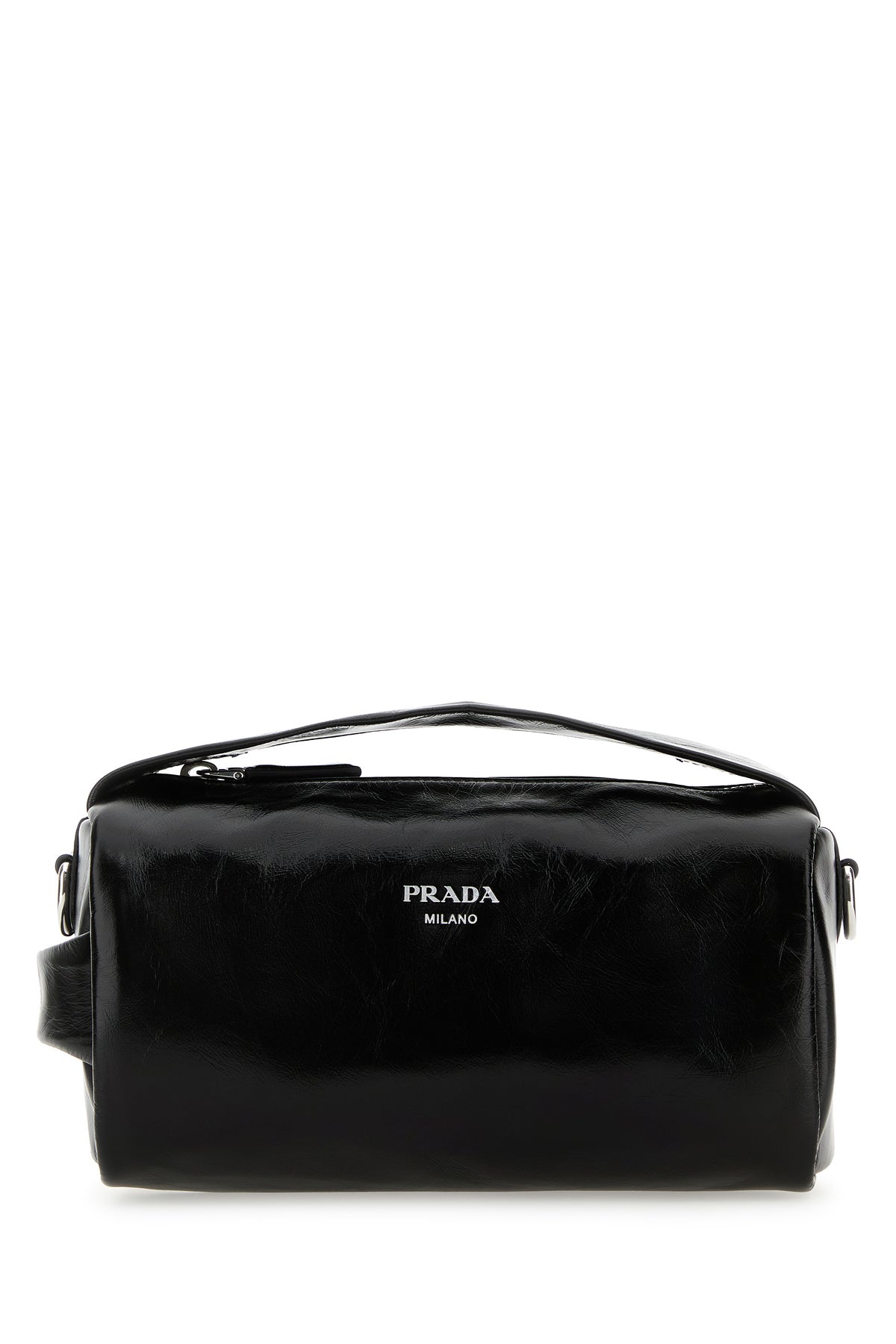 Handbag realized in polished finish leather characterized by laminated printed logo at the front.