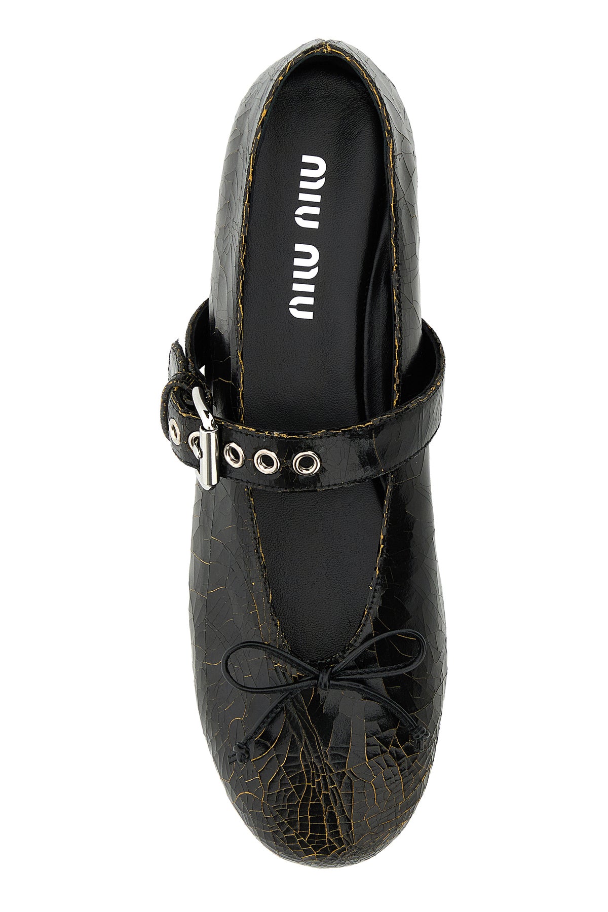 Ballerinas realized in craquelé effect leather enriched by decorative bow on the instep.