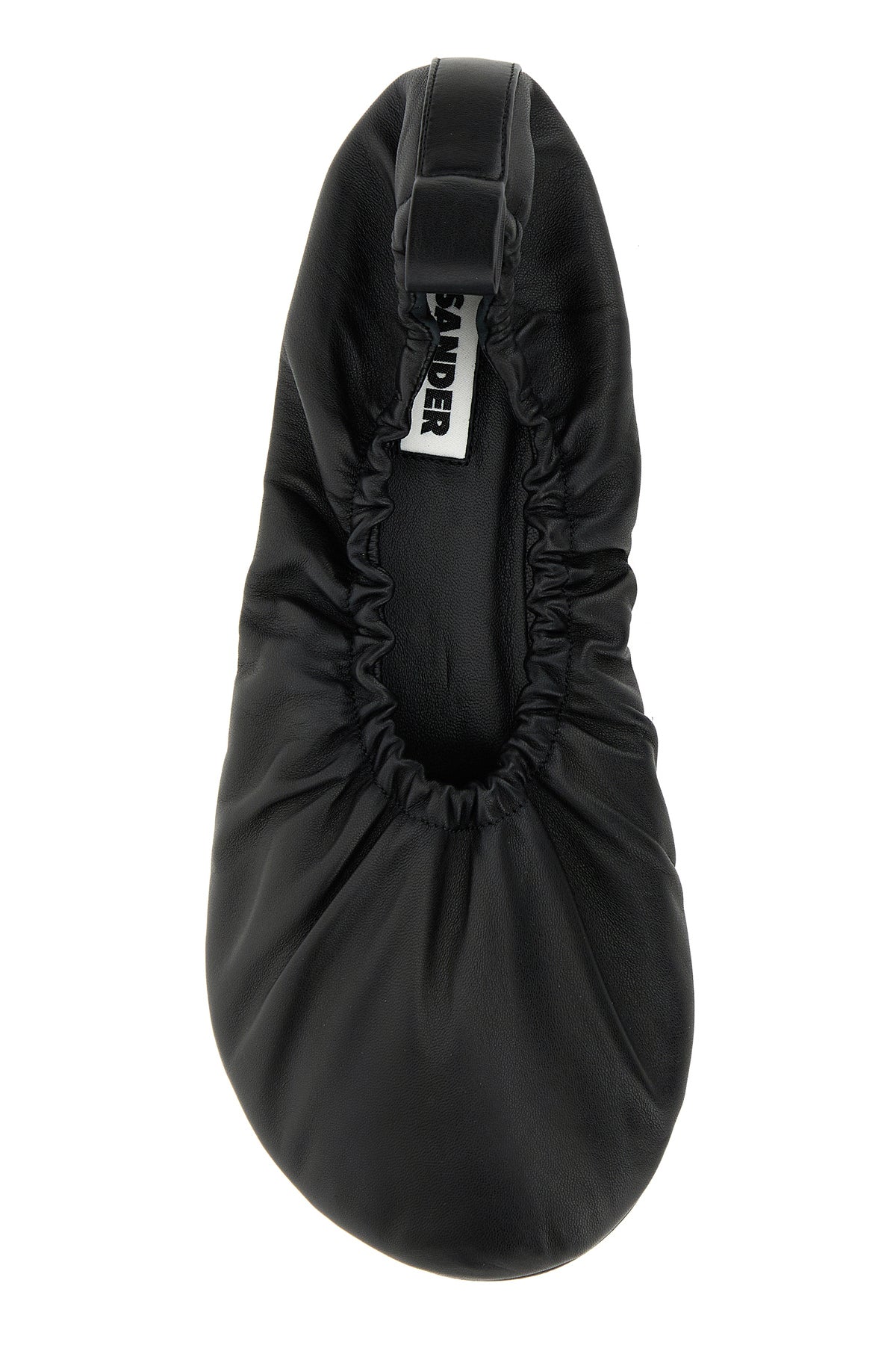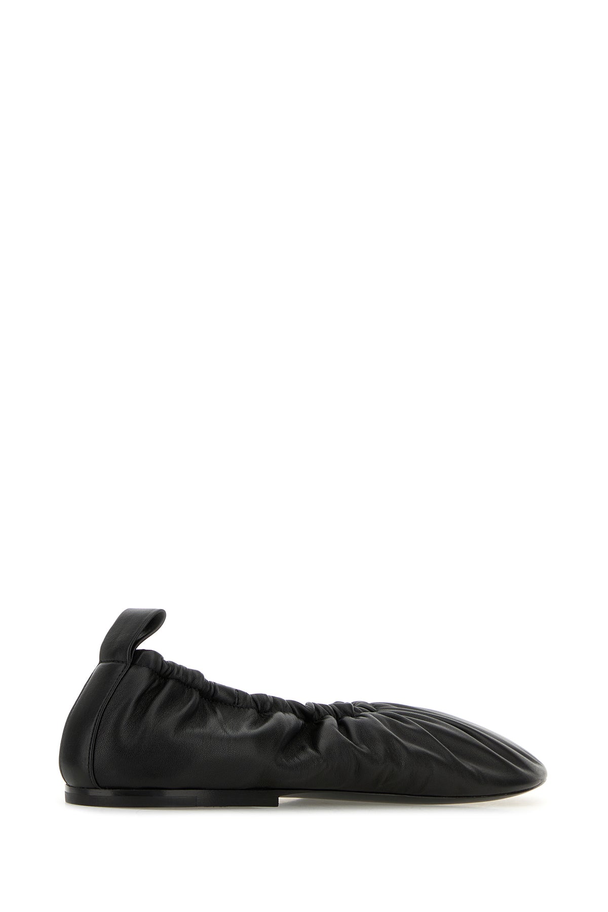 Ballerinas realized in pebble ovine leather characterized by chattering on the trimmings.