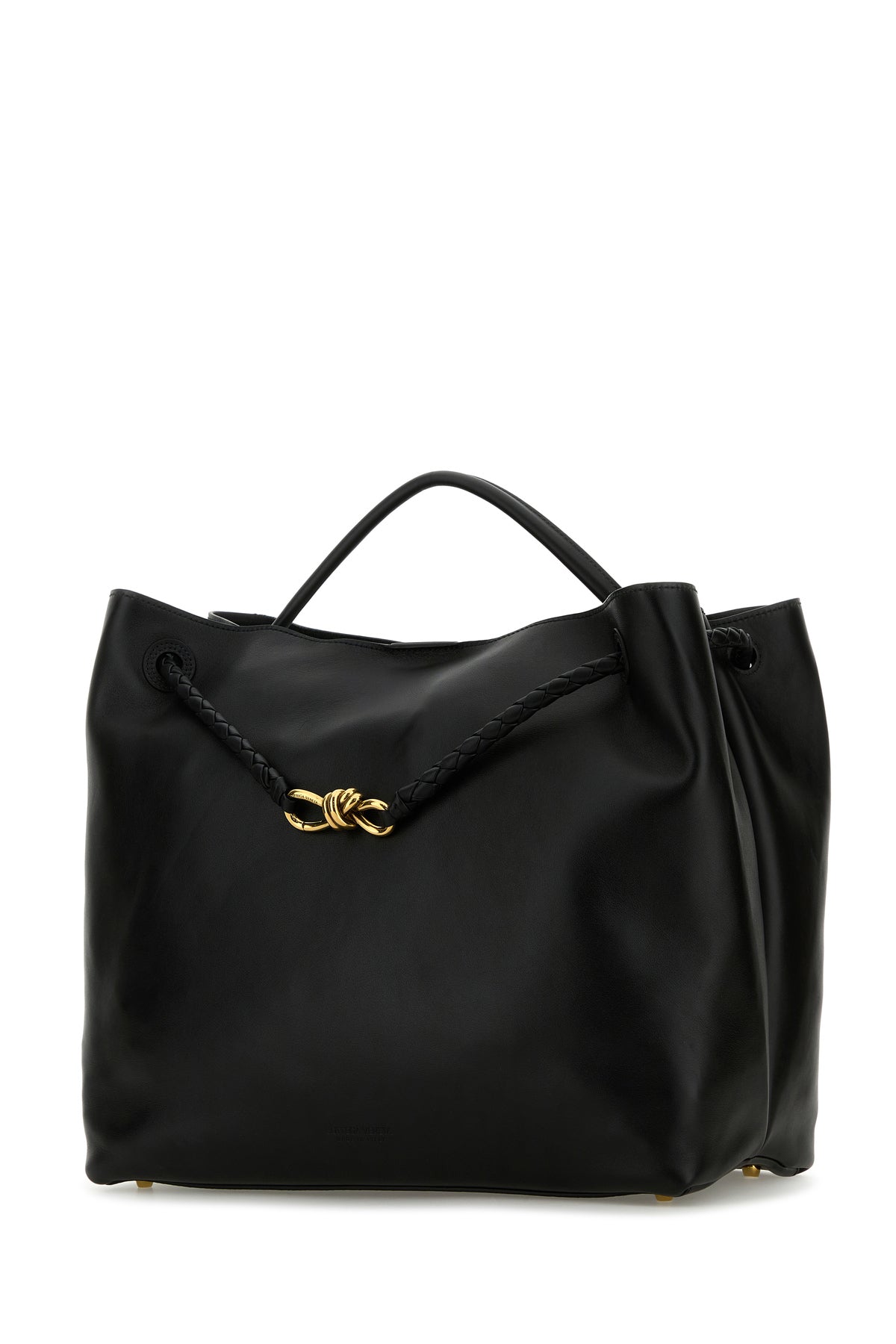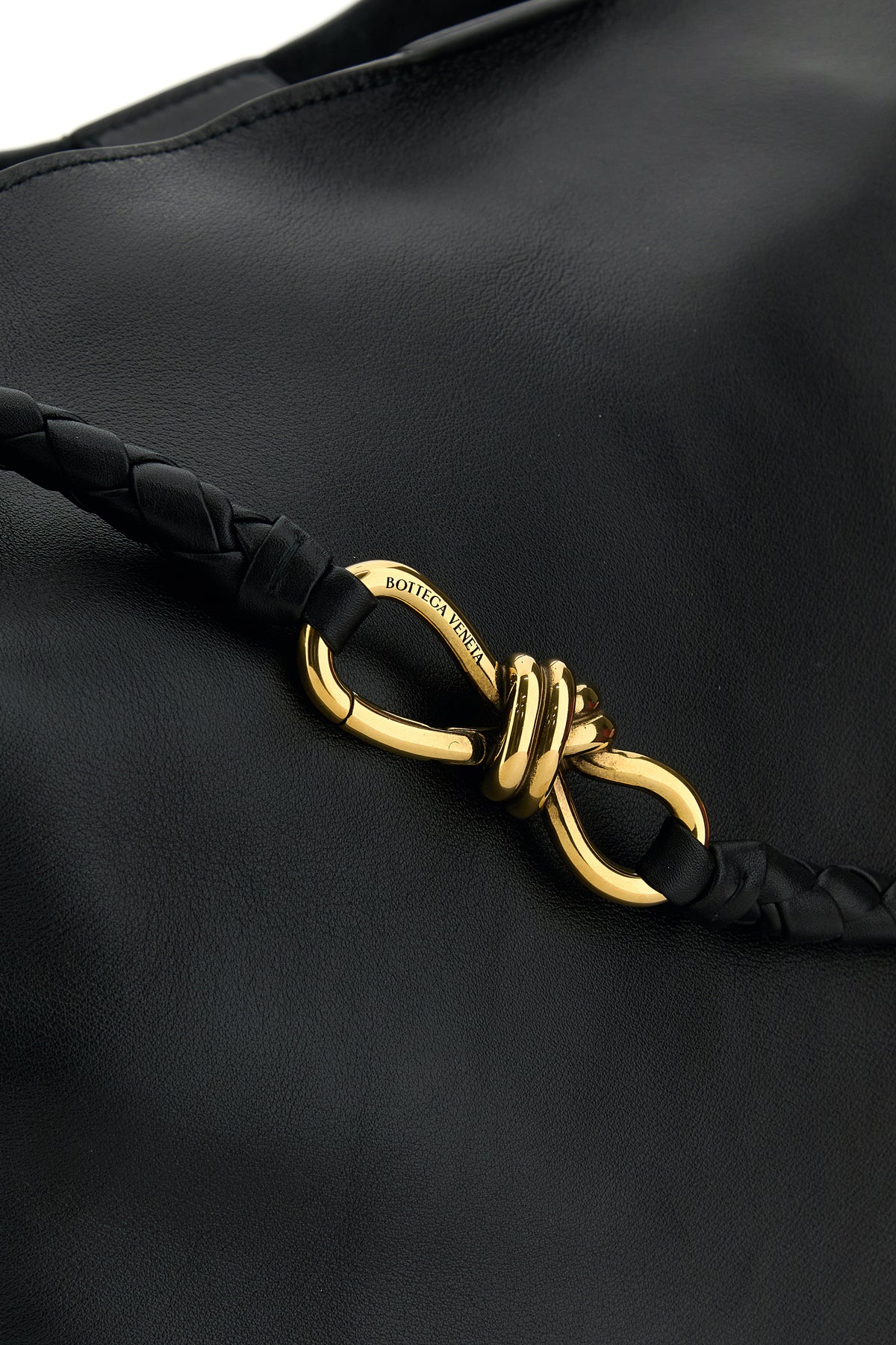 - Detachable tonal woven leather shoulder strap with metal Knot detail