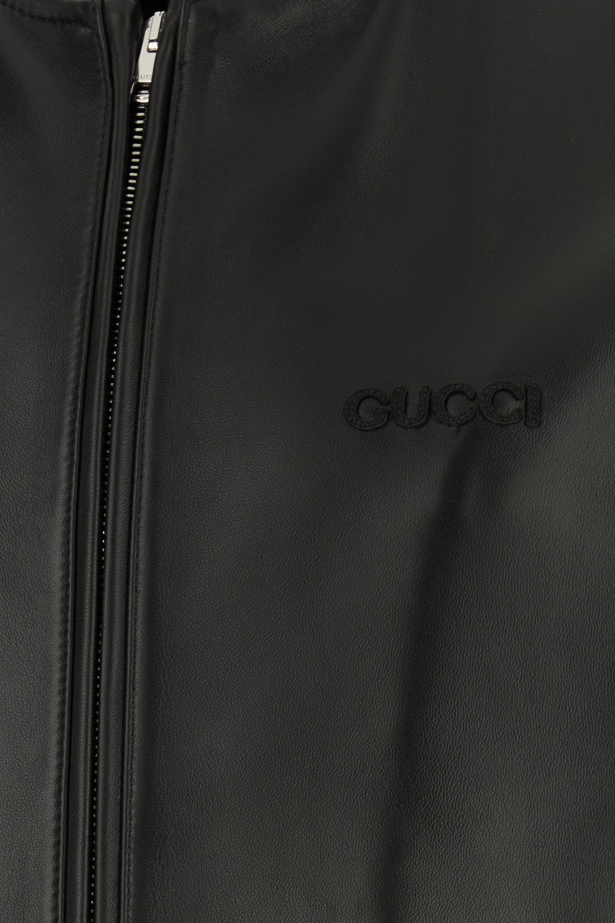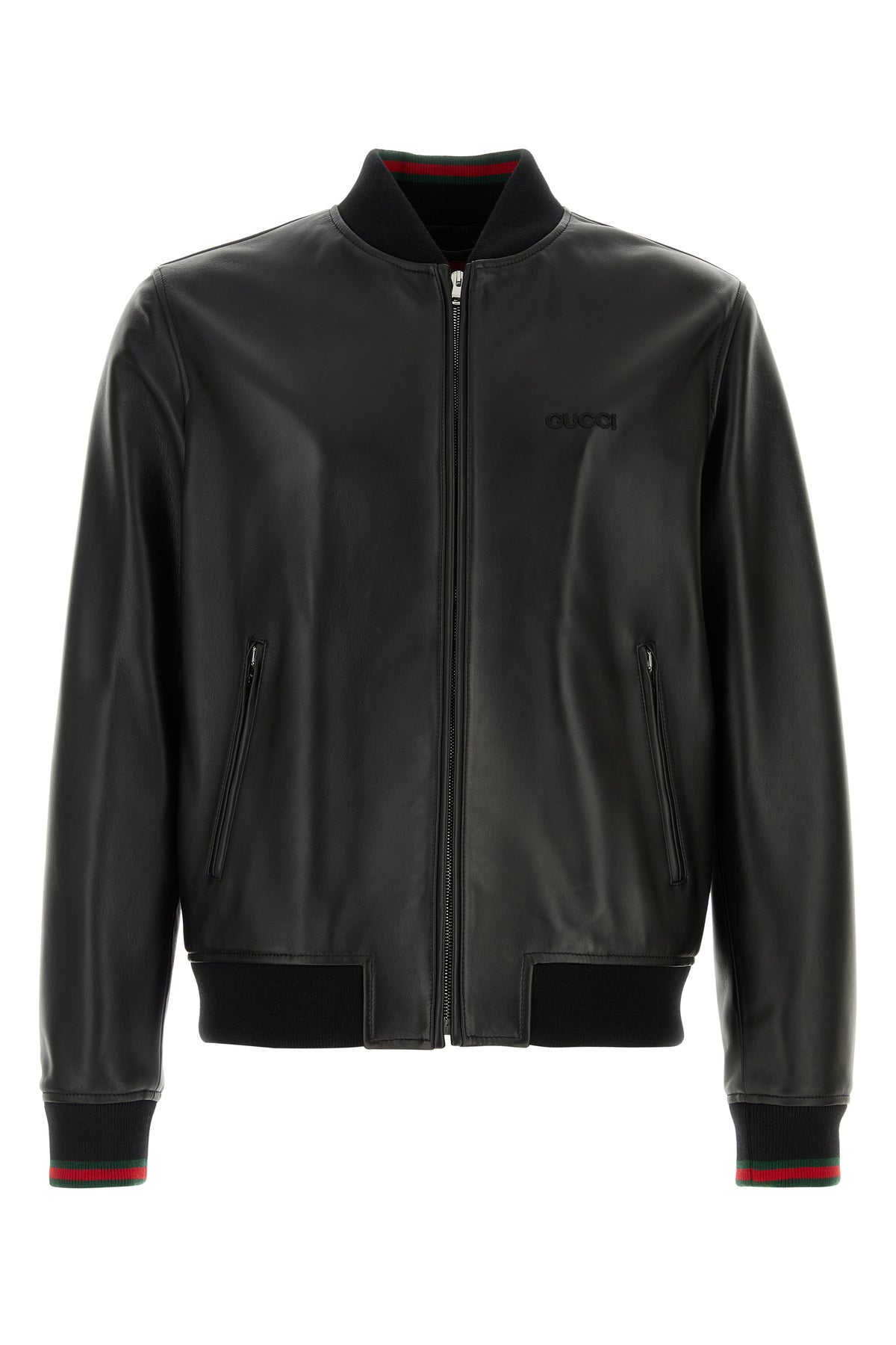 Bomber jacket realized in lamb leather enriched by tonal logoed patch on the chest.