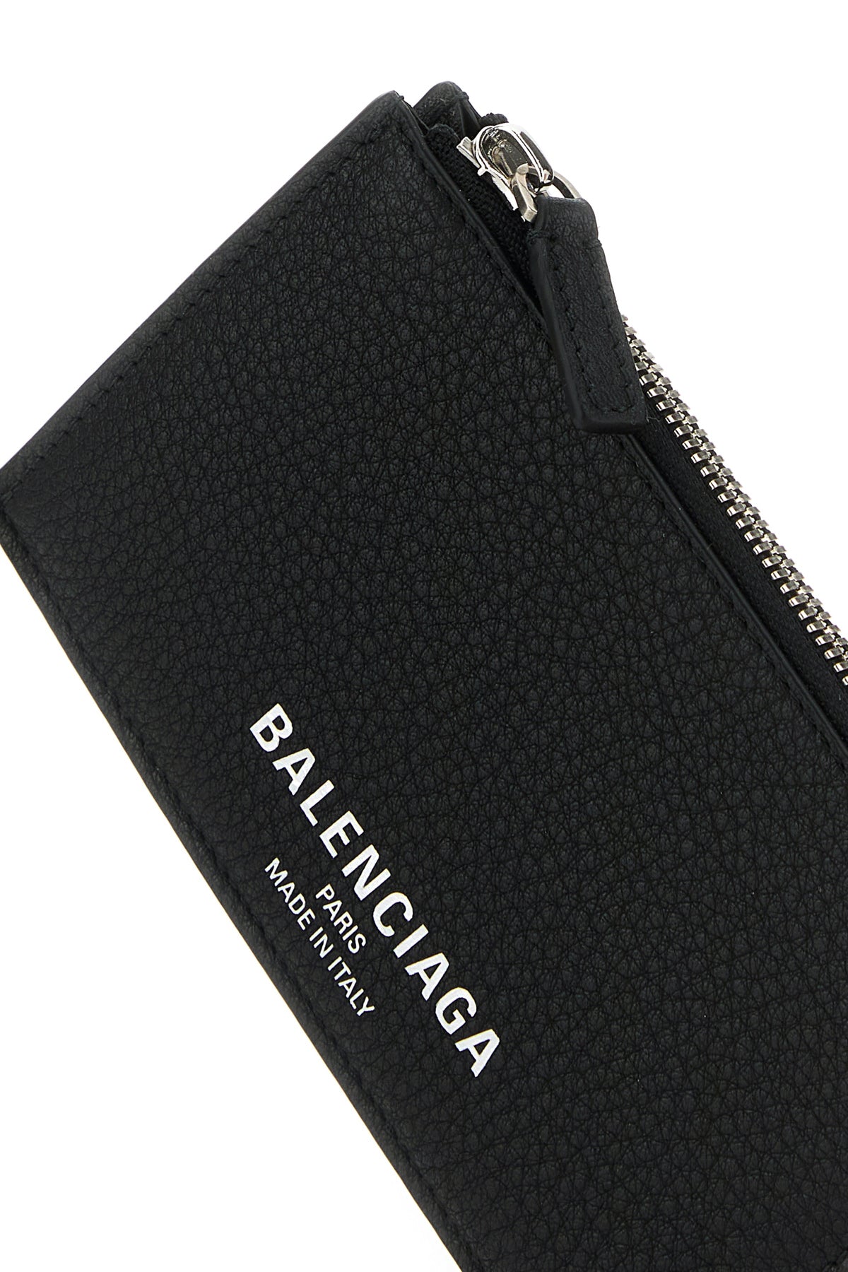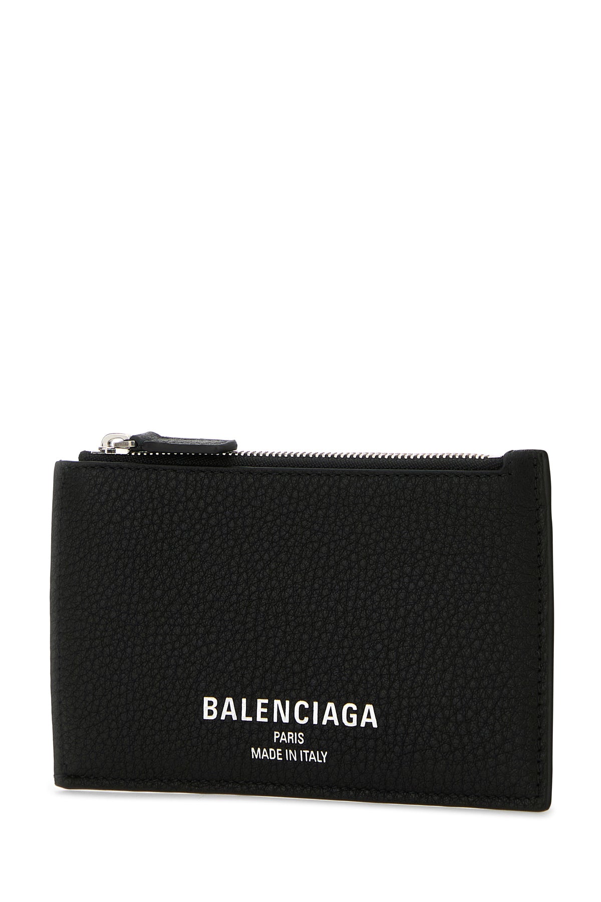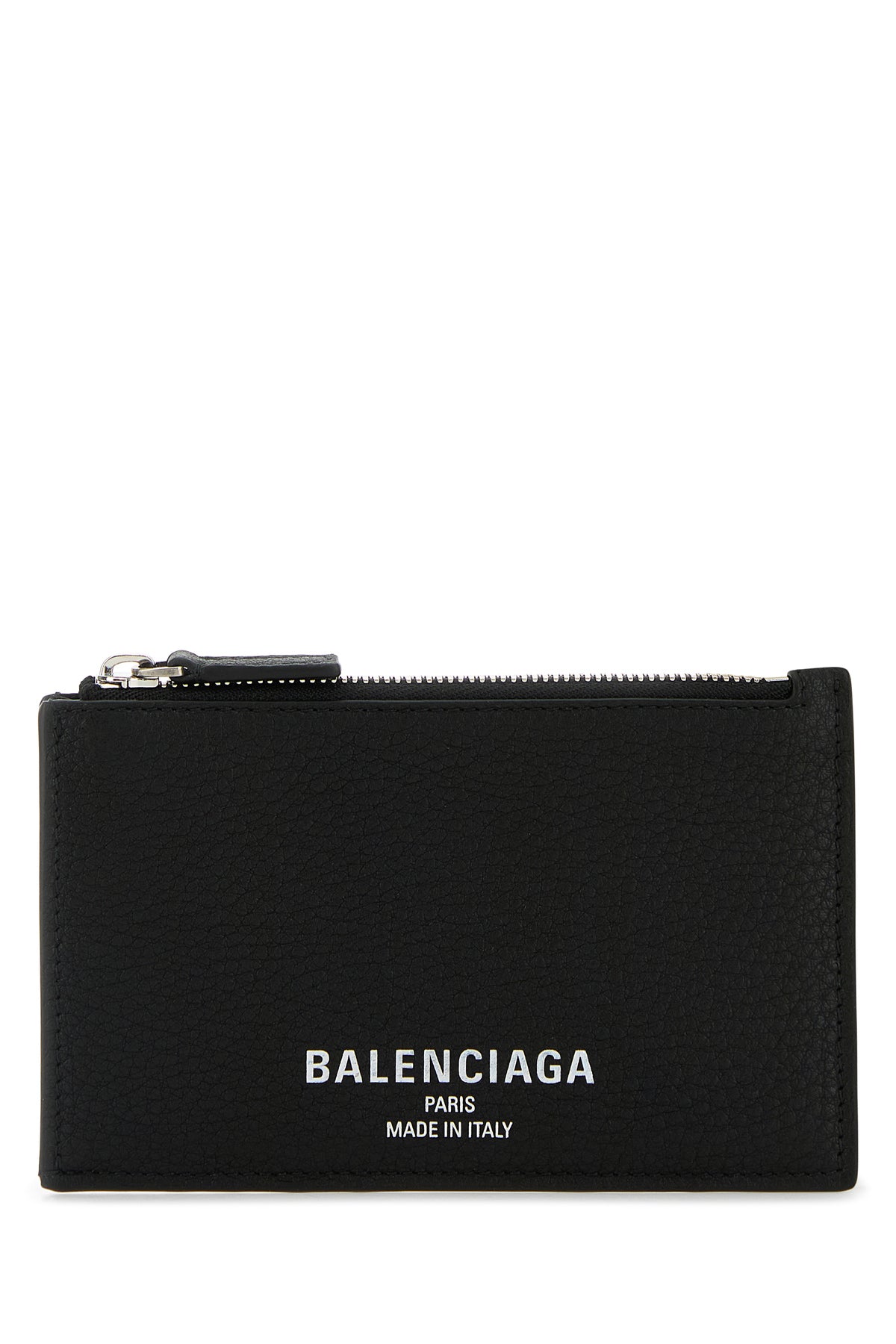 Card holder realized in pebble calf leather characterized by laminated Balenciaga print at the front.