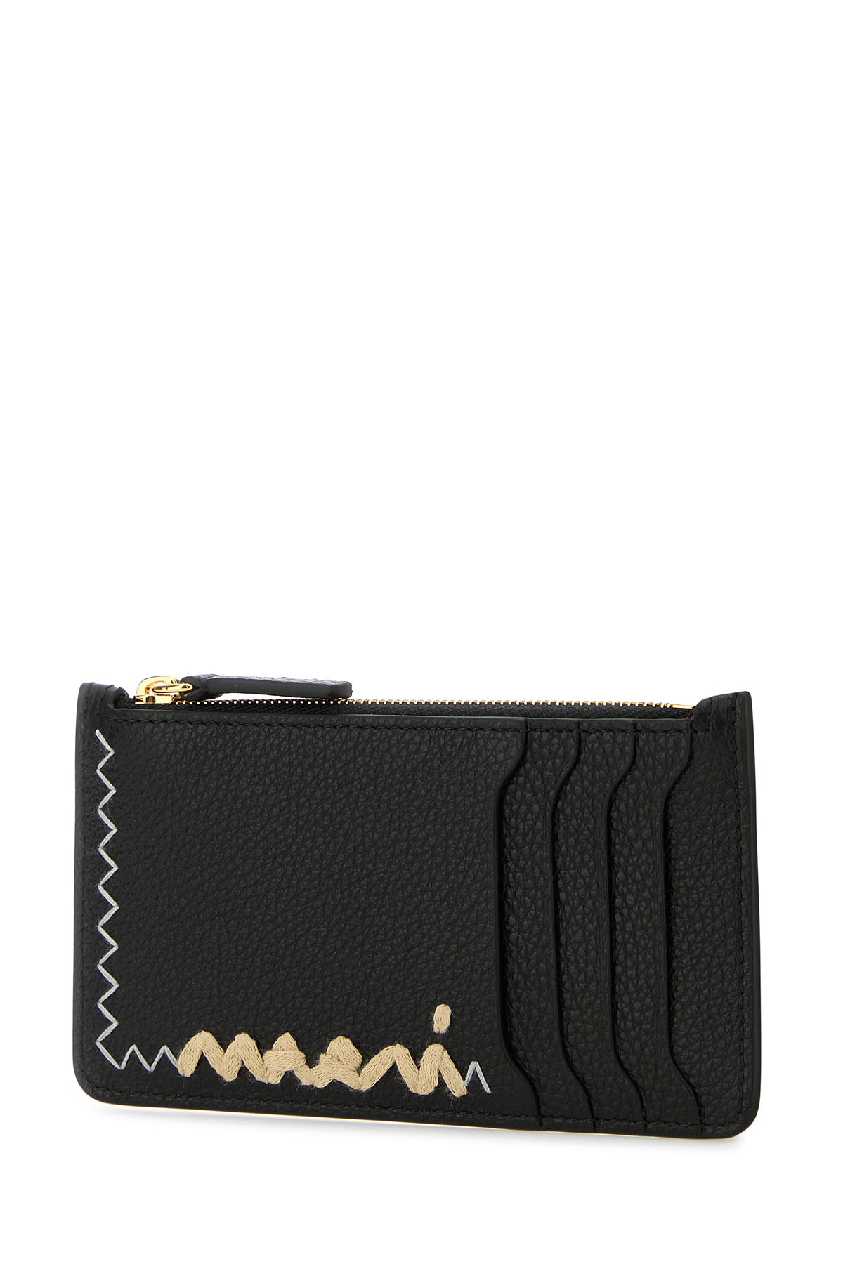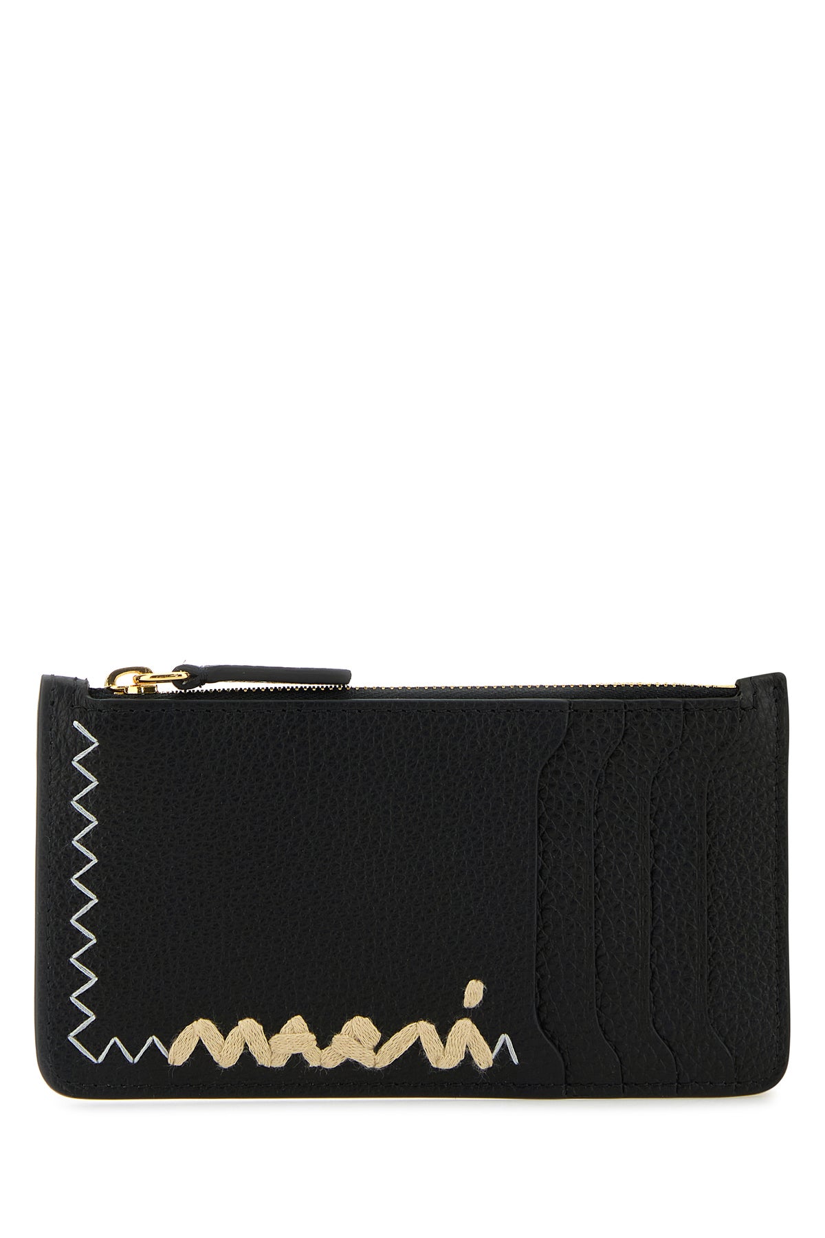 - A central zip pocket and four credit card slots