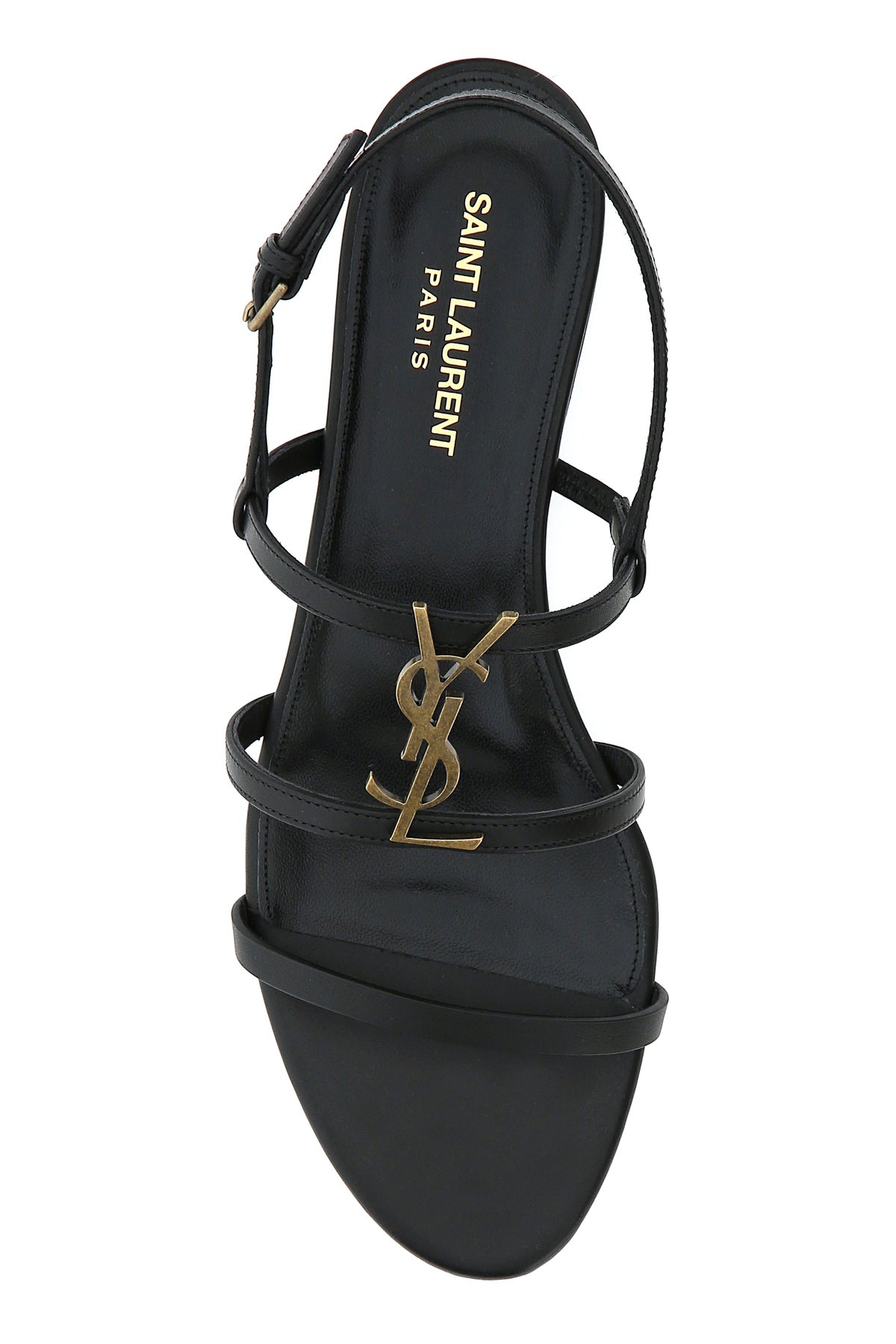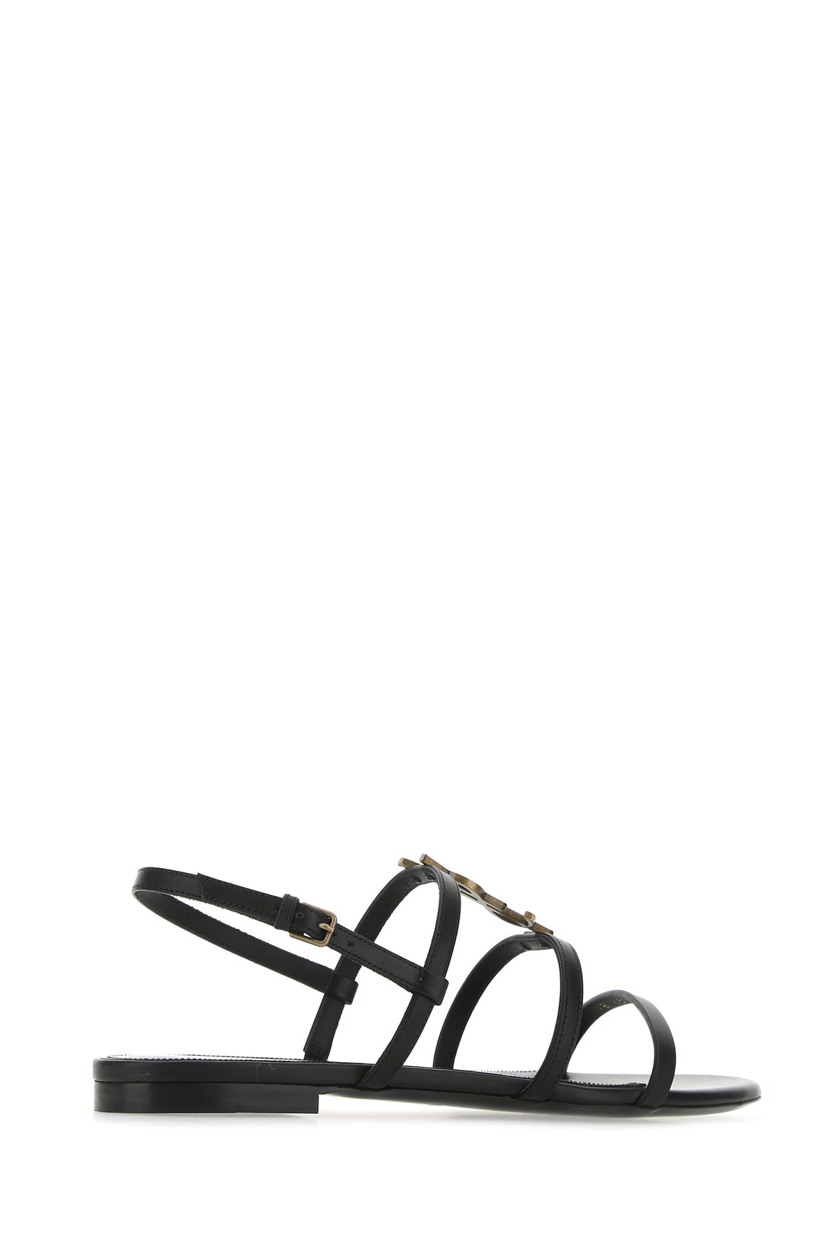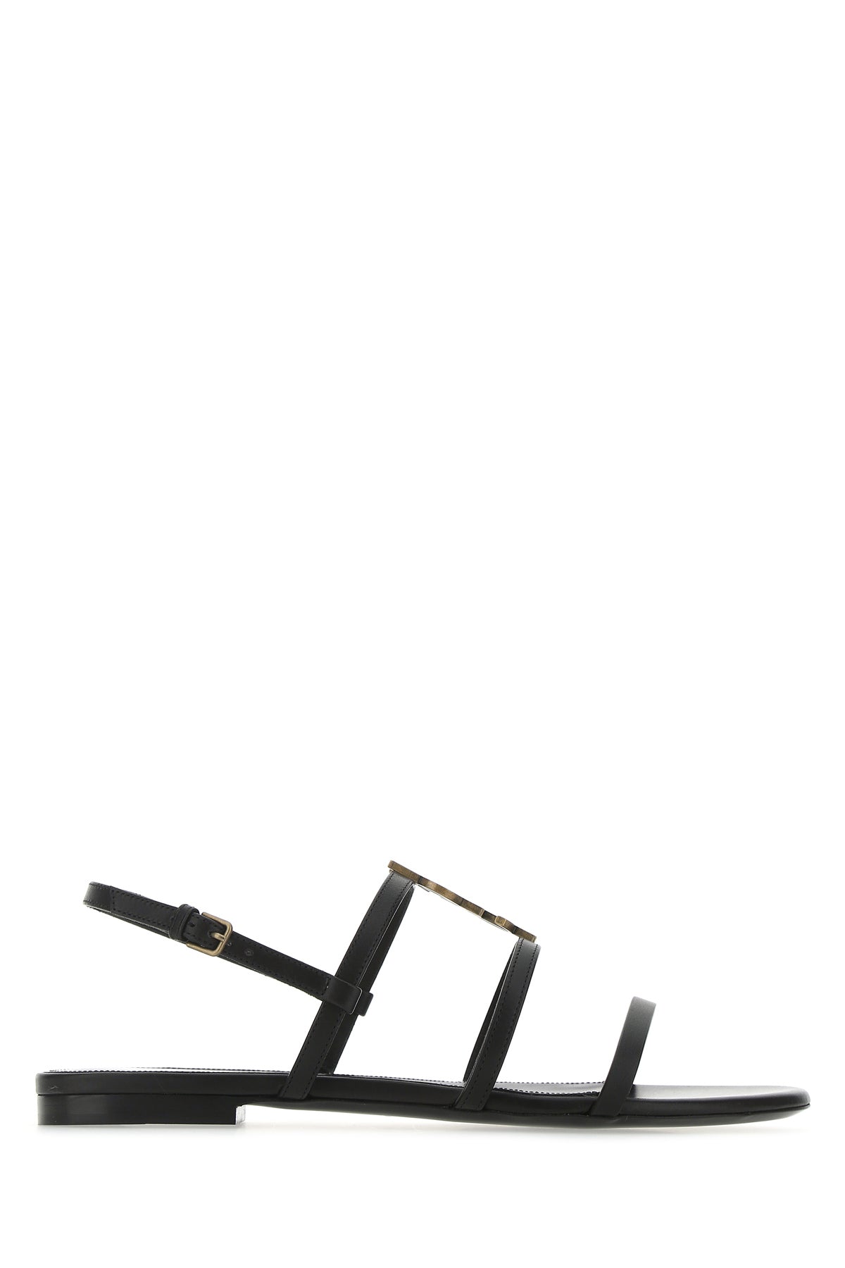 Sandals realized in smooth leather enriched by iconic antiqued metal Monogram detail on the instep.