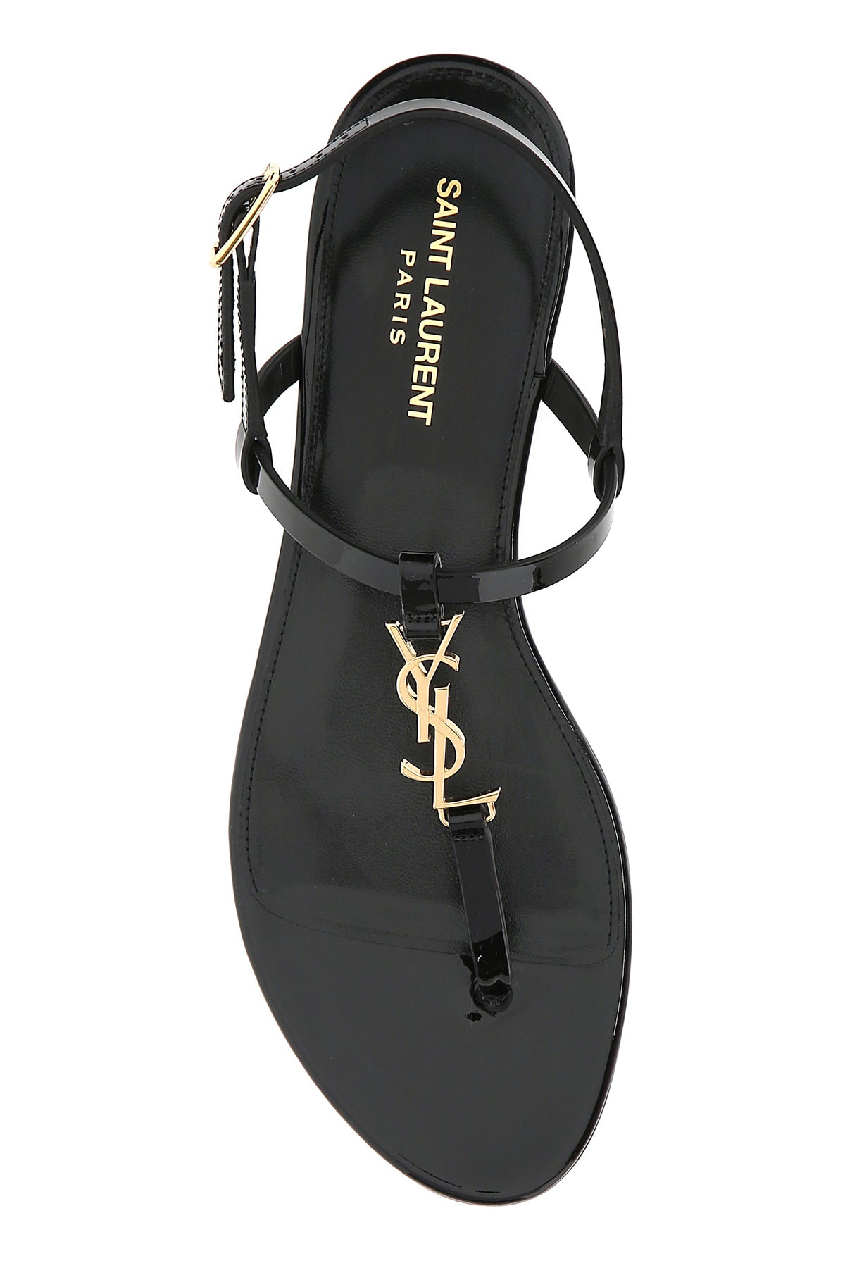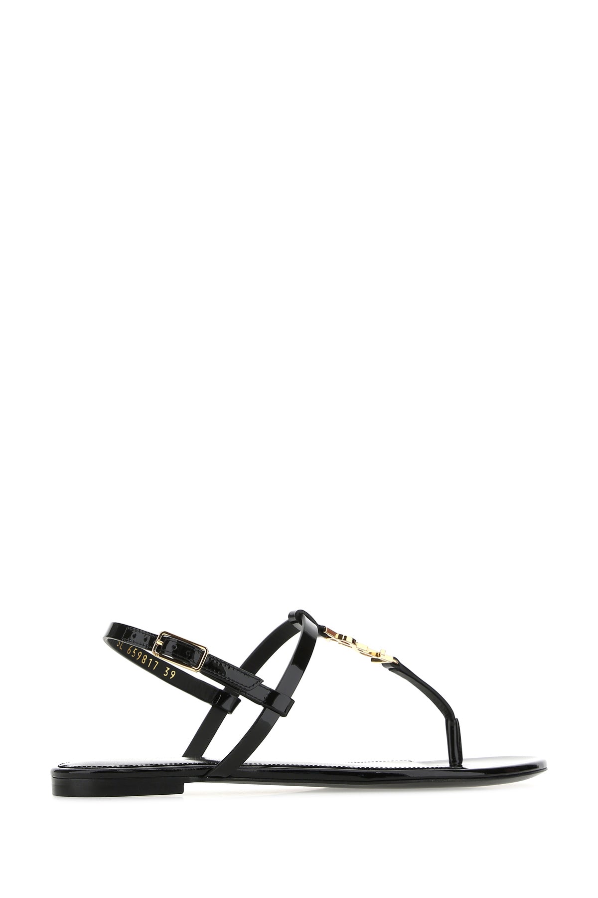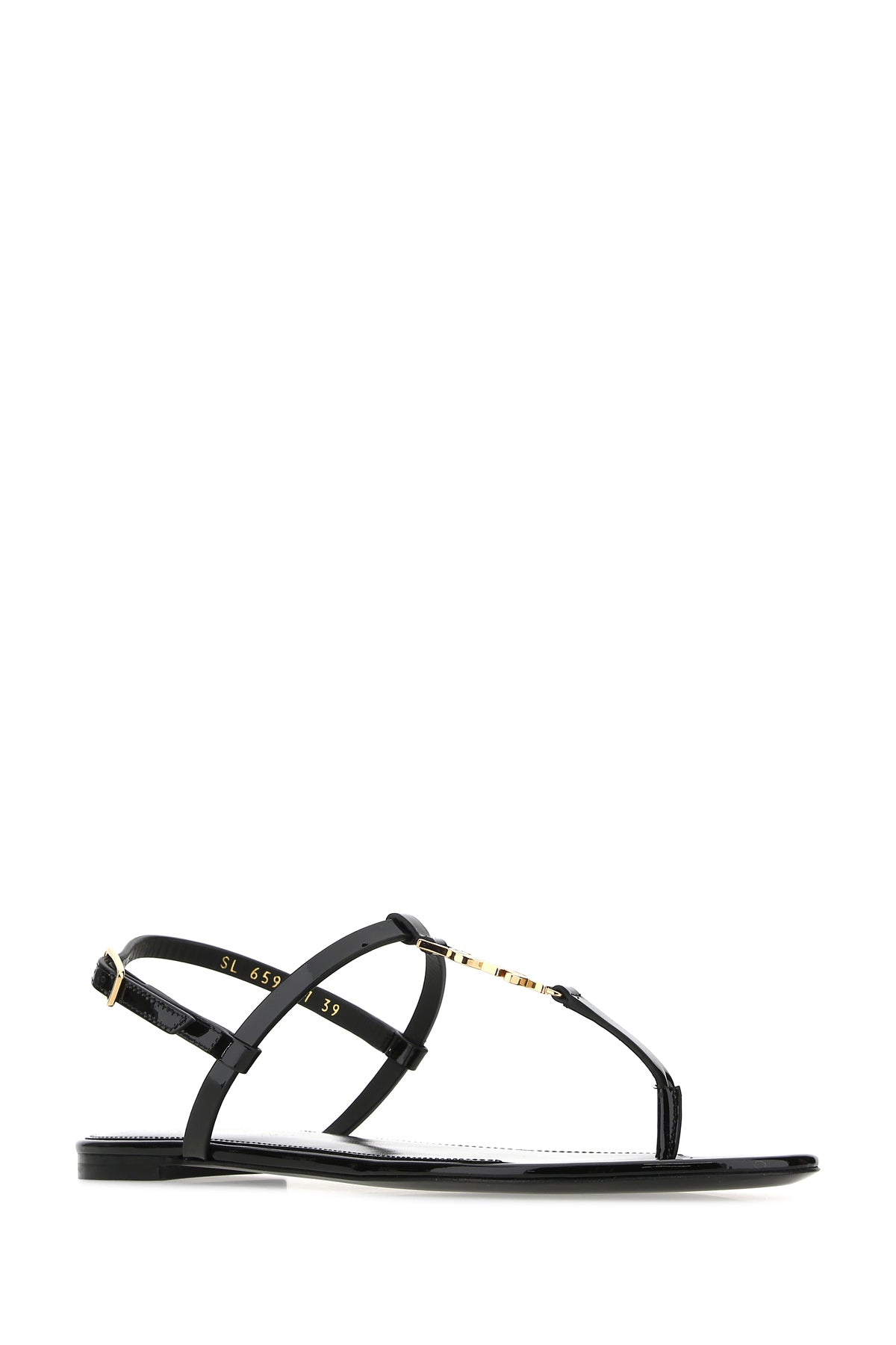 Sandals realized in patent leather enriched by iconic metal Monogram detail at the front.
