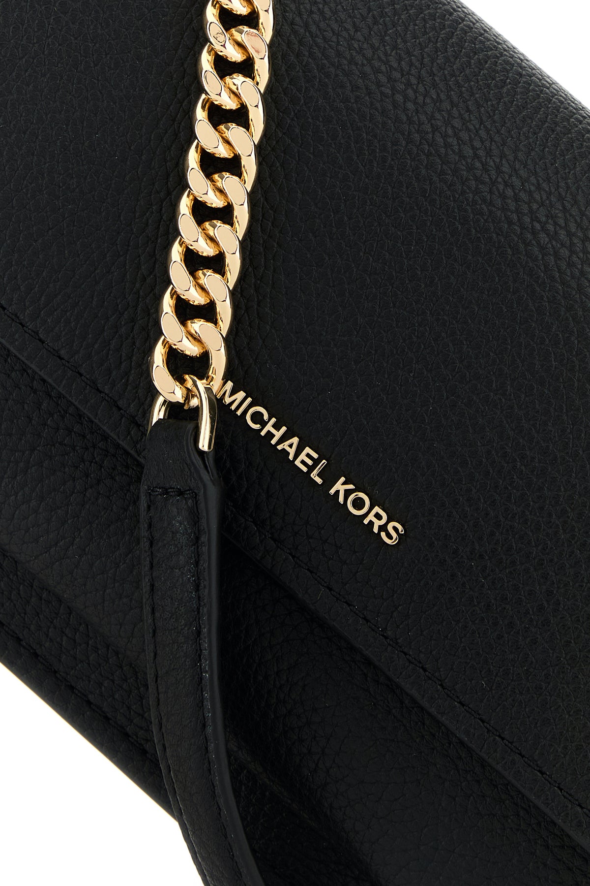 - Metal chain shoulder strap with leather shoulder pad that can be worn single or double