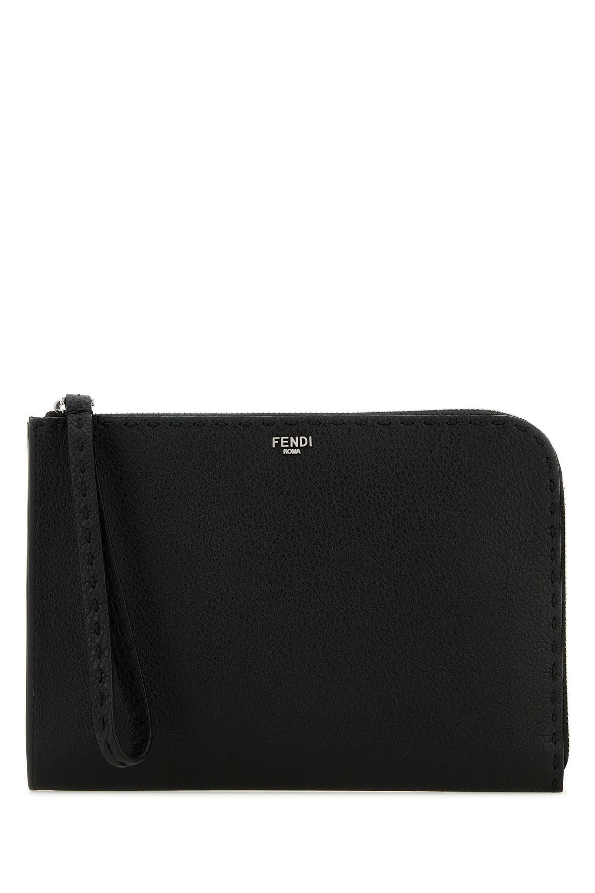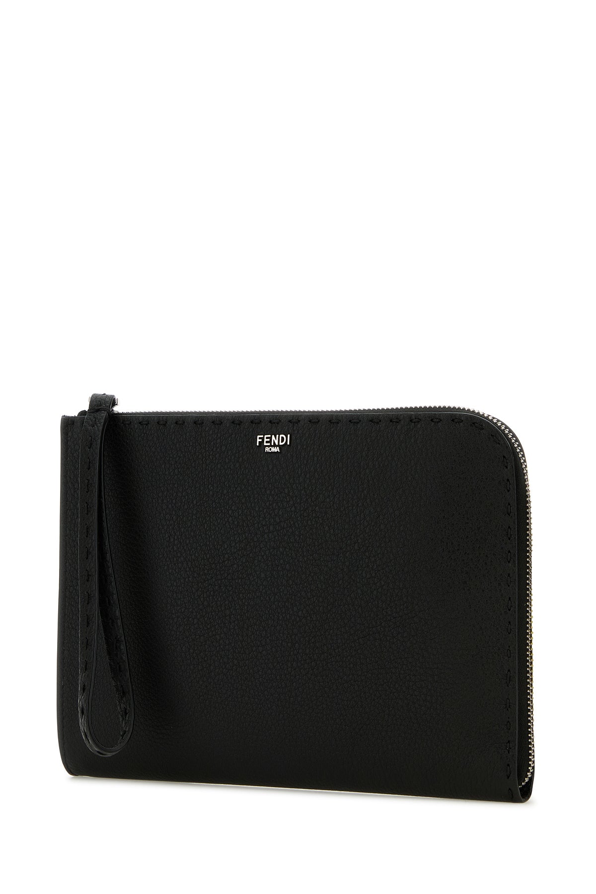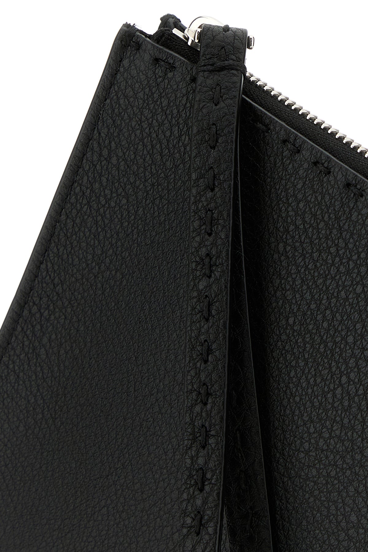 Pouch realized in pebble calf leather enriched by metal lettering logo at the front.