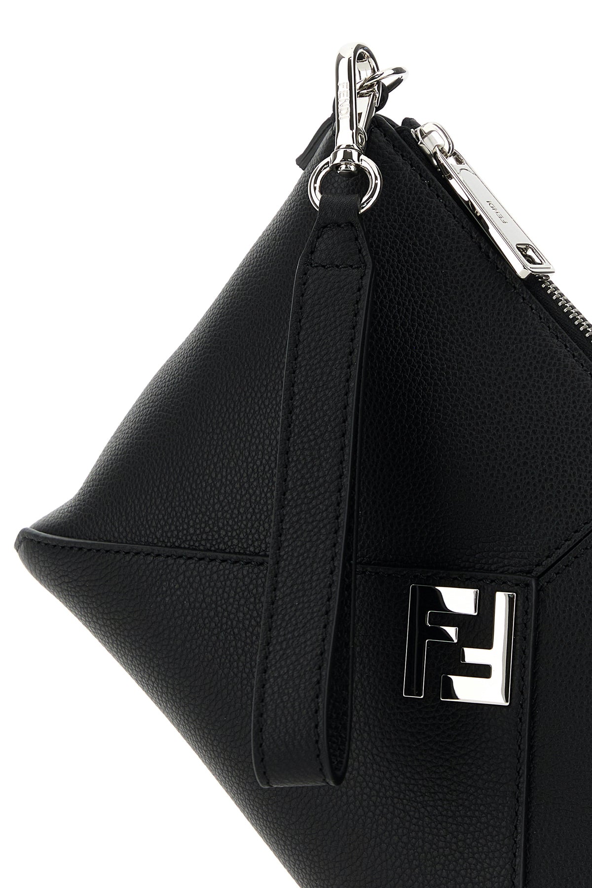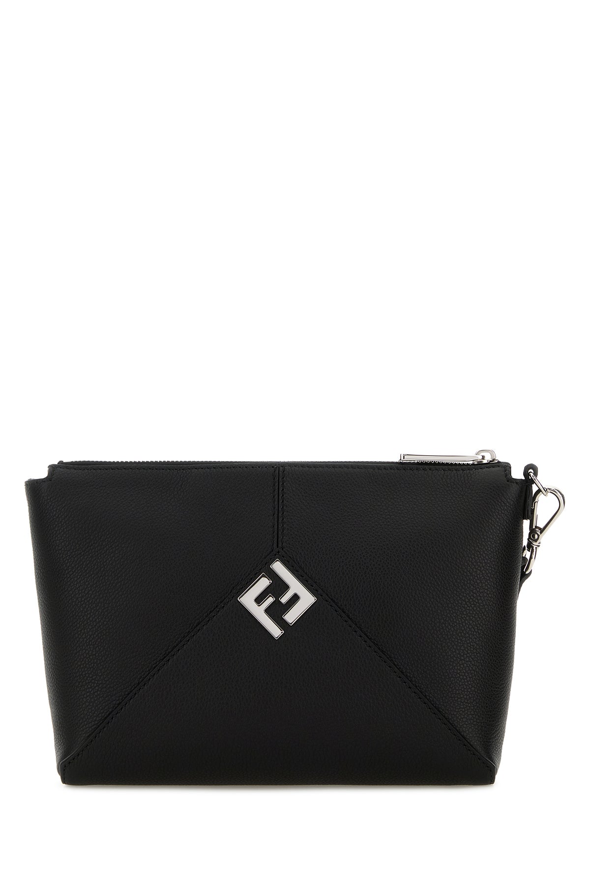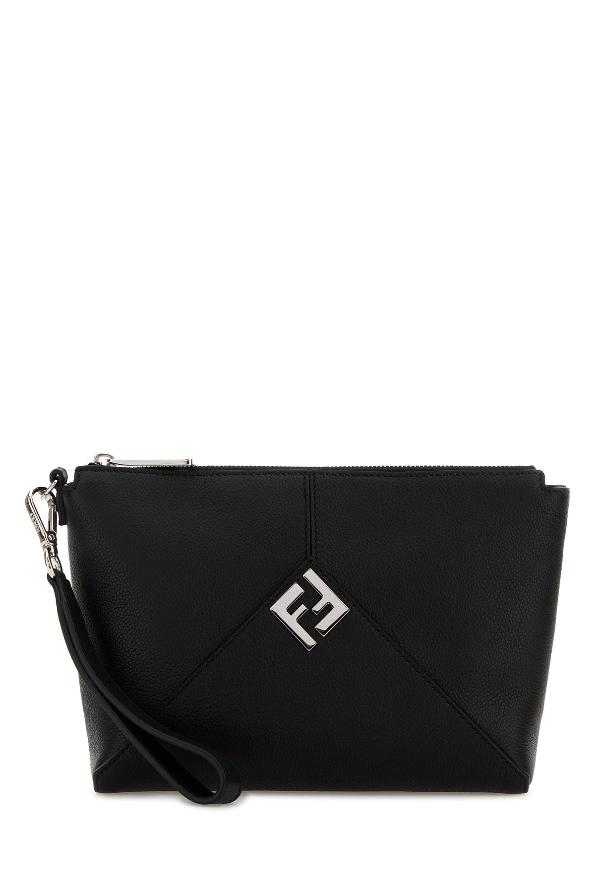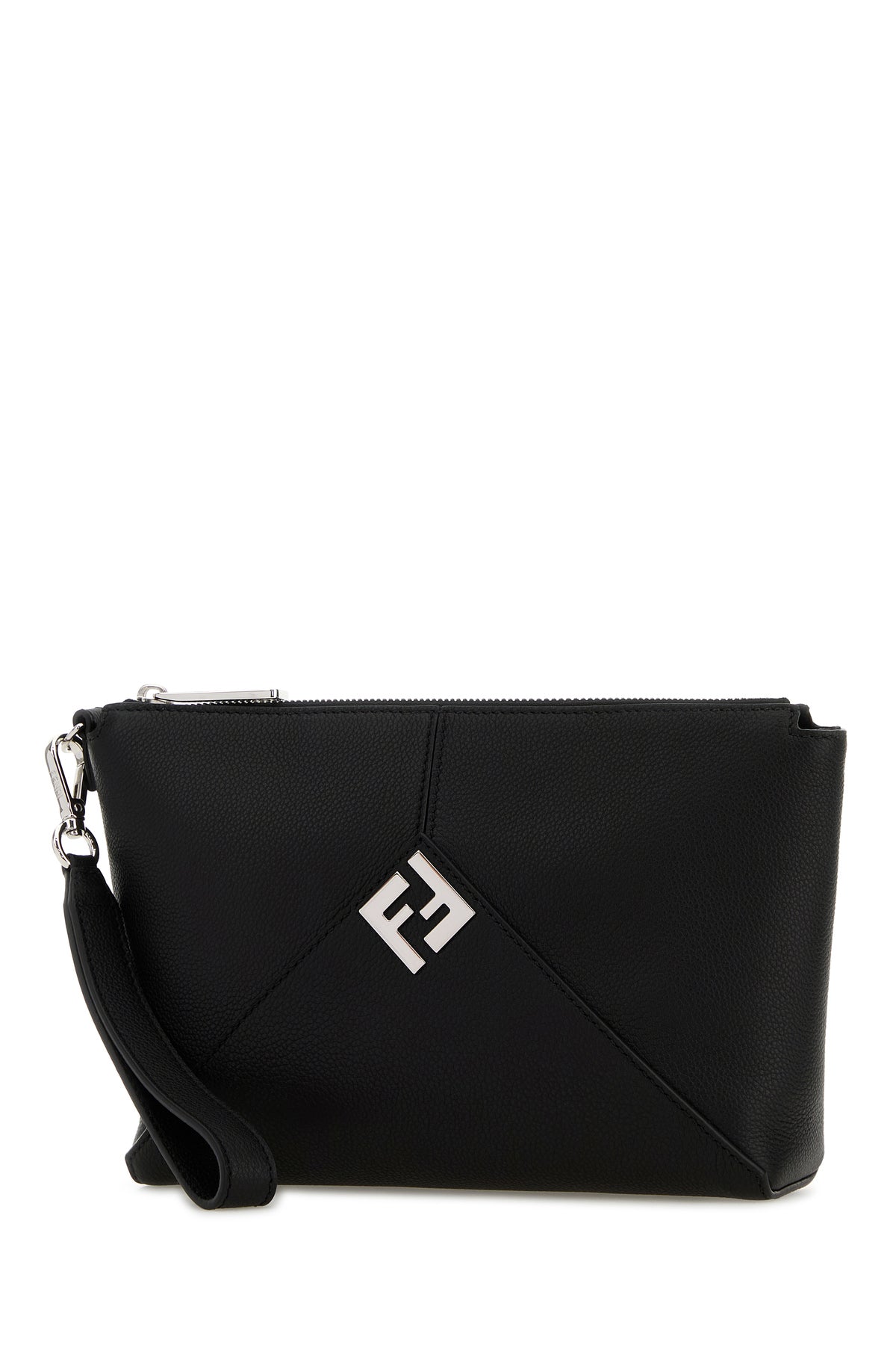 Clutch realized in pebble leather enriched by FF metal detail at the front and at the back.