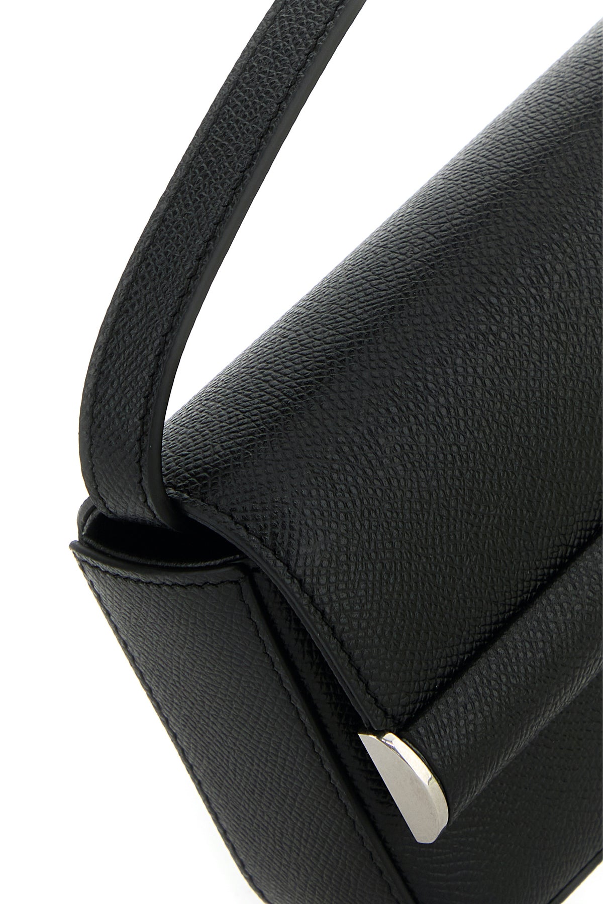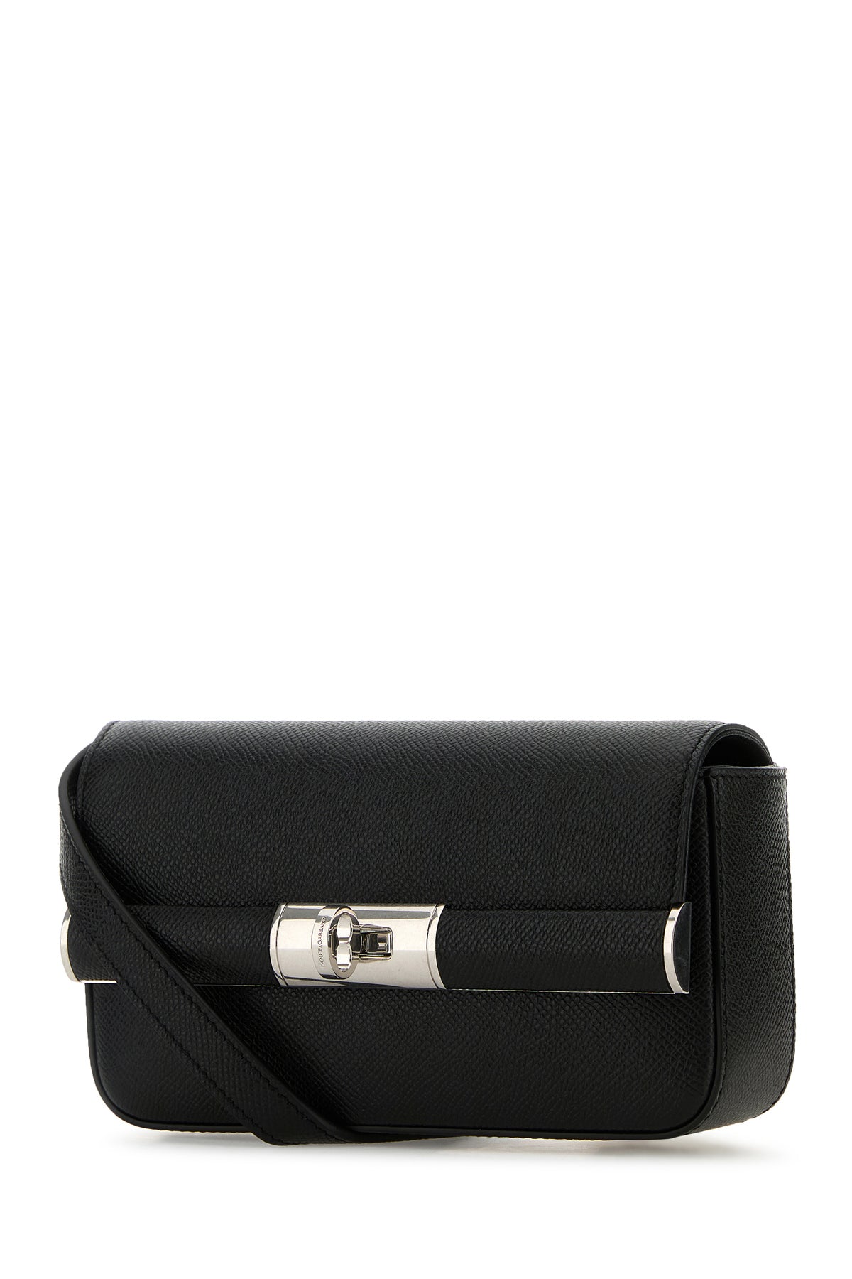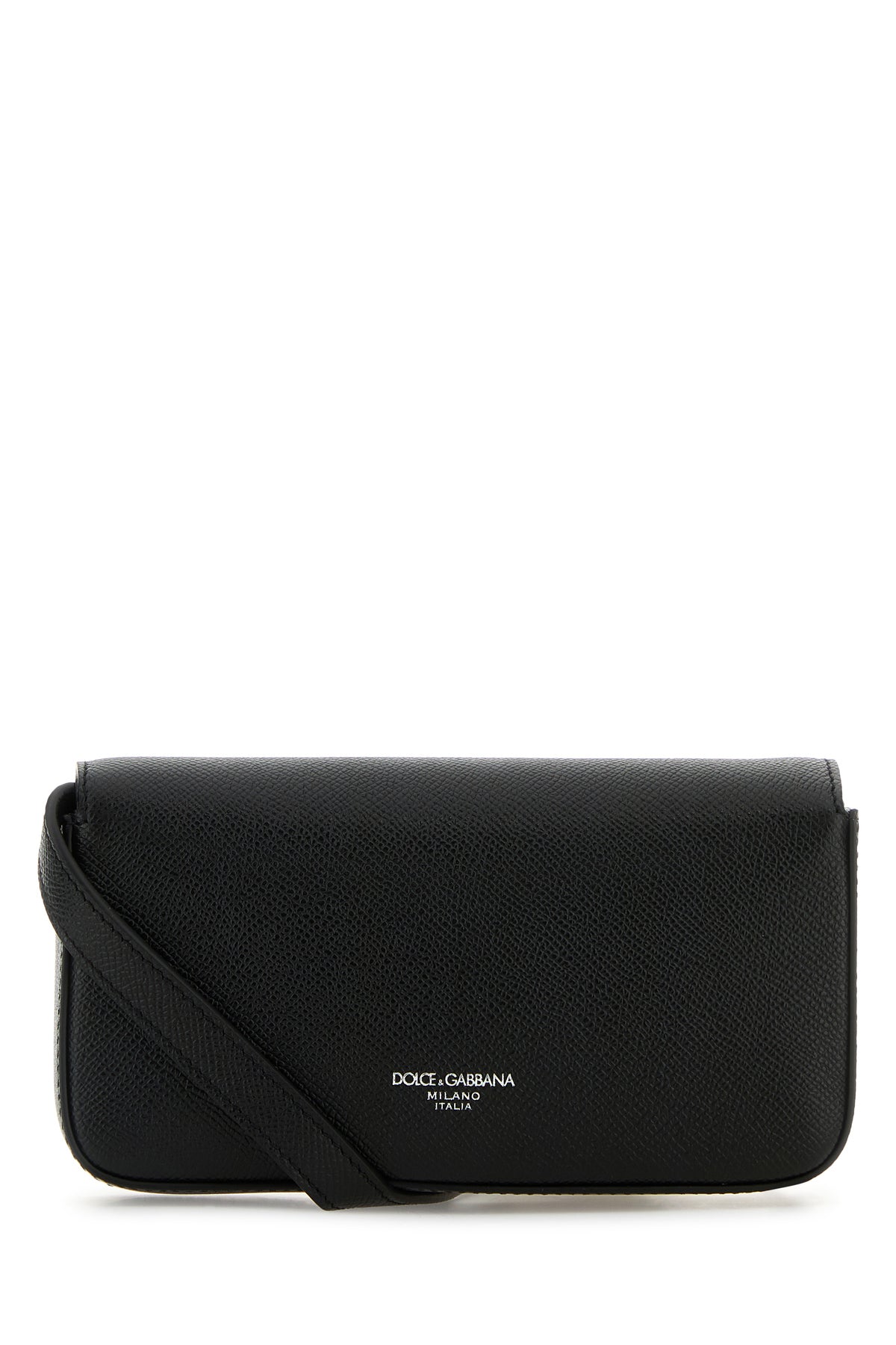 Clutch realized in pebble leather characterized by laminated printed logo at the back.
