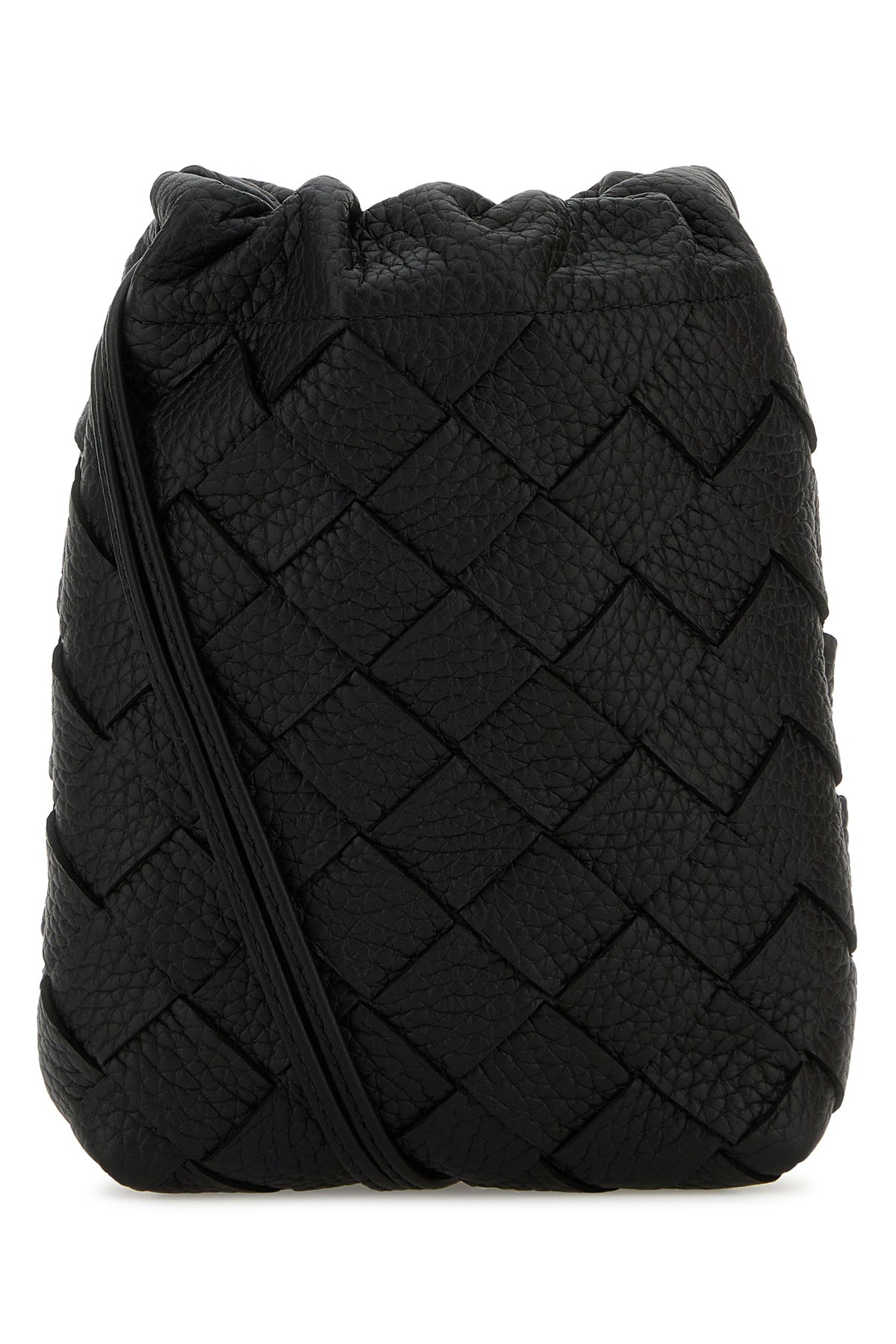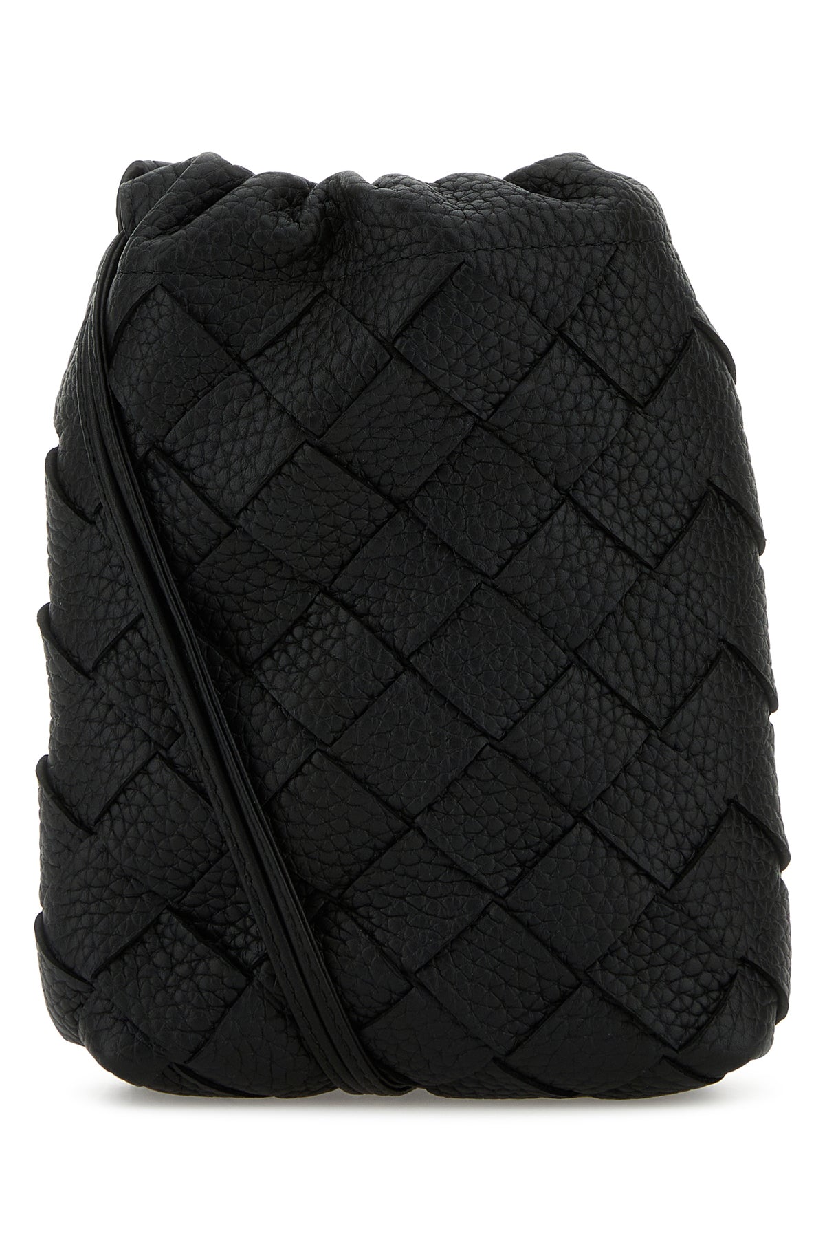 Crossbody bag realized in pebble calf leather characterized by iconic Intrecciato motif on the entire surface.