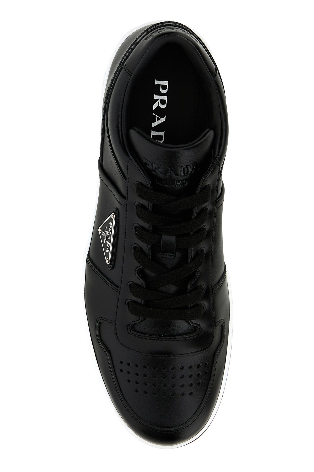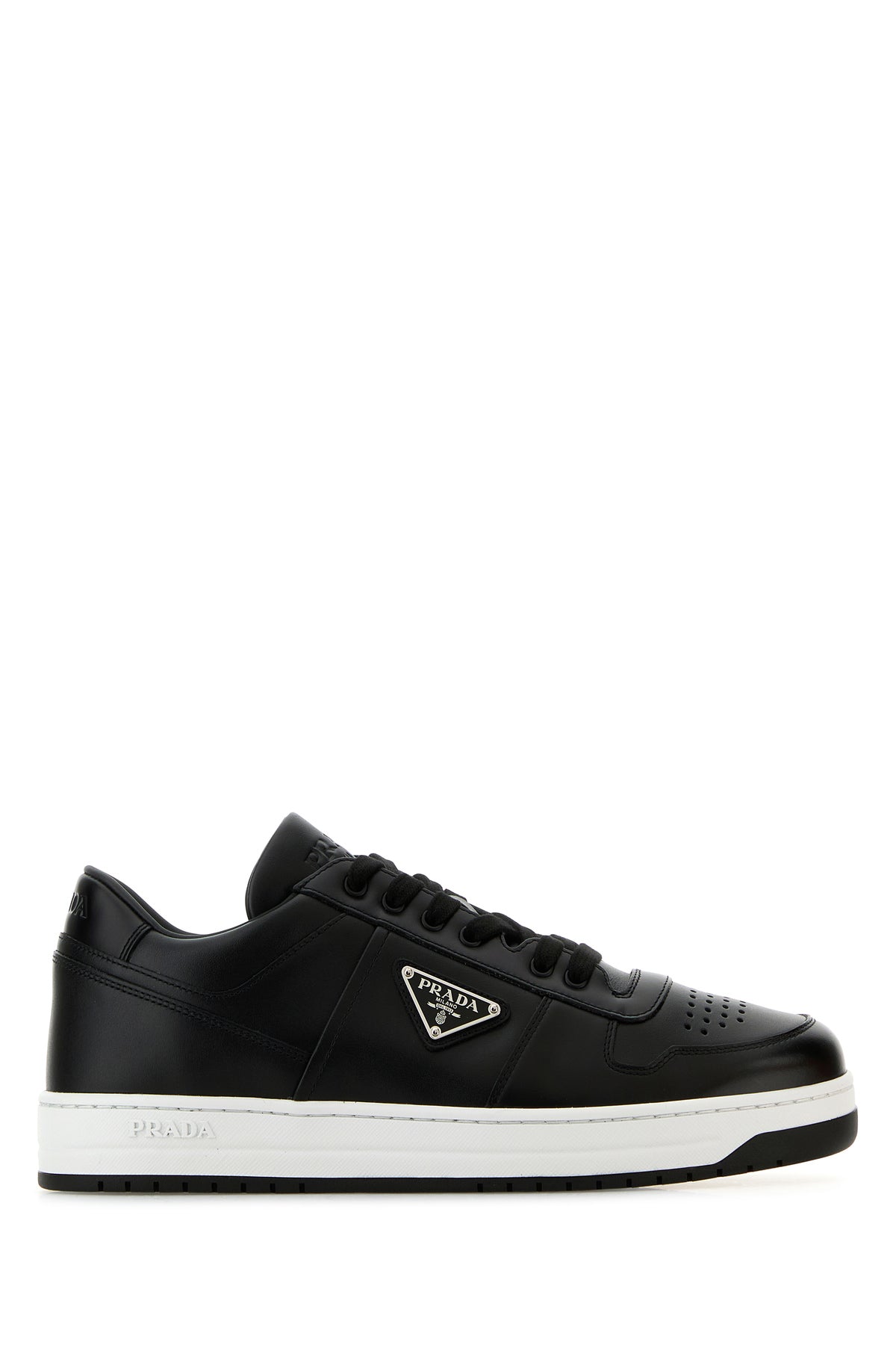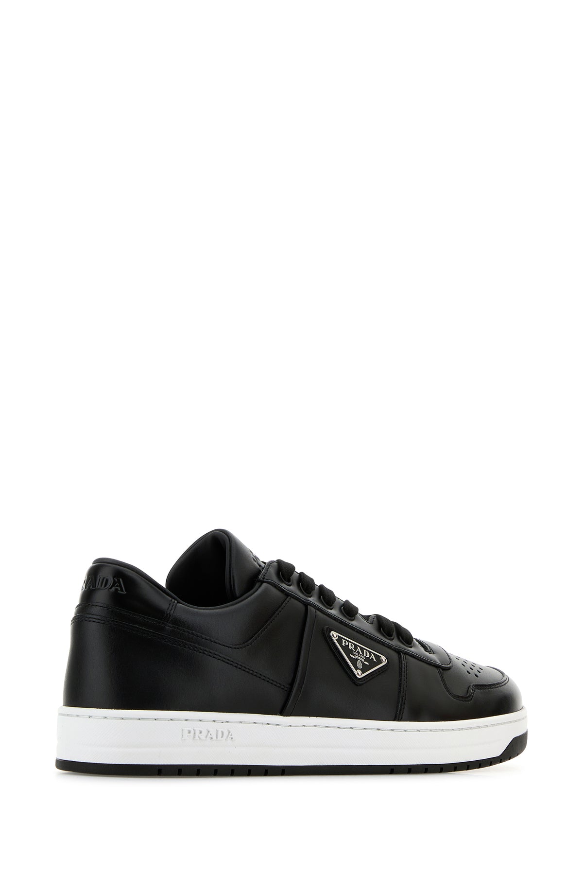 Sneakers realized in smooth leather characterized by embossed logo on the heel and on the padded tongue and tonal logo in relief on the side enriched by iconic logoed triangle on the side.
