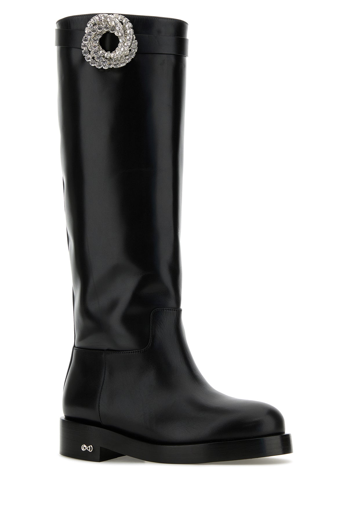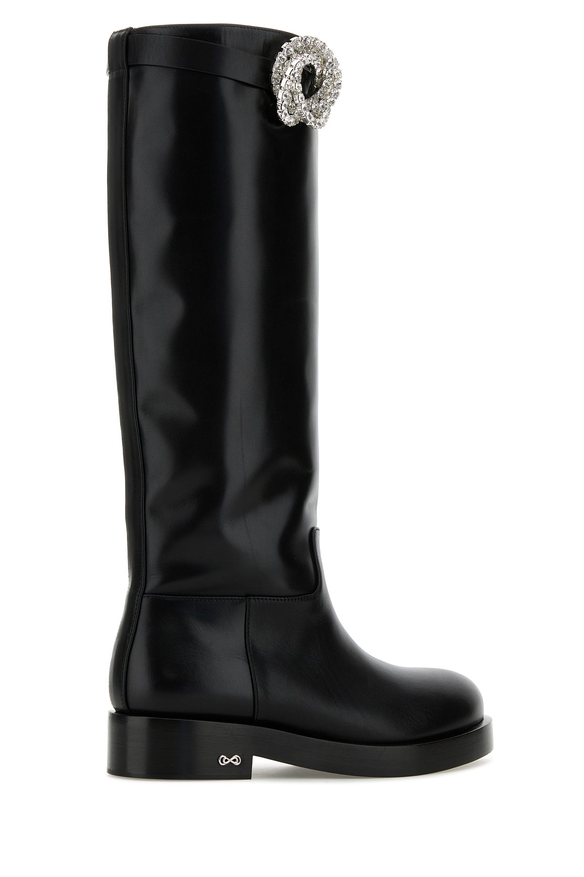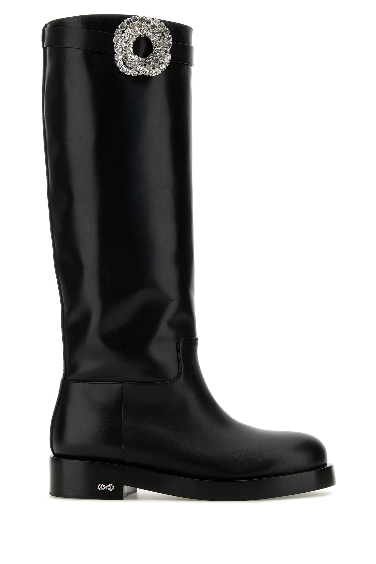 Boots realized in smooth leather enriched by jewel detail at the top and metal logoed detail on the heel.