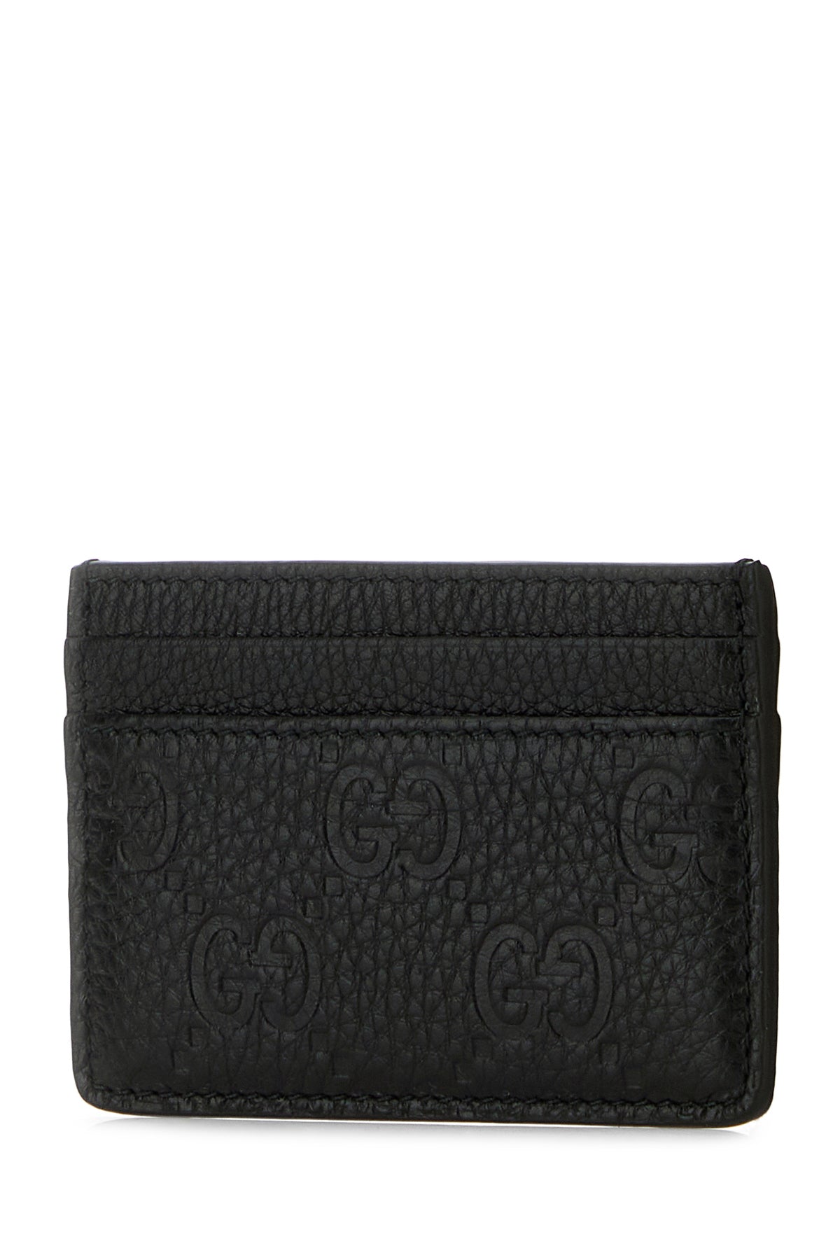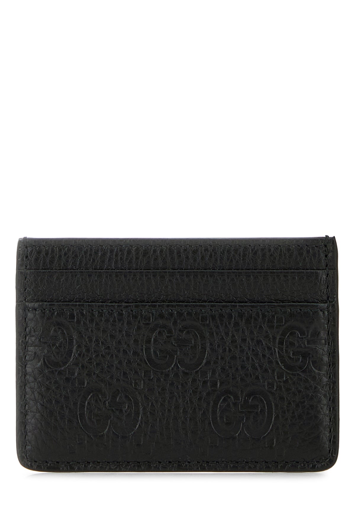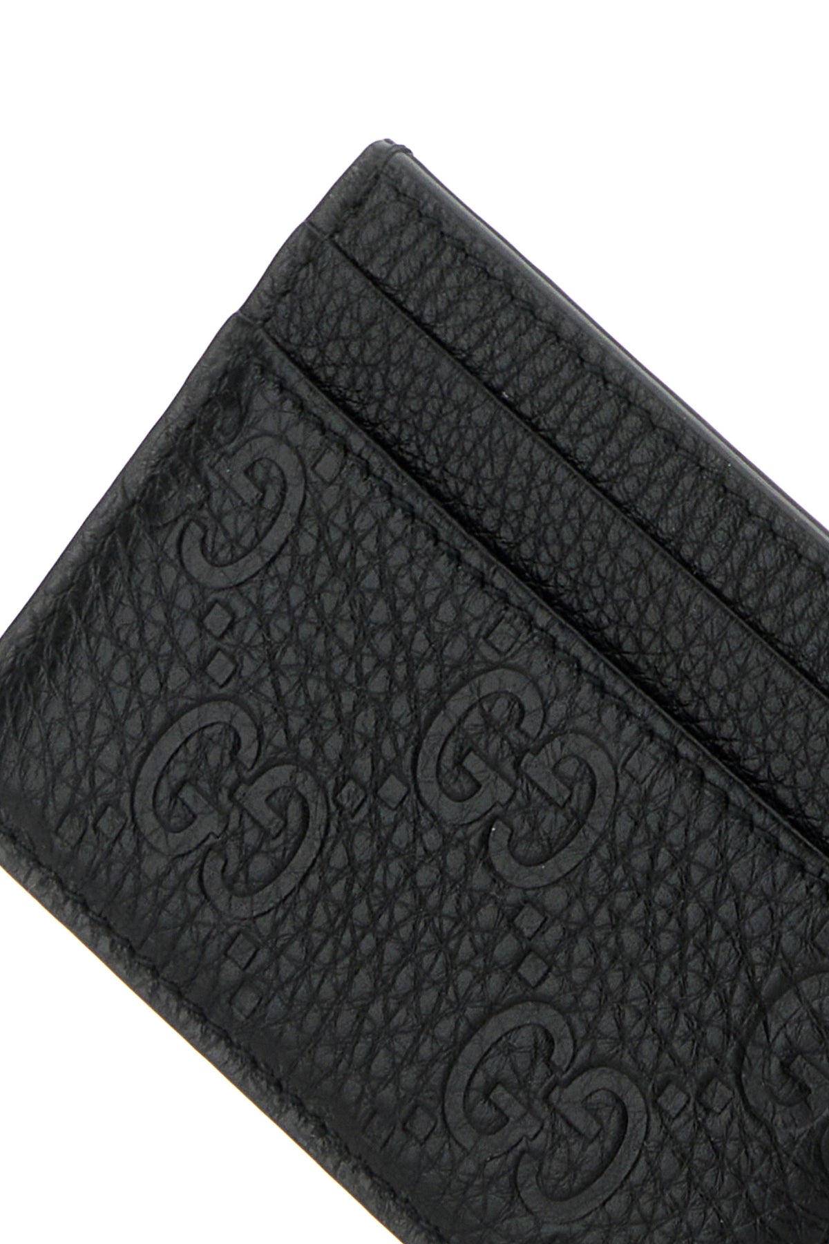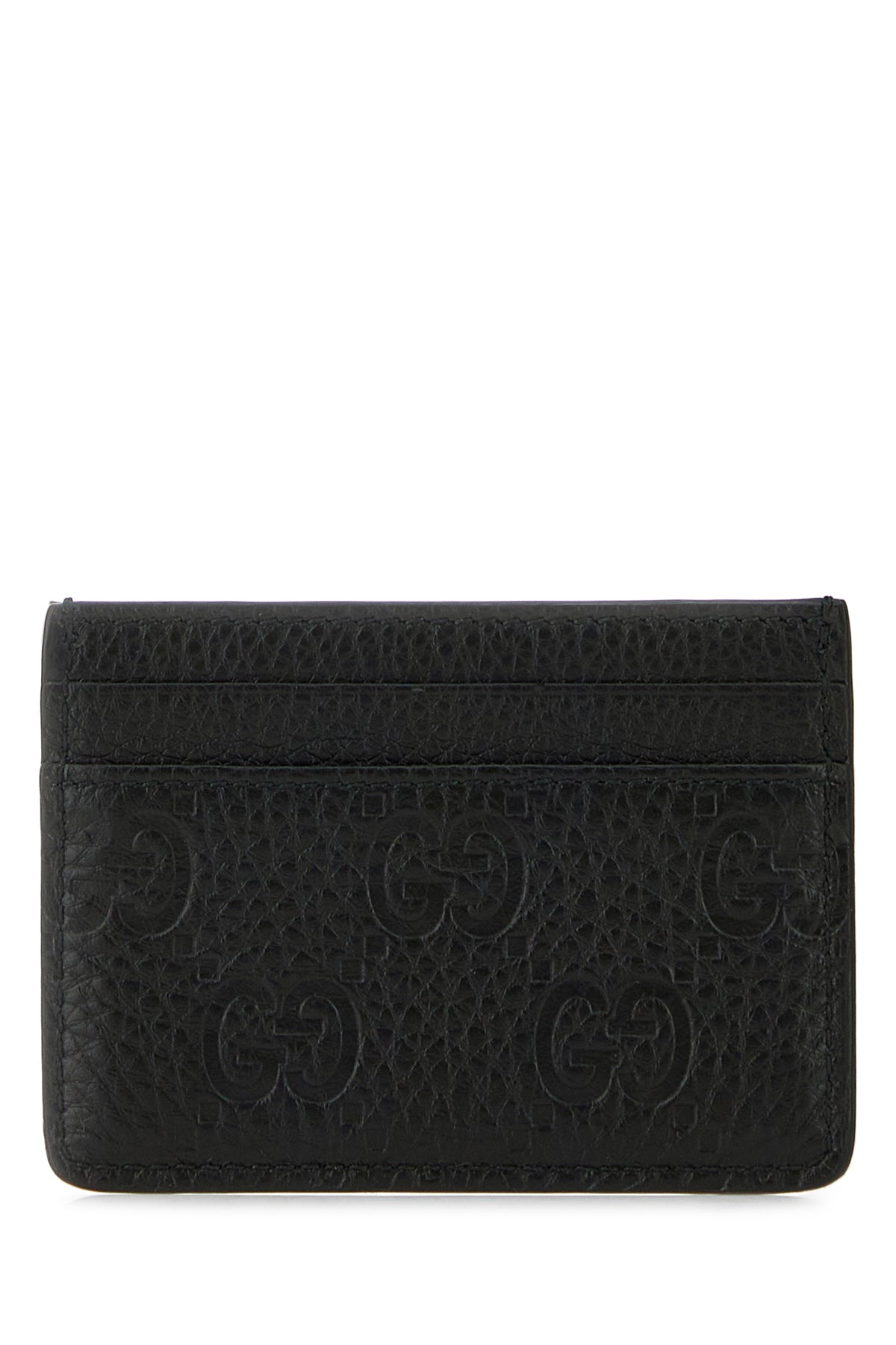 Card holder realized in pebble leather characterized by embossed GG on the entire surface.