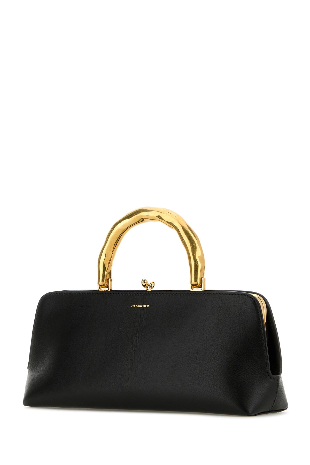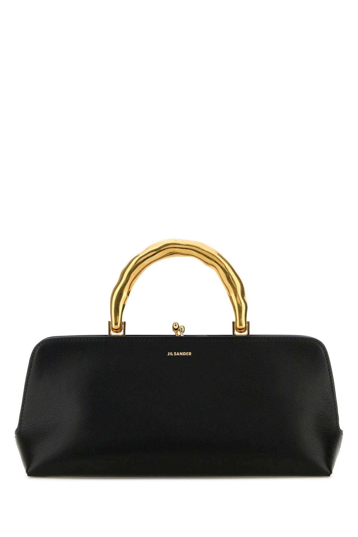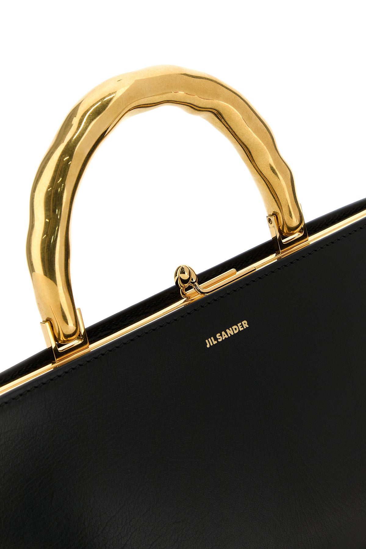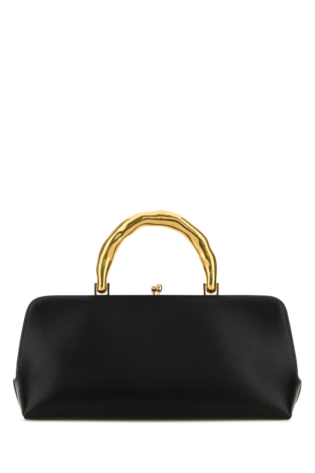 Handbag realized in slightly pebble leather characterized by laminated printed logo at the front.