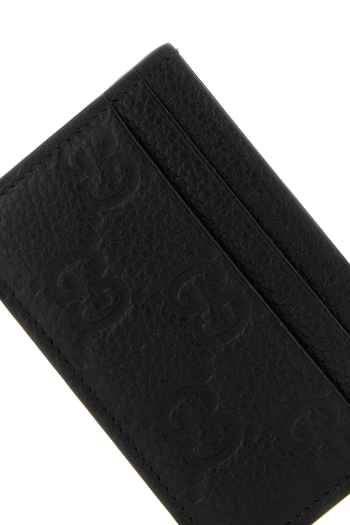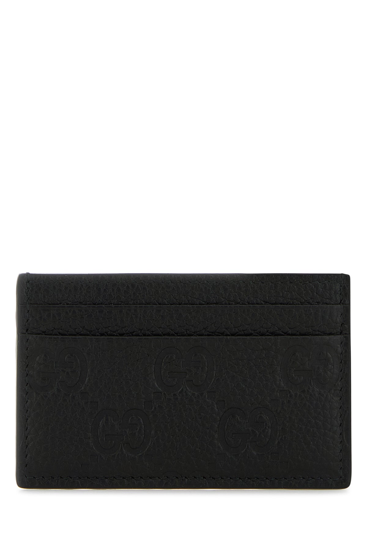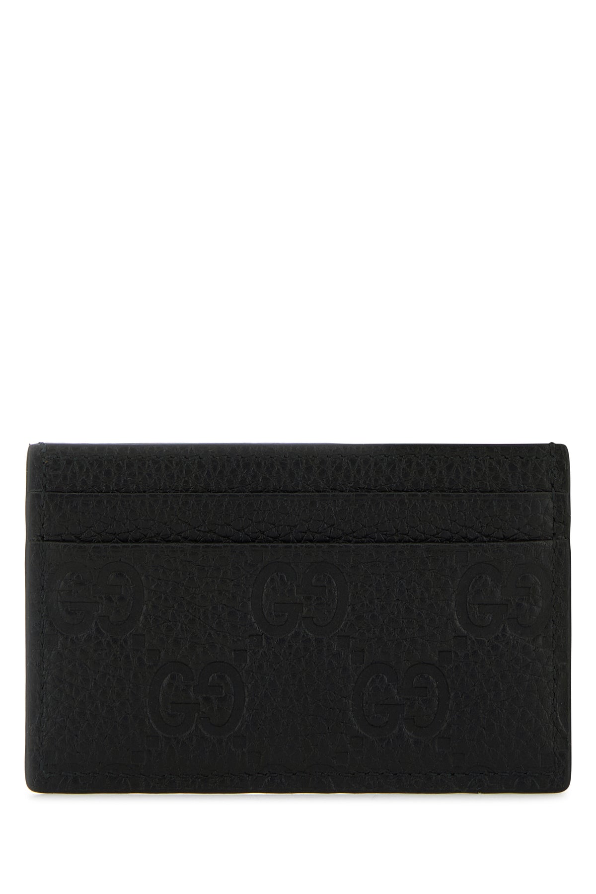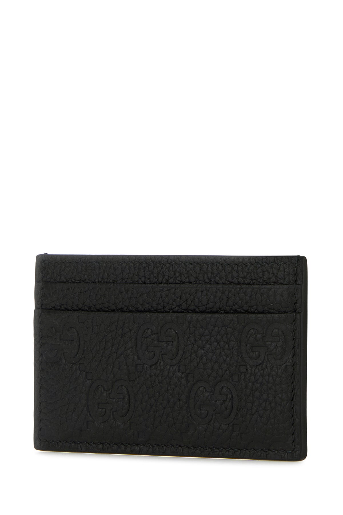 Card holder realized in pebble calf leather characterized by GG motif embossed on the entire surface.