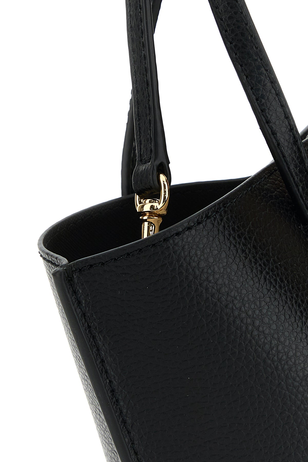 Handbag realized in pebble leather characterized by laminated printed logo at the front.