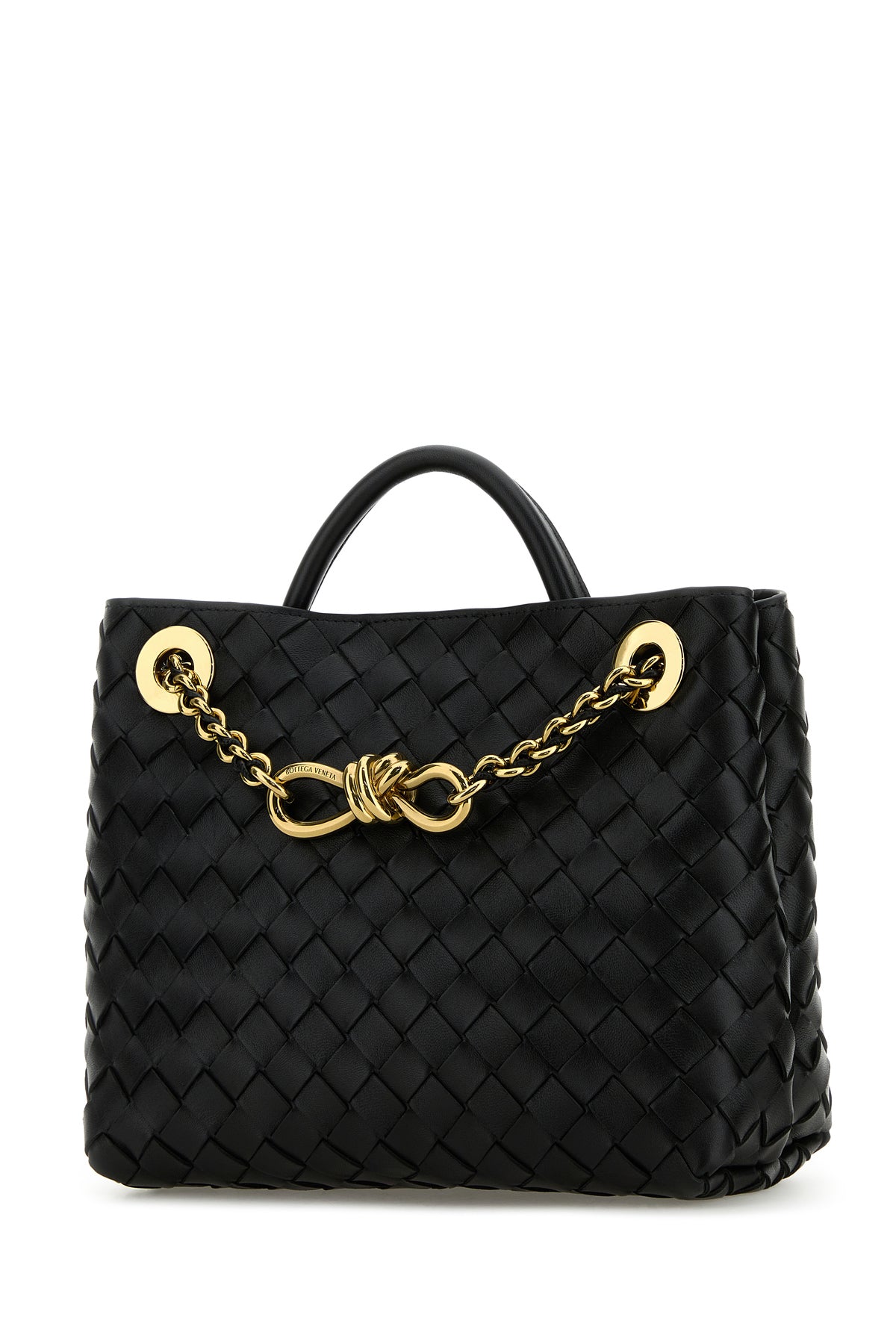 Handbag realized in leather characterized by iconic Intrecciato motif on the entire surface.