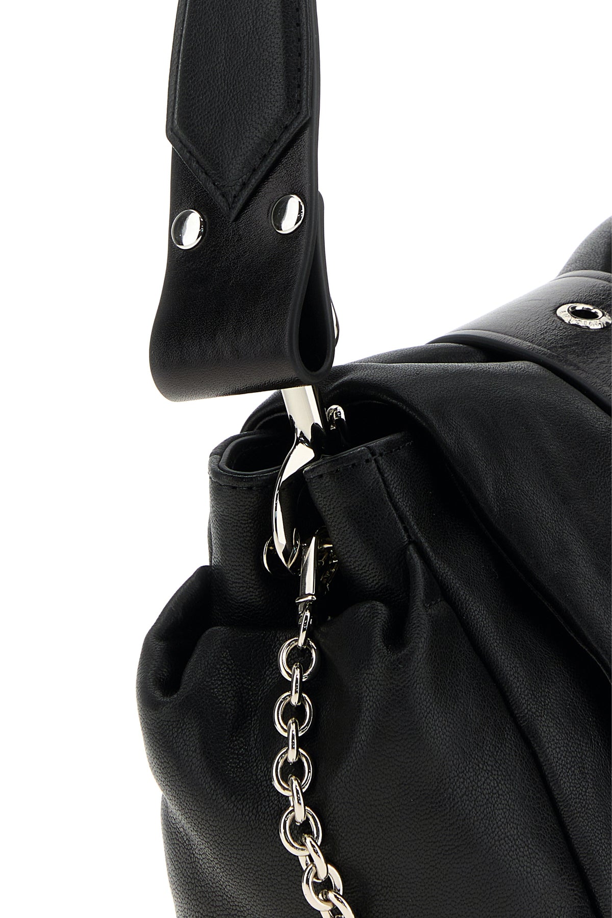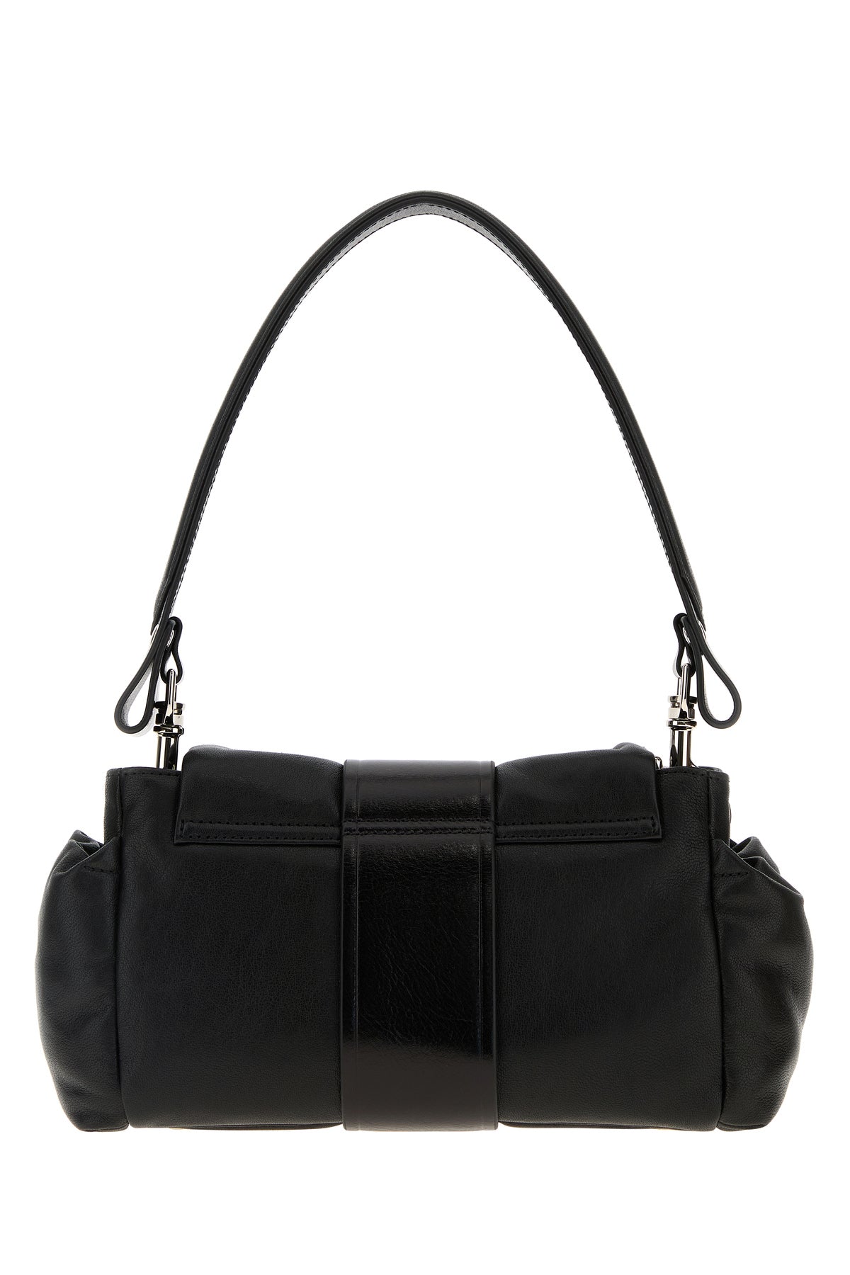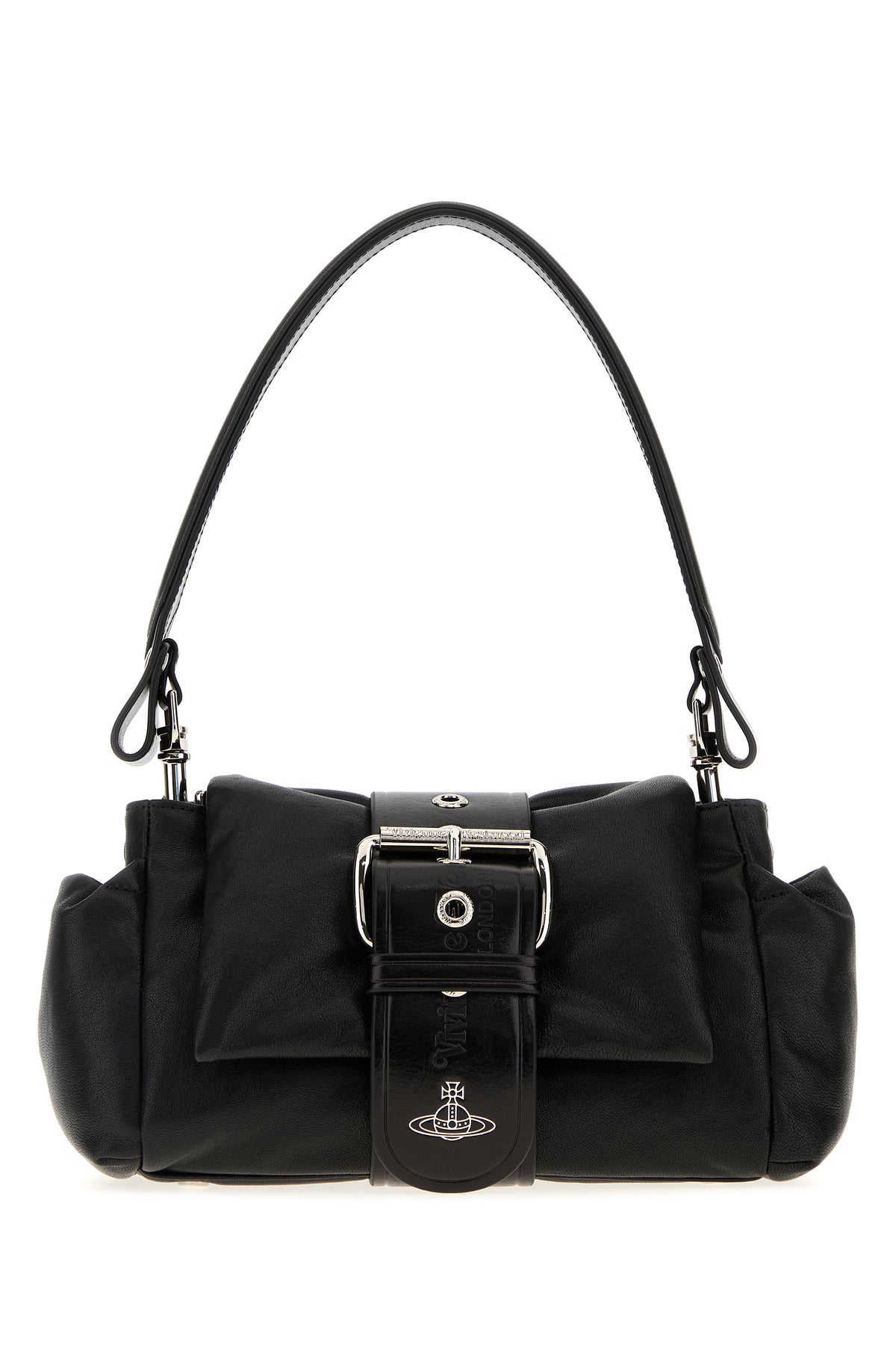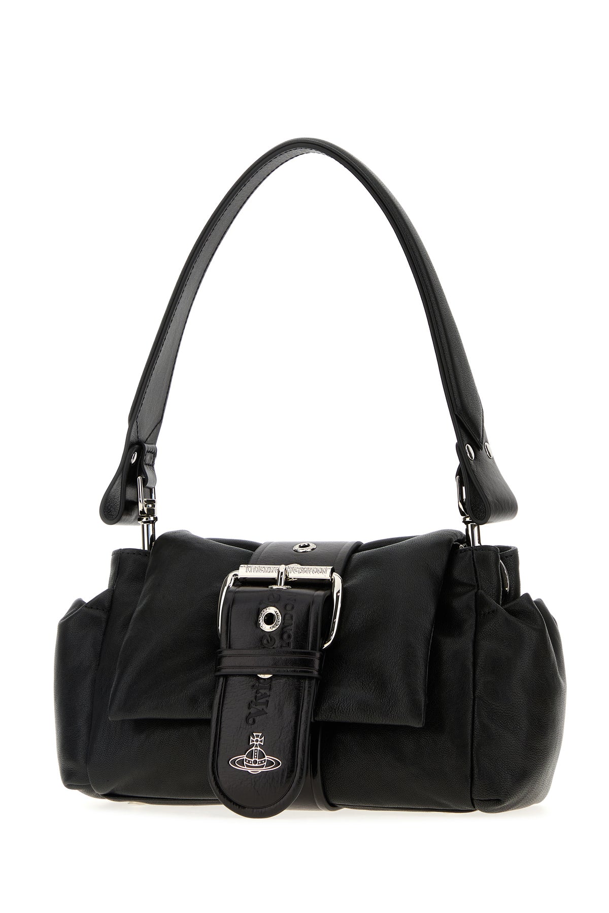 Shoulder bag realized in pebble leather characterized by embossed logo and laminated Orb print on the strap at the front.