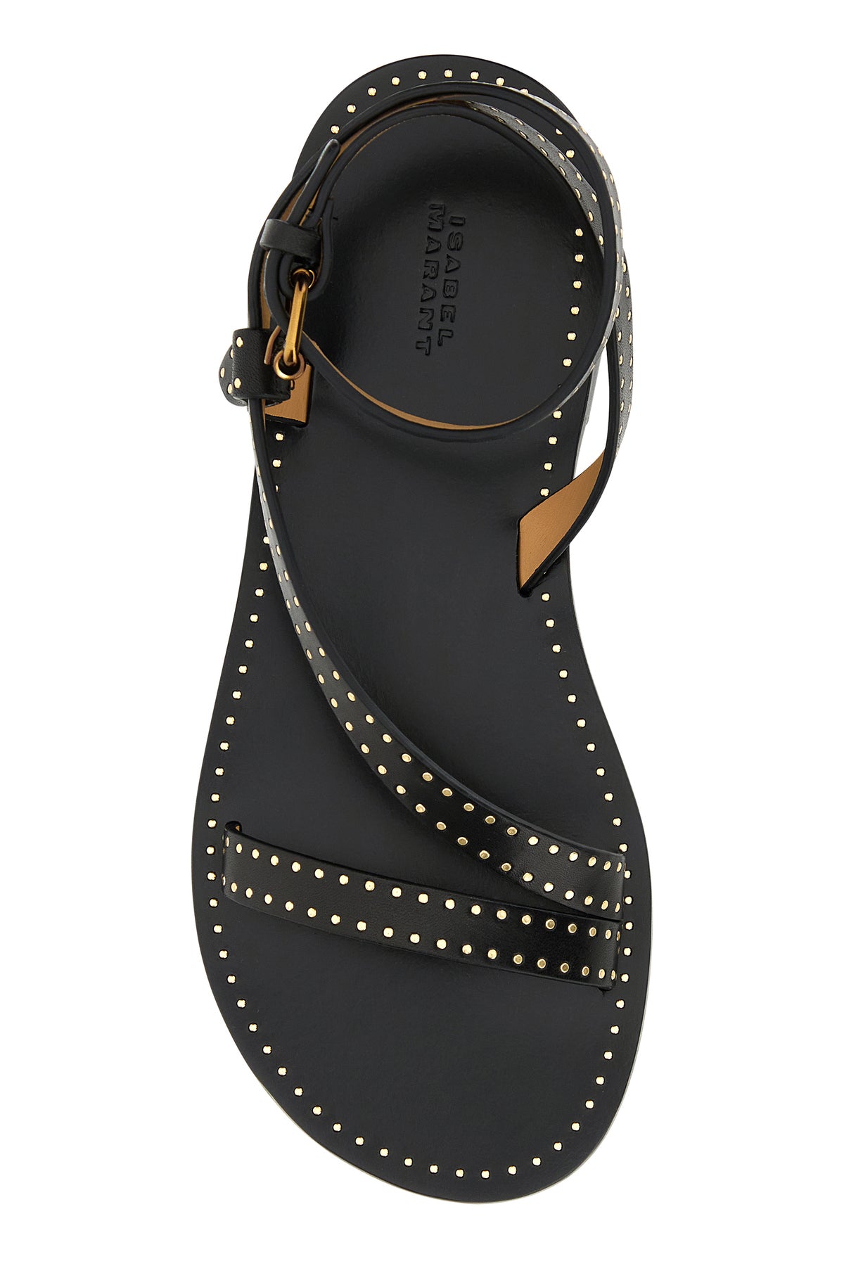 Sandals realized in smooth bovine leather enriched by metal studs on the entire surface.