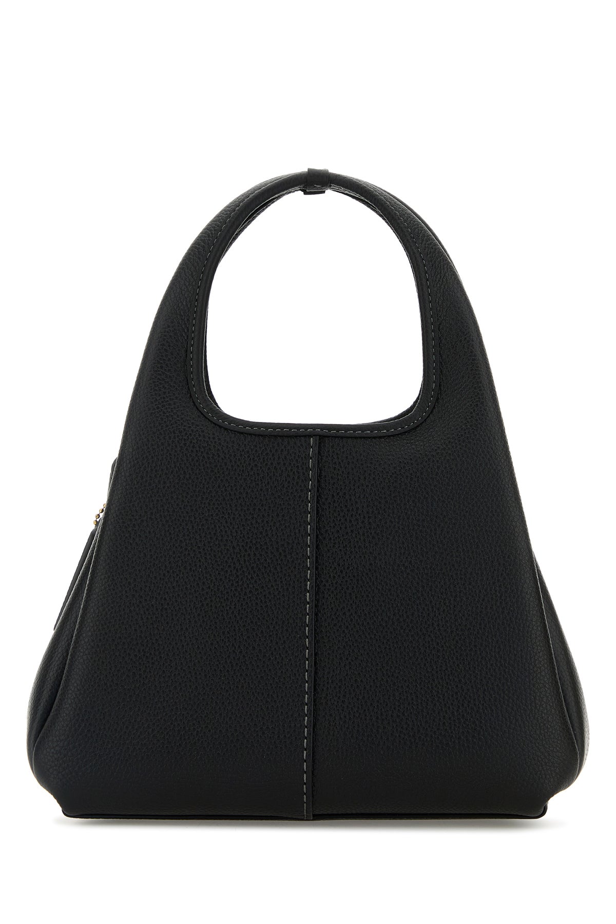 Handbag realized in pebble leather enriched by logoed metal detail at the front.