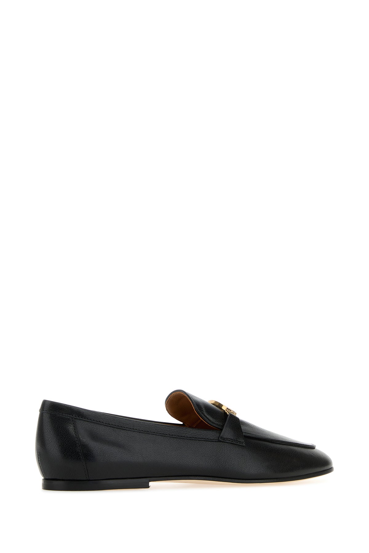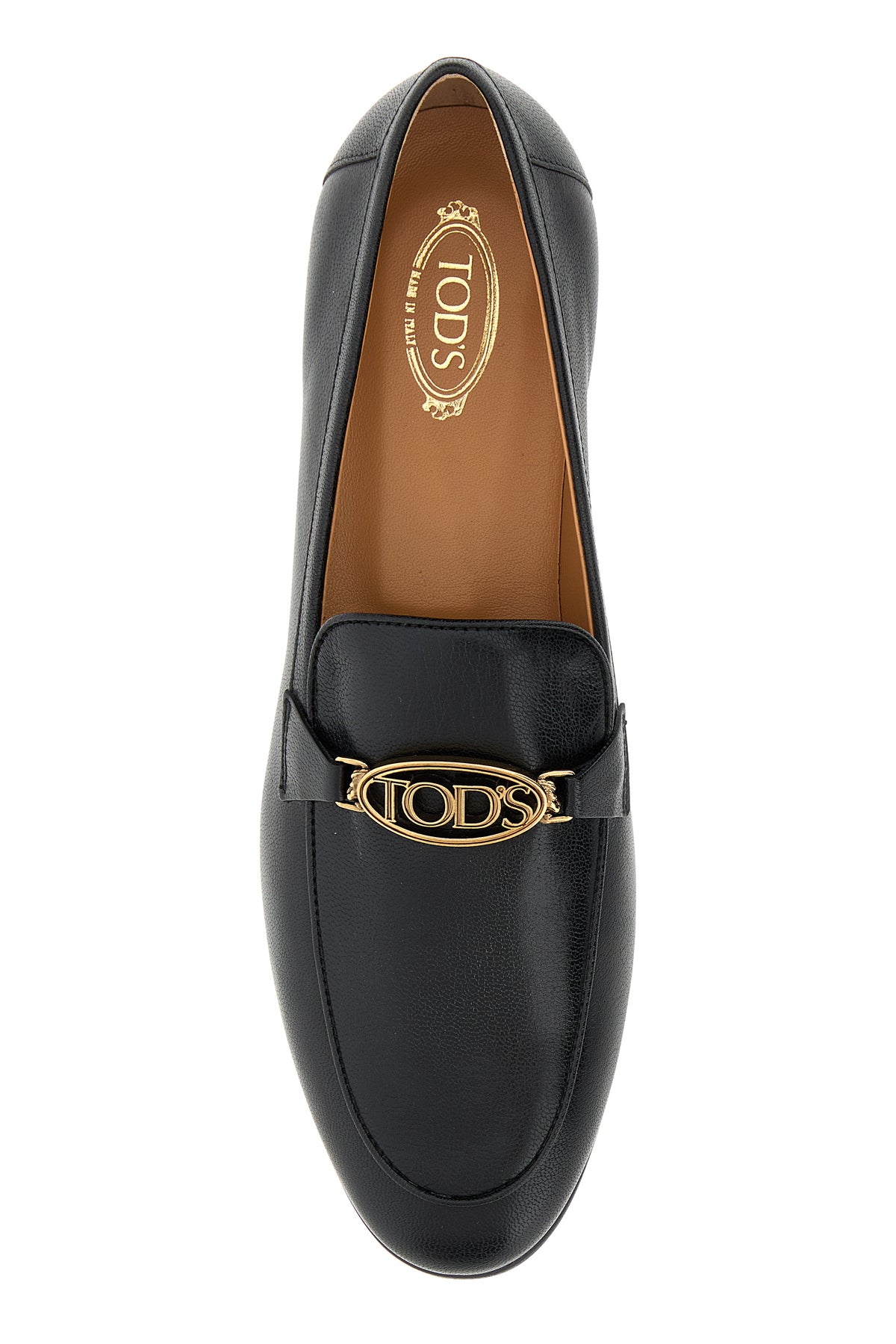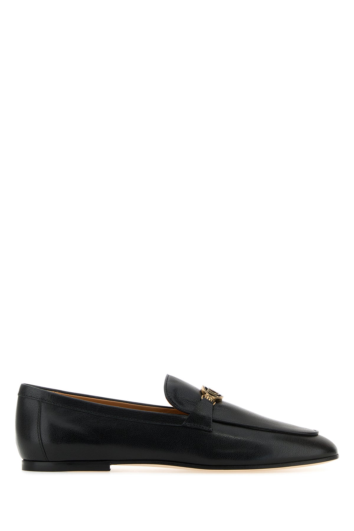 Loafers realized in smooth leather enriched by metal logoed detail on the vamp.
