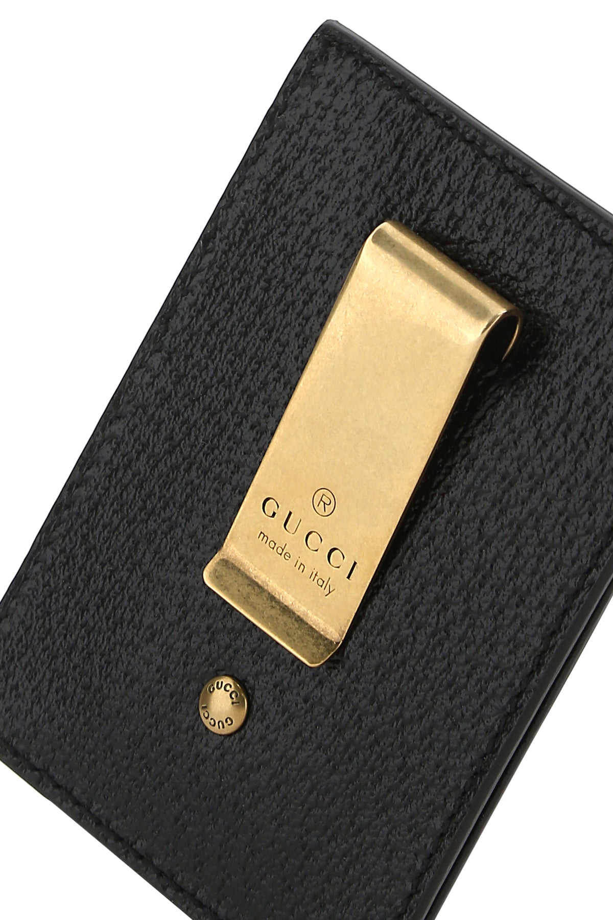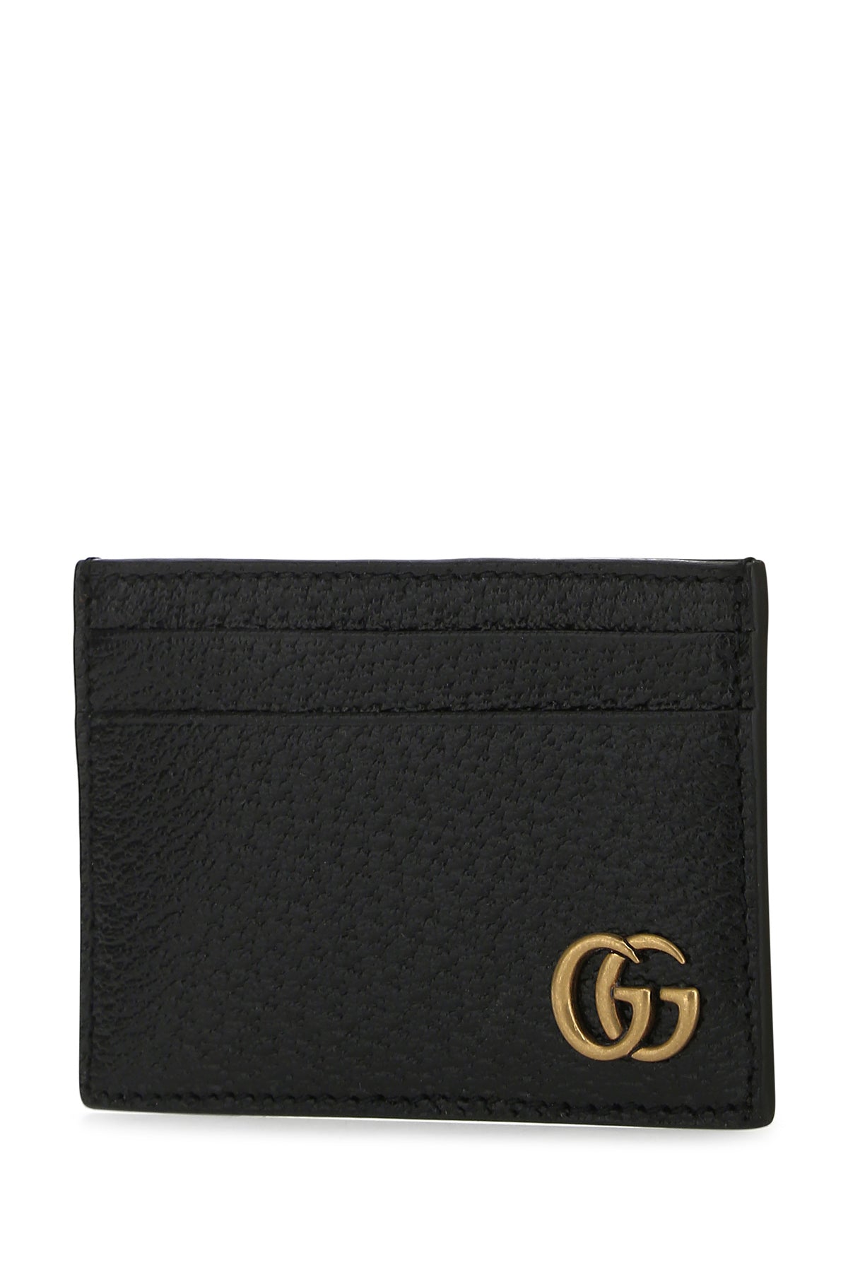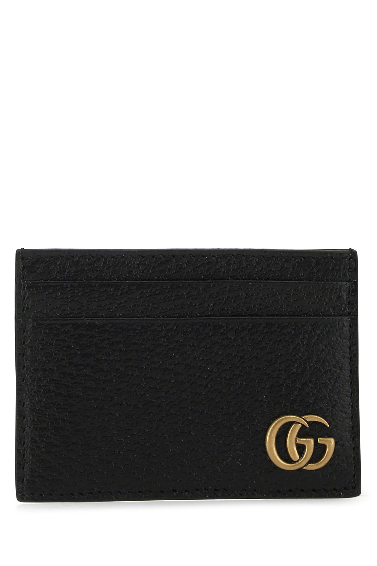 Card holder realized in grained leather enriched by metal GG detail at the front.