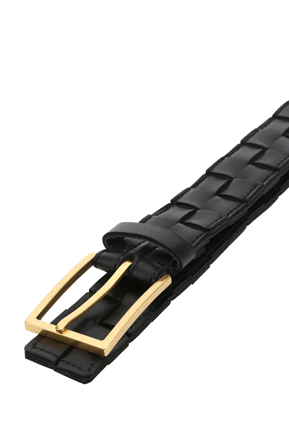 Belt realized in smooth lamb leather characterized by iconic Intrecciato motif on the entire surface.
