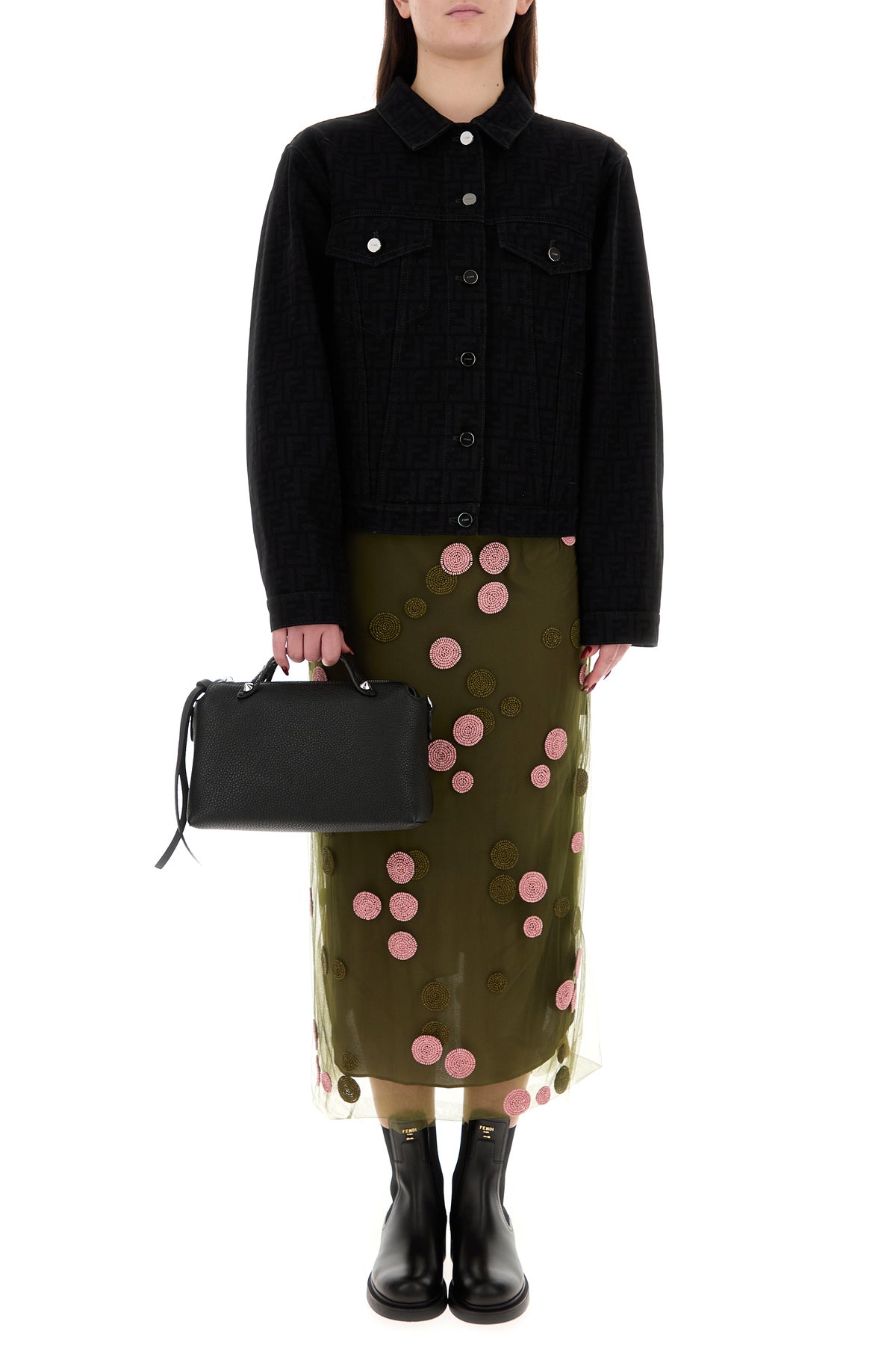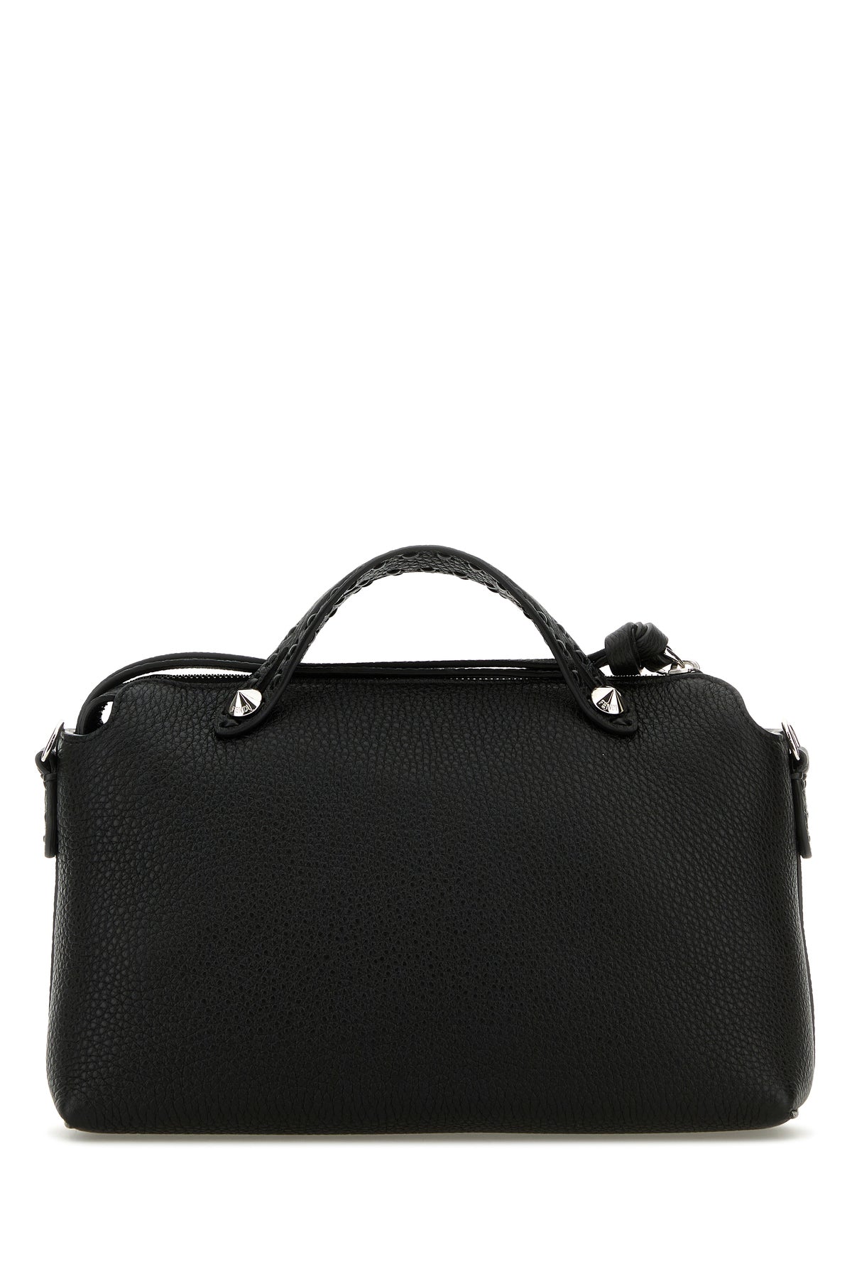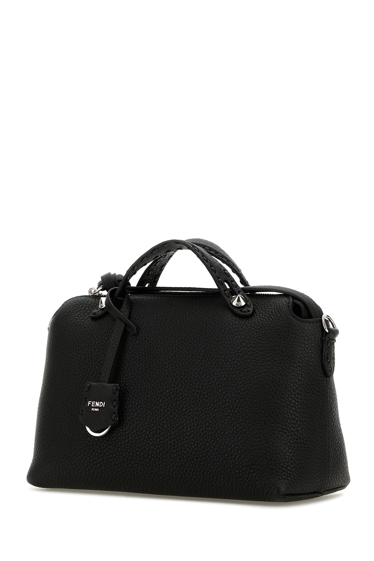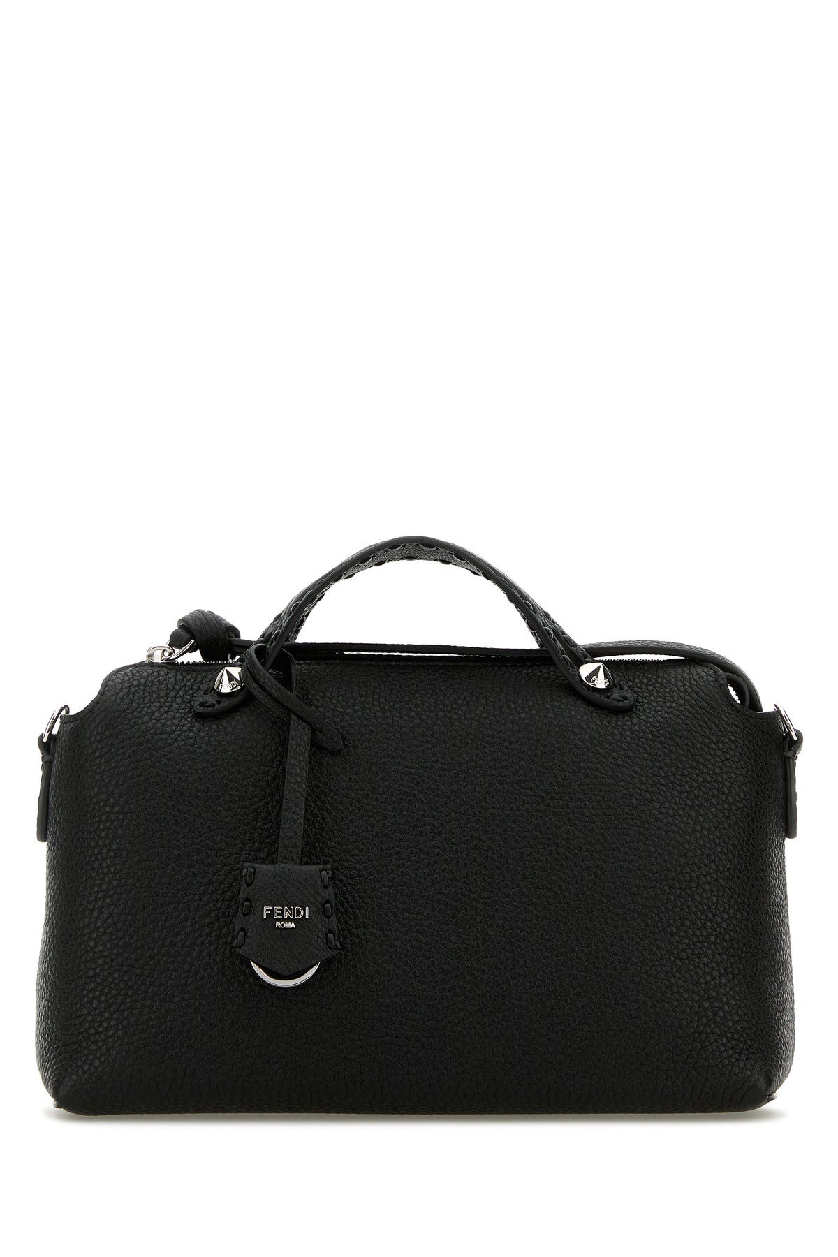 Handbag realized in calf leather enriched by detachable tonal leather keyring accessory with metal lettering logo.
