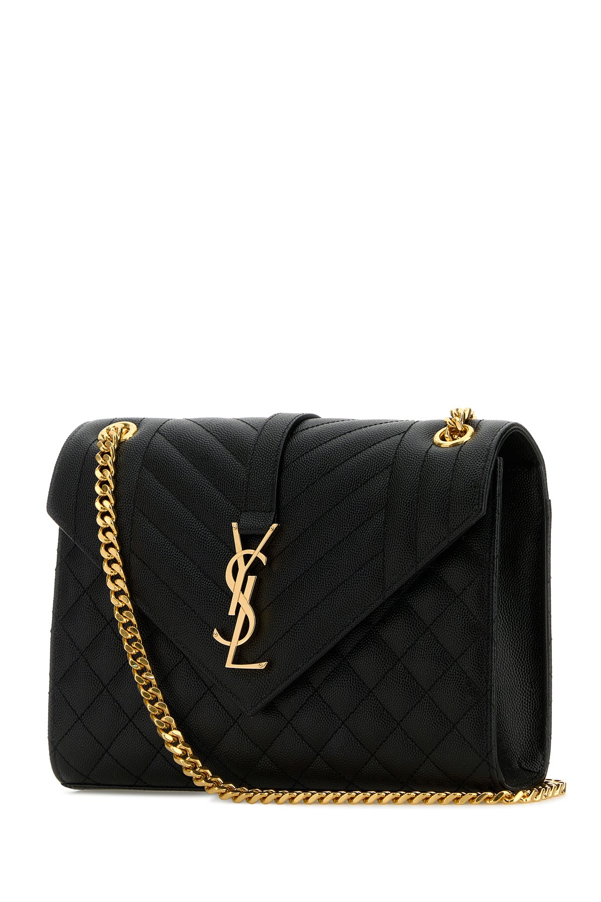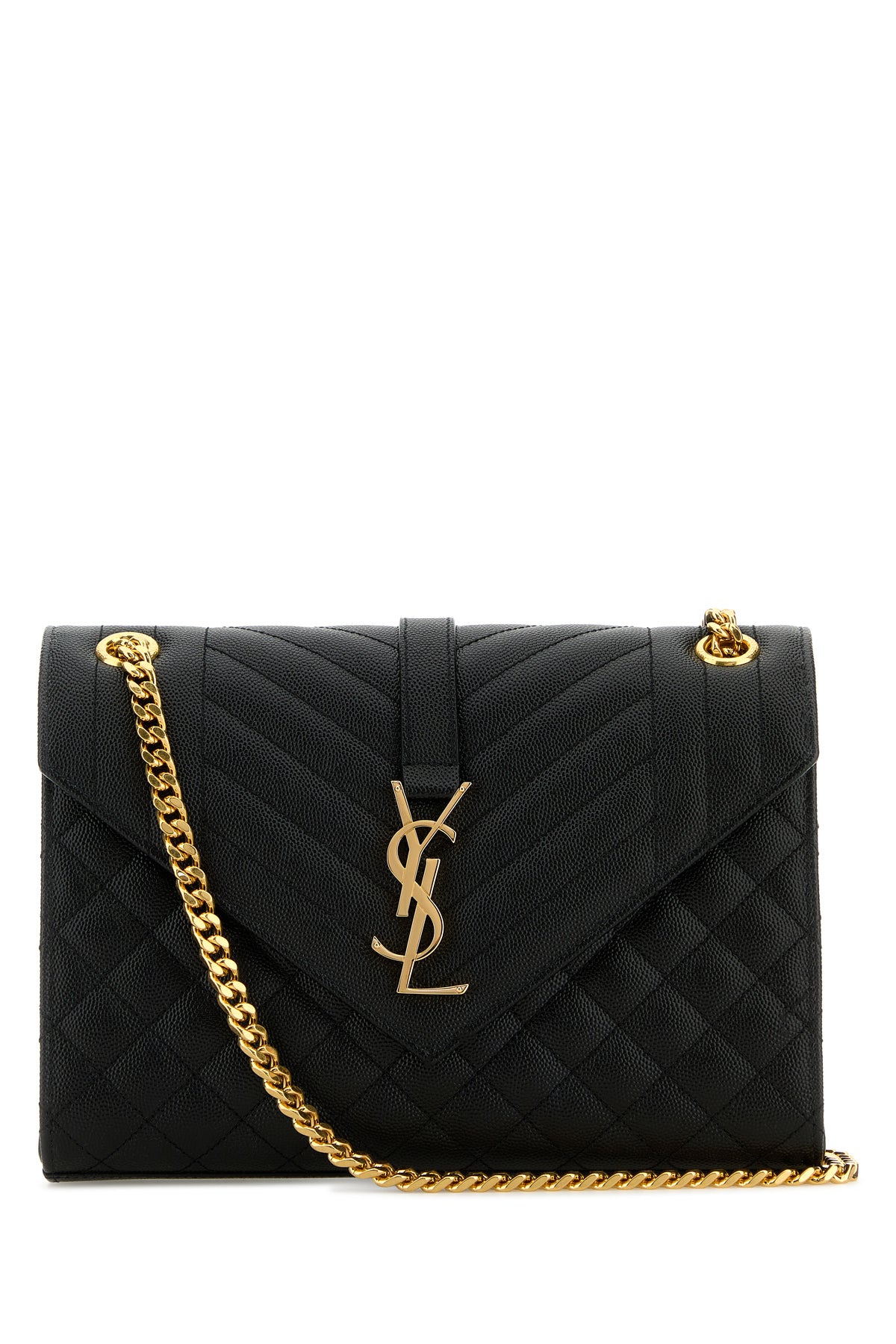 Crossbody bag realized in quilted grain calf leather enriched by iconic Monogram metal detail at the front.