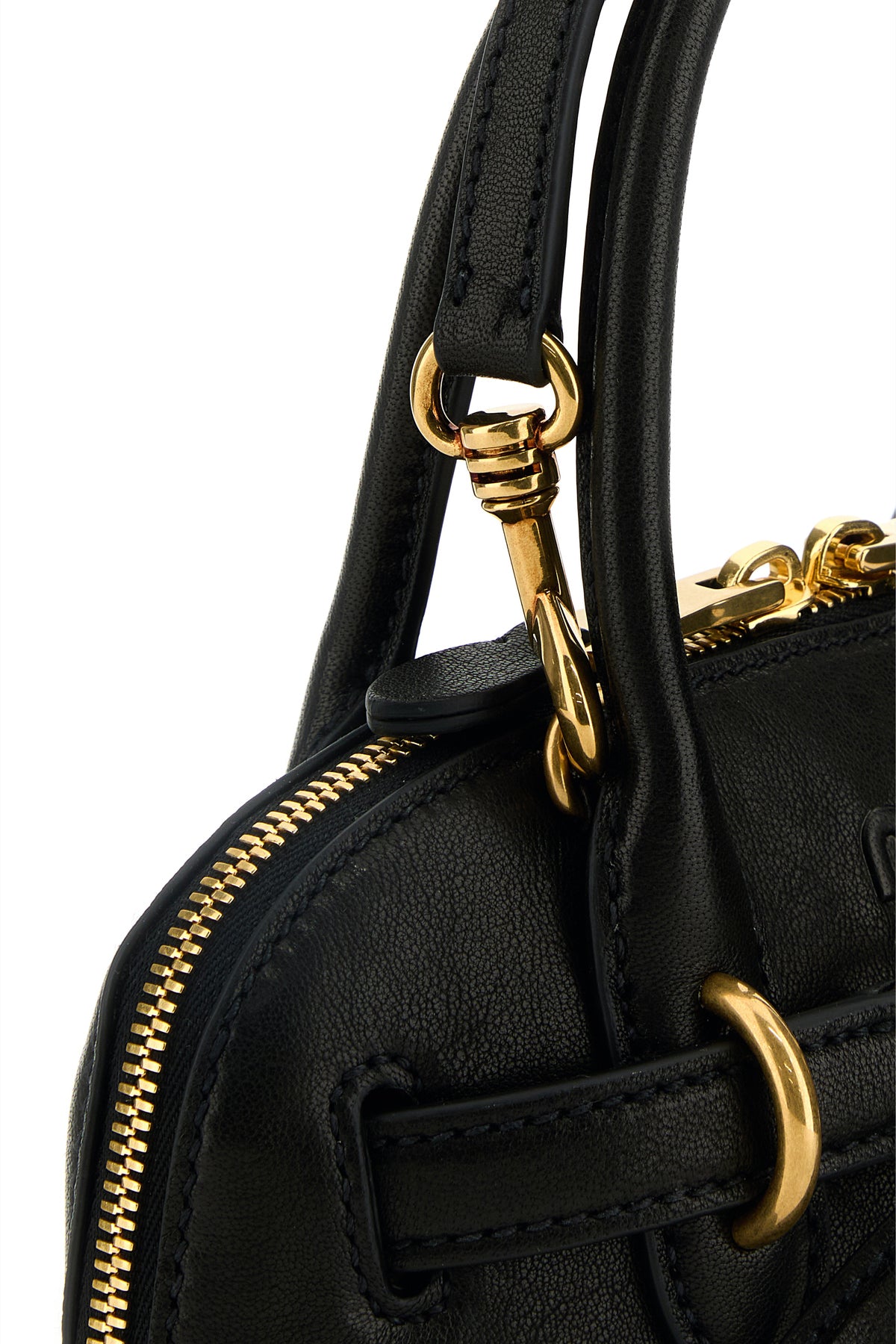 Handbag realized in vintage effect slightly pebble leather characterized by logo in relief at the front.
