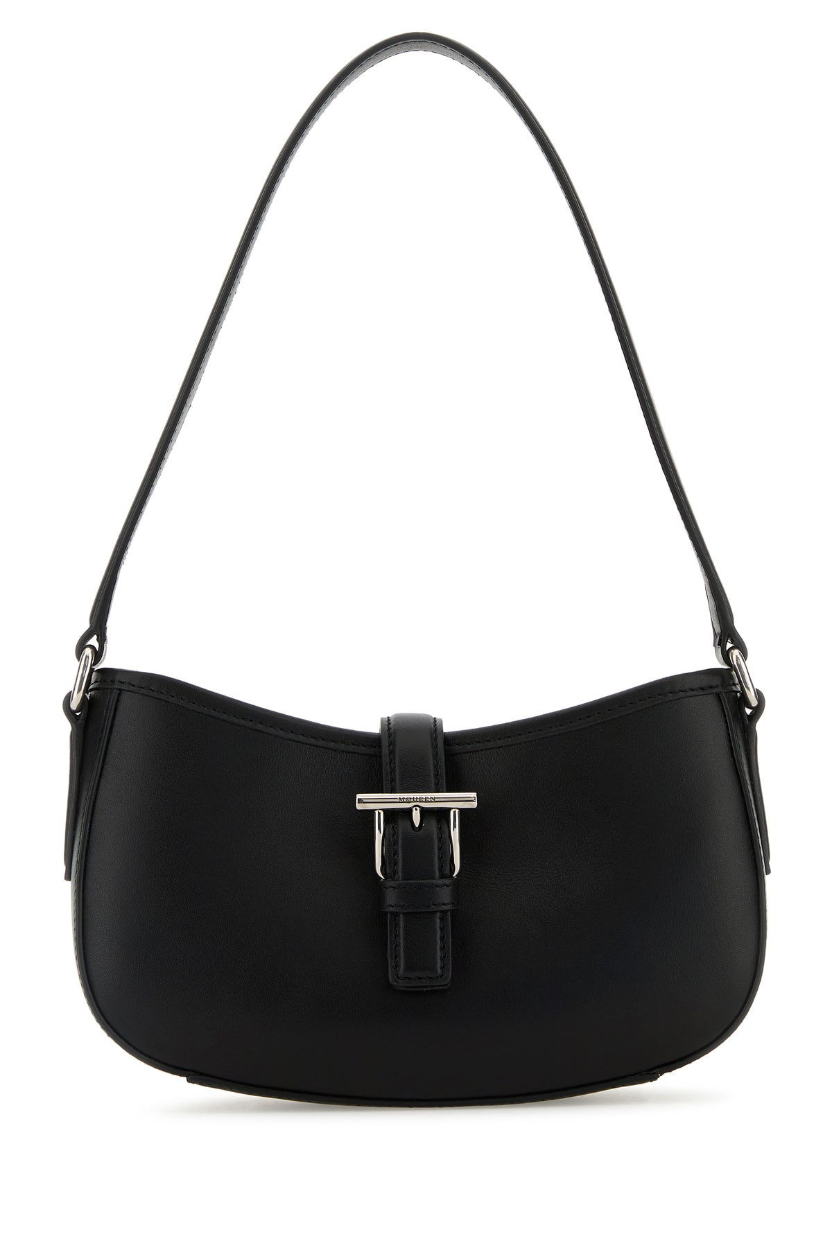 Shoulder bag realized in slightly pebble calf leather characterized by embossed logo on the buckle closure.
