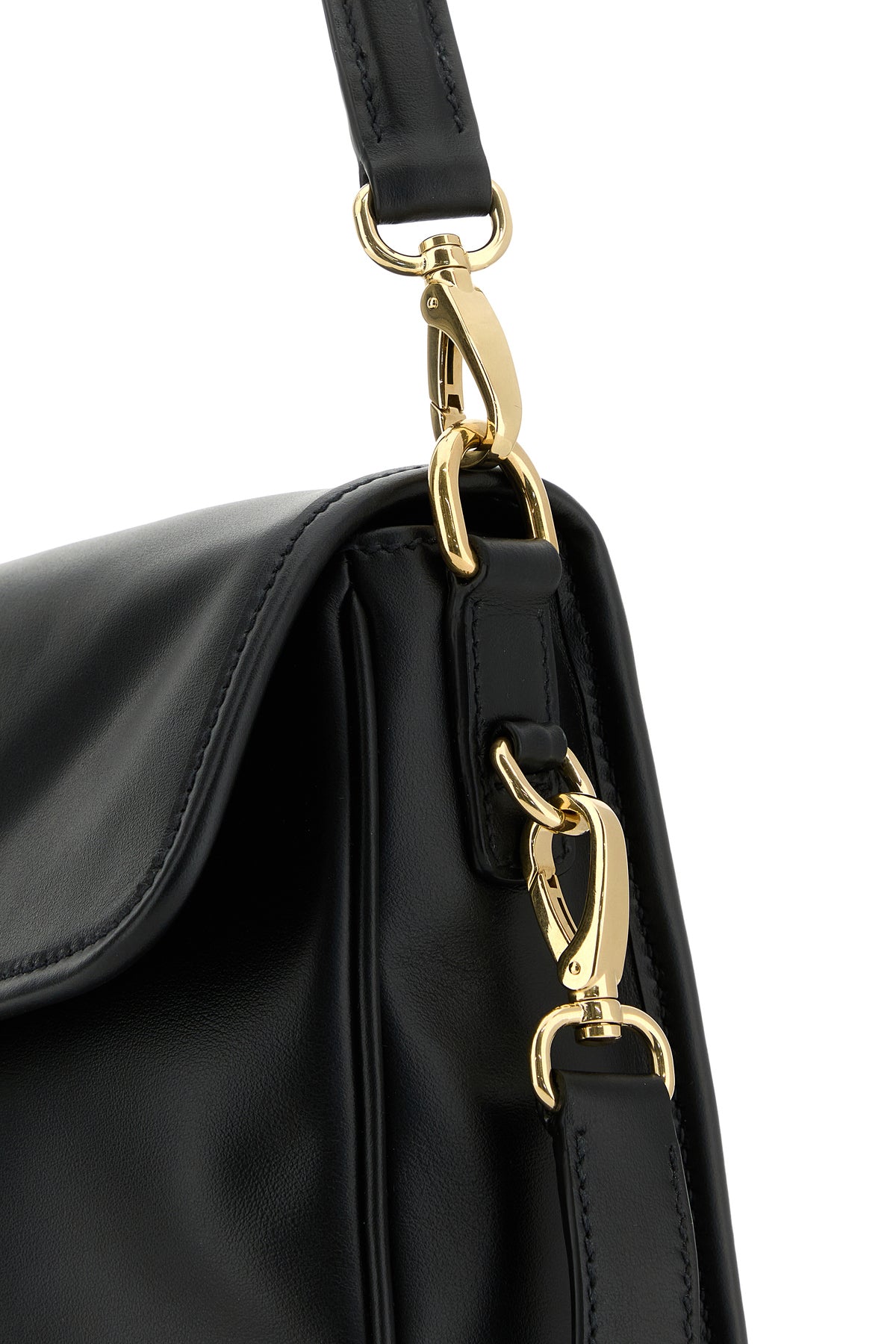 Shoulder bag realized smooth calf leather characterized by tonal logo in relief at the front enriched by metal logoed detail at the front.