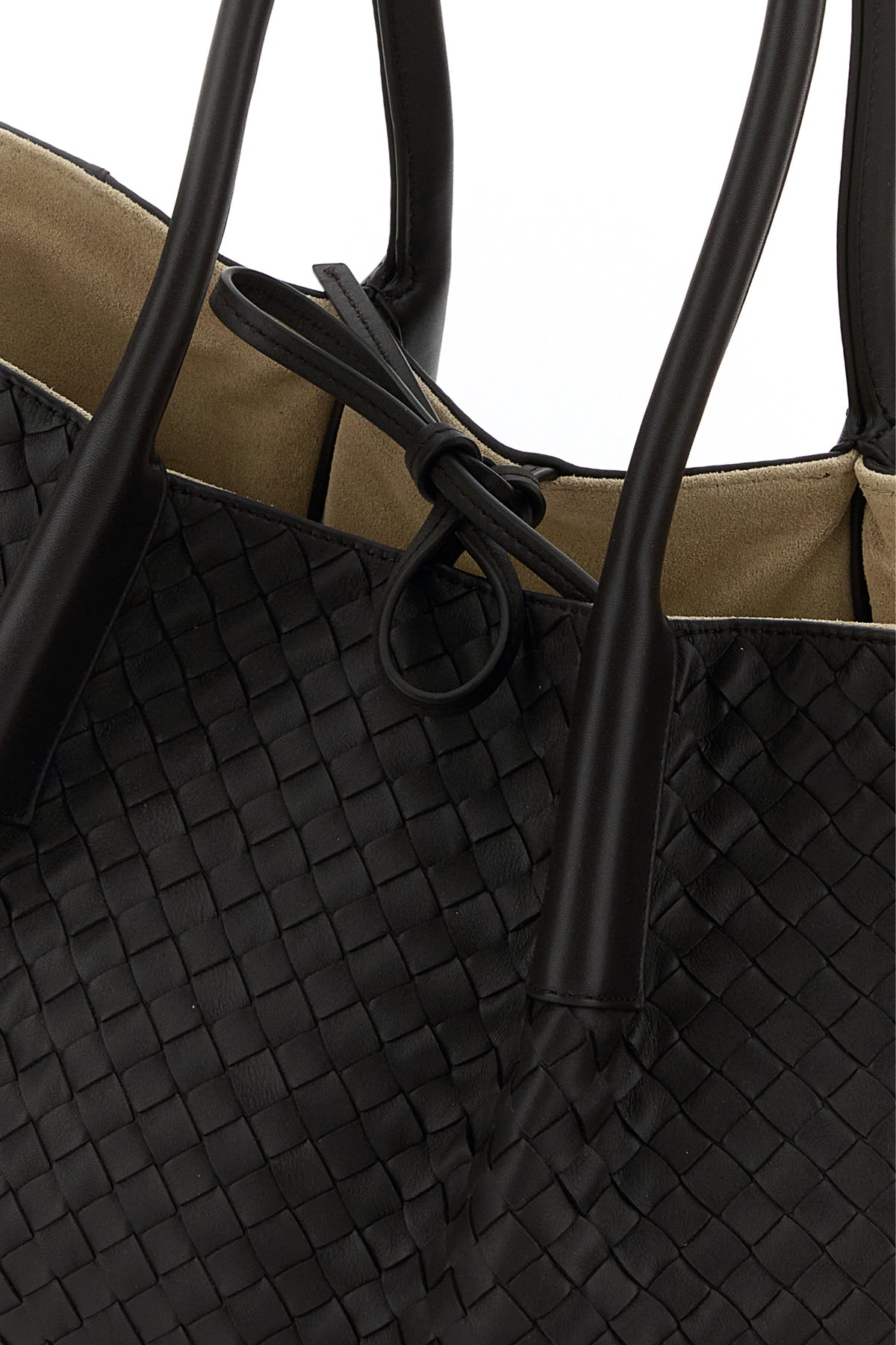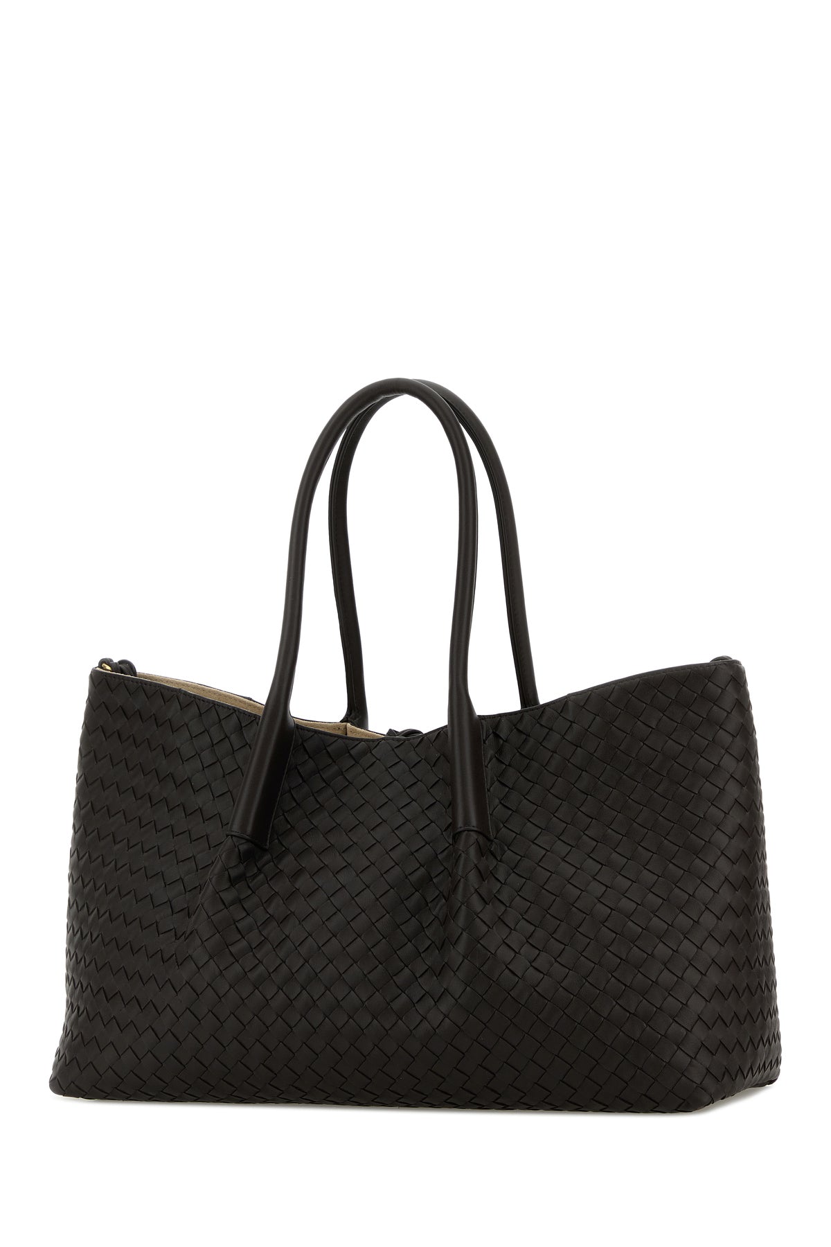 Shopping bag realized in calf leather characterized by iconic Intrecciato motif on the entire surface.