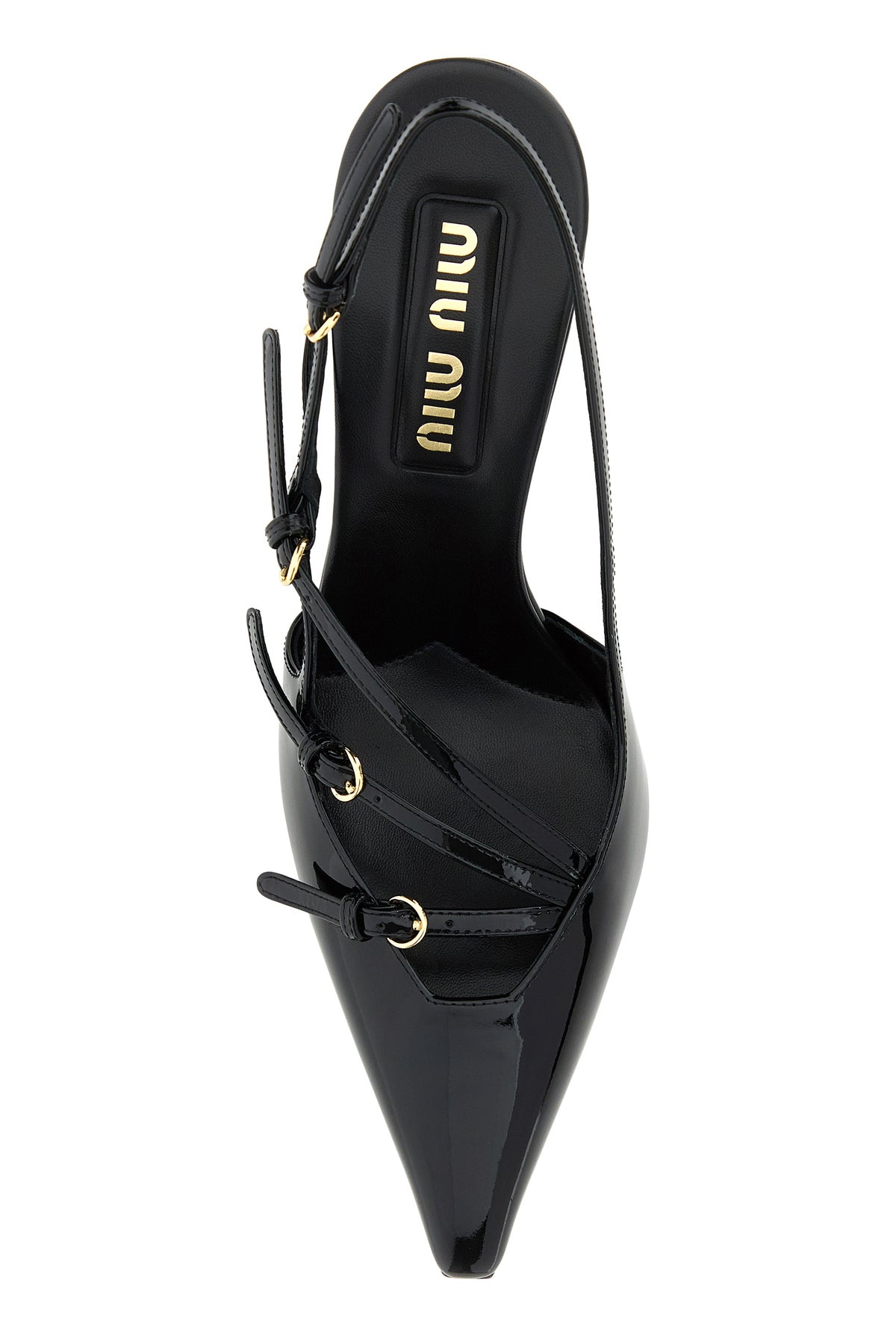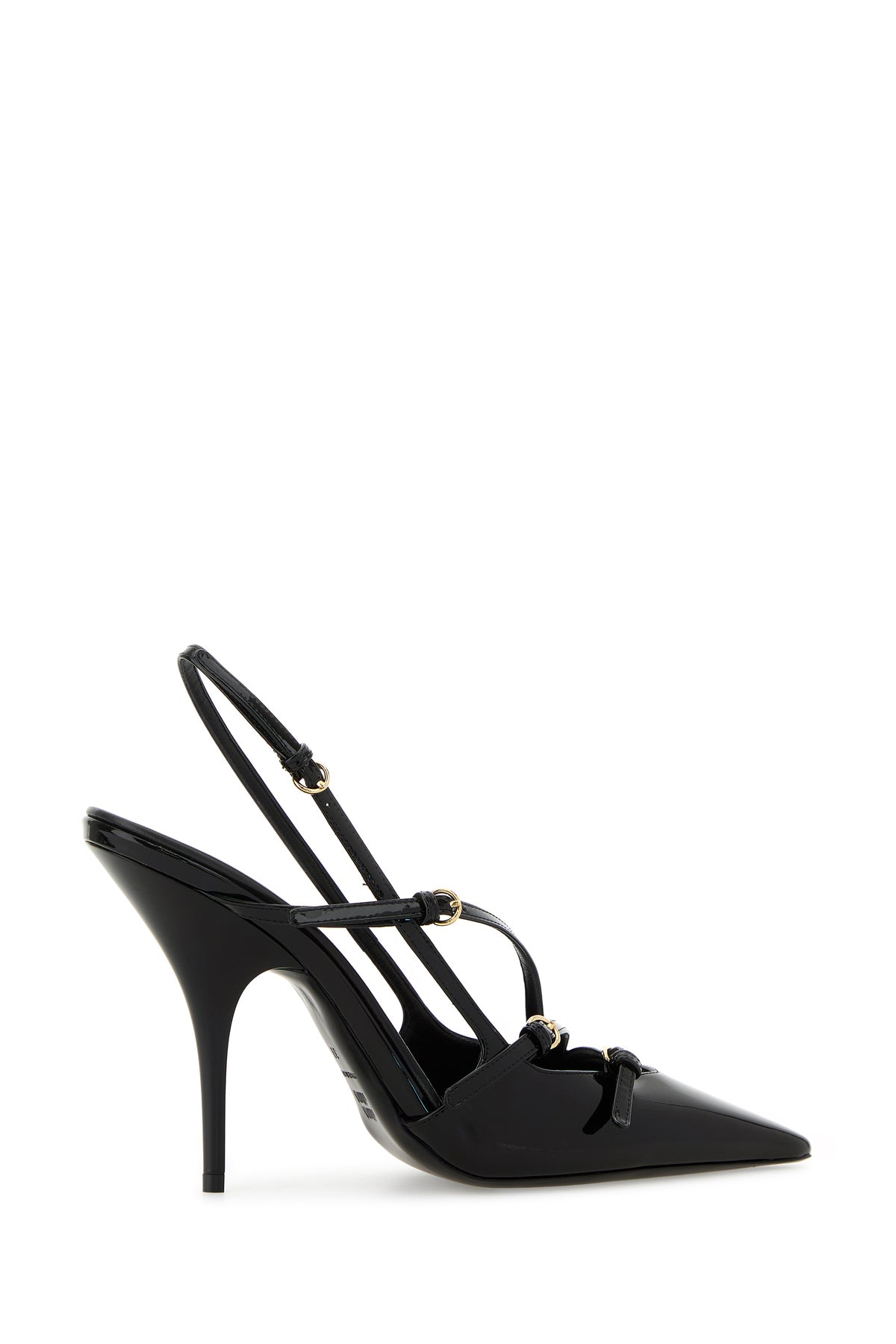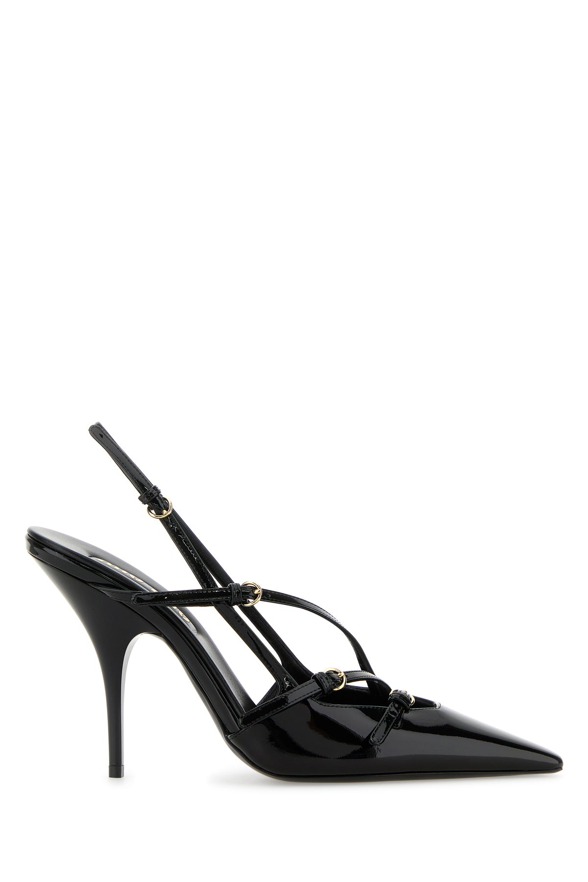 Slingback realized in patent leather characterized by adjustable straps on the instep.