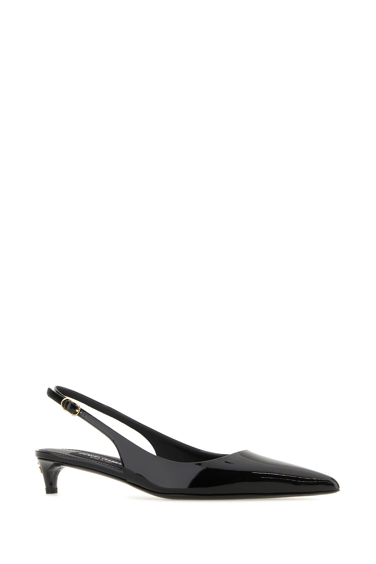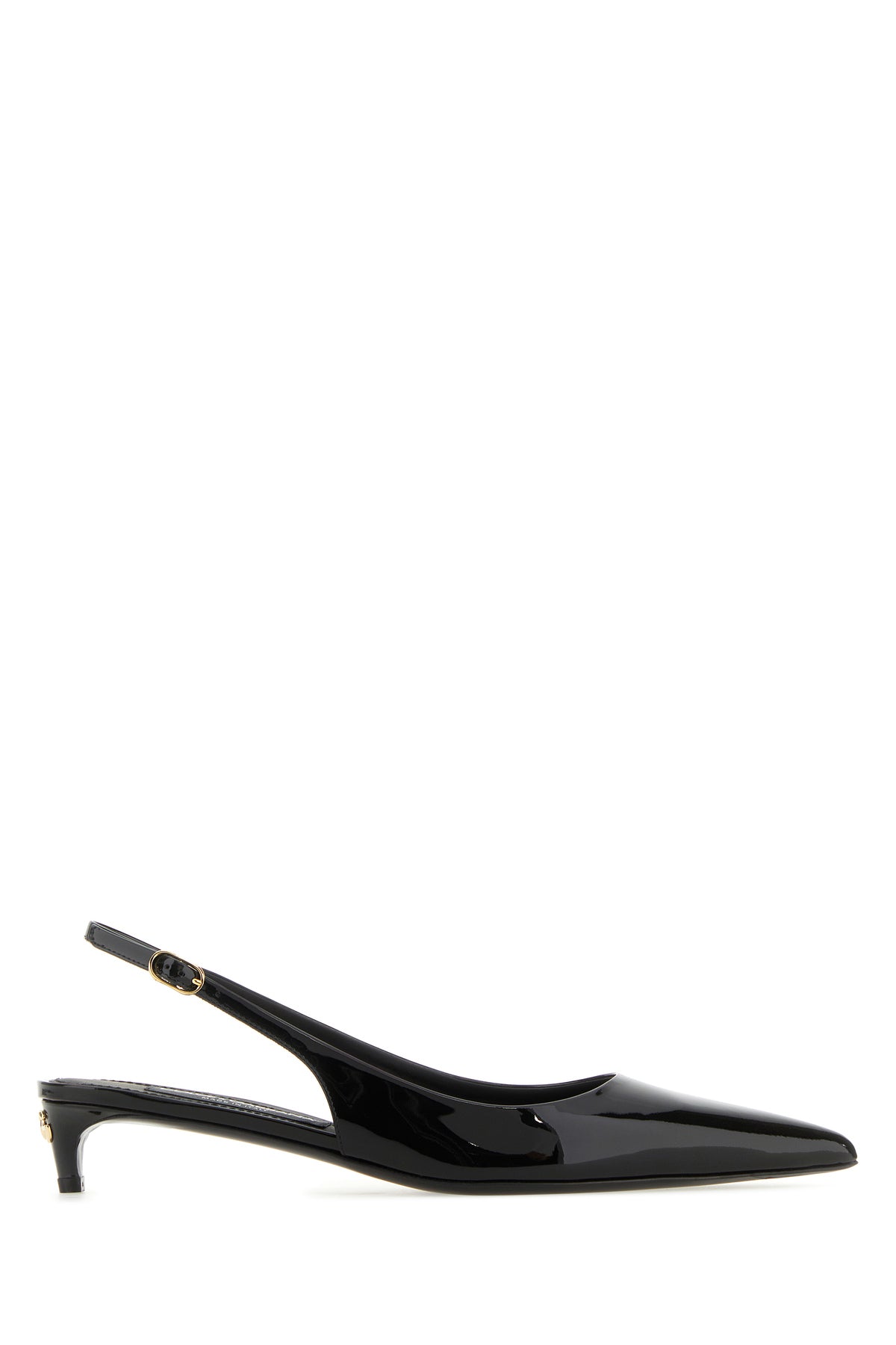 Slingbacks realized in patent leather enriched by metal DG detail at the back.