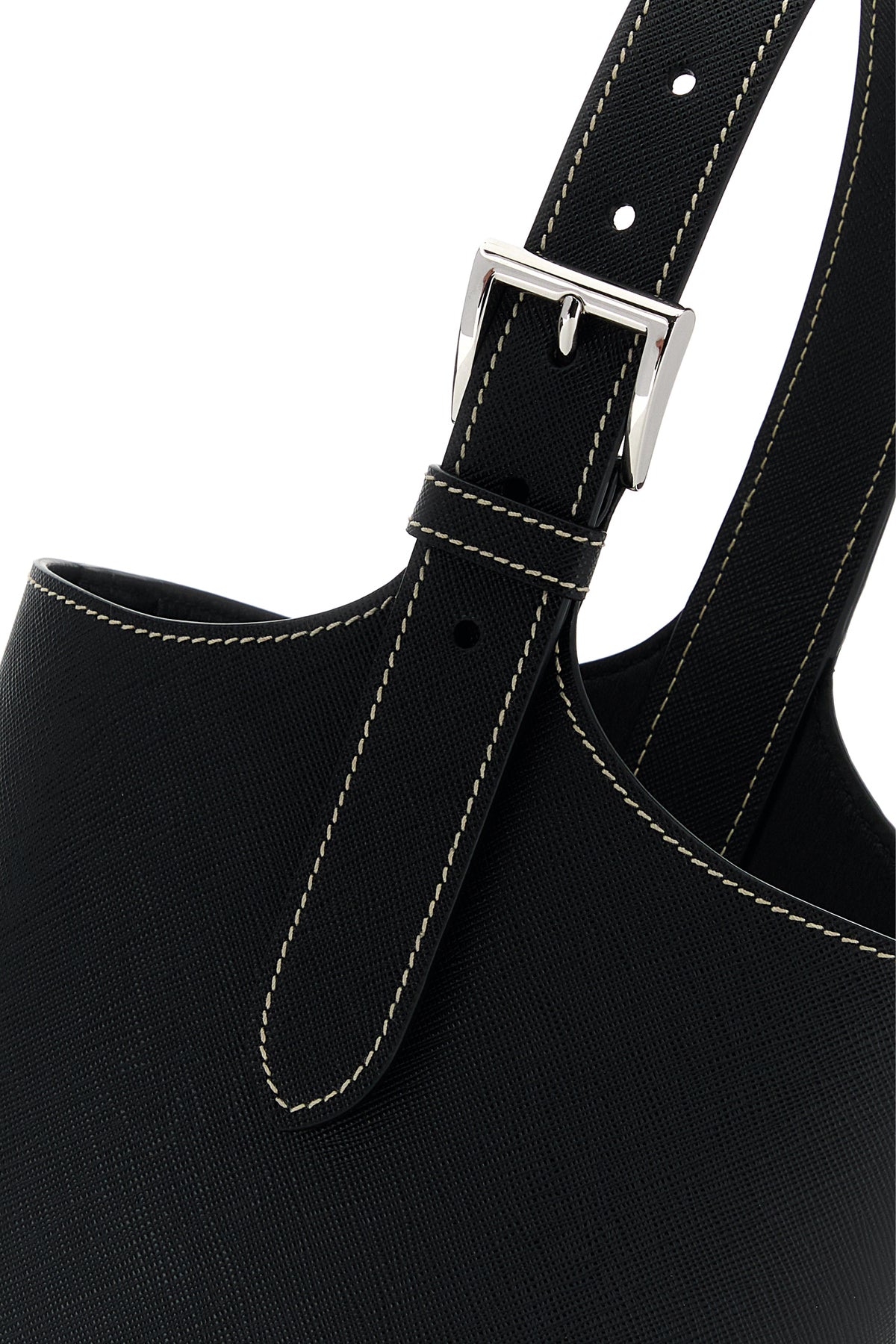 Shoulder bag realized in Saffiano leather characterized by laminated printed logo at the front.