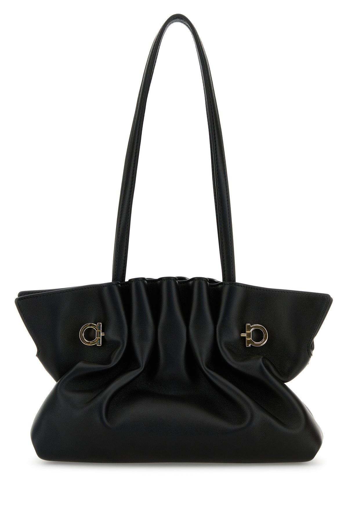 Shoulder bag realized in pebble lamb leather characterized by laminated printed logo at the front and at the back.